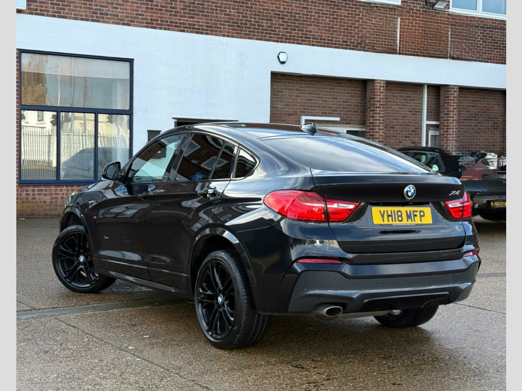 This 2018 BMW X4 20d M Sport offers a compelling blend of style and performance, featuring a robust 2.0L Diesel engine and Four Wheel Drive for confident handling in all conditions. As a Euro 6 compliant vehicle, it meets stringent emission standards. Inside, you'll find an M Sport trim that enhances the driving experience, complemented by a Glass Sunroof for an airy cabin, Extended Storage solutions, and Exterior Mirrors that are Electrically Folding with Anti Dazzle for convenience and safety. The Enhanced Bluetooth Telephone Preparation with Wireless Charging keeps you connected and powered up, while the Reversing Assist Camera aids in effortless parking.This X4 20d M Sport excels with a remarkable fuel economy of 54 mpg, making it an efficient choice for both daily commutes and longer journeys. Its impressive acceleration from 0-62mph in just 8.0 seconds demonstrates its dynamic capabilities. Furthermore, the generous boot space provides ample room for luggage or shopping, indicating its practicality for families and active lifestyles. These highlights collectively position this BMW X4 as a superior option compared to other vehicles in its class, offering a well rounded package of efficiency, performance, and utility. in alloy wheels - light m double-spoke style 310m, glass sunroof, media package - bmw professional, enhanced bluetooth telephone preparation with wireless charging, extended storage, reversing assist camera, sun protection glazing, exterior mirrors - electrically folding with anti dazzle, nevada leather - black, nevada leather - black with black interior, 20'' alloy wheels, 19in alloy wheels - light m double-spoke style 622m, air conditioning - automatic - dual zone, airbags, alarm system - thatcham 1 with remote control and engine immobiliser, ambient lighting, anti roll bars - front and rear, armrest - front with storage compartment, armrest - rear, automatically dimming rear view mirror, auxiliary input point for auxiliary playing devices, b pillar - black mat, bmw connecteddrive online services, bmw emergency call, bmw navigation system, bmw professional radio with single cd player - with mp3 playback compatibility, bmw teleservices, bluetooth hands free with usb audio interface, brake force display, central locking for doors boot and fuel flap activated via remote key or cabin switch, child locking system - rear doors, child seat isofix attachment - rear, courtesy lights - front and rear with soft on-off dimming, cruise control with brake function, cup holders - centre console with roll cover, dab digital radio, dsc - dynamic stability control with extended contents, deformation zones - front and rear, door handles - body colour, door sill finishers - m designation, drive performance control with eco pro - comfort and sport modes, electric windows - front and rear with open-close fingertip control - anti-trap facility and comfort closing function, electro mechanical parking brake, embellishers for instrument panel - black high-gloss, exhaust tailpipe - single oval with chrome finisher, exterior mirrors in body colour, exterior trim - high-gloss shadowline, first aid kit and warning triangle, floor mats - velour, footwell lights - front, glove compartment - illuminated, grab handles with coat hooks - rear, hdc - hill descent control, head restraints - front and rear, headlights - height adjustment, headlights - washer system, headlining - anthracite, heated windscreen washer jets, high level third brake light, incorrect fuelling protection system, indicator lenses - clear, instrument binnacle with speedometer - tachometer - fuel level and consumption, interior trim - brushed aluminium, kidney grille - chrome with black vertical slats, led fog lights - front, loudspeaker system with six speakers, luggage compartment - illuminated with four lashing eyes in boot floor, luggage compartment - removable cover, m aerodynamic bodystyling, m leather steering wheel with gearshift paddles, m sport package, model designation, obc - on-board computer, pdc - park distance control - front and rear, performance control, power sockets - 12v in front centre console and 12v in luggage compartment, rain sensor with automatic headlight activation, reading lights - front and rear, real time traffic information, rear fog light, run flat tyres, seat belts - front inertia reel with pyrotechnical belt latch tensioner and belt force limiter, seat belts - rear - three with inertia reel, seat heating - front, seats - front sports, seats - manual adjustment for height - fore and aft position - recline angle and headrest, servotronic steering, side impact protection, split folding rear seat - 40-20-40, start-stop button with keyless operation, steering column with manual reach and rake adjustment, steering wheel - gearshift paddles, storage pockets in both front doors, storage trays in centre console, sun visors with illuminated vanity mirrors and ticket pocket, suspension - sport, tpms - tyre pressure monitoring system, tailgate operation - automatic, through-loading system, two tone horn, variable sport steering, wheels - locking wheel nuts, xenon headlights, xenon headlights with follow-me-home function, idrive controller on centre console with 6.5in colour display, xdrive status display