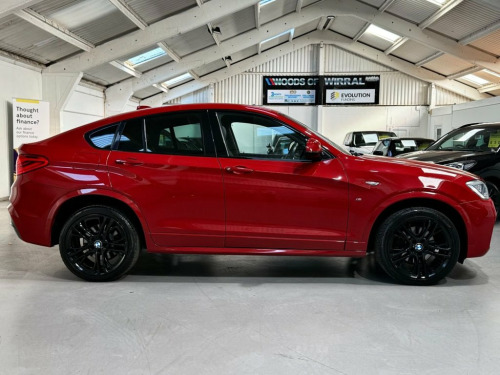This 2015 BMW X4 20d M Sport boasts exceptionally low mileage for its age, having covered just 66,914 miles, and comes with a clear vehicle history check. As a Euro 6 compliant model, it features a capable 2.0L diesel engine paired with BMW's renowned Four Wheel Drive system for confident handling in all conditions. The M Sport trim enhances its sporting appeal, and this particular example is further equipped with desirable features such as a glass electric sunroof, a premium Harman Kardon speaker system, automatically dimming and folding door mirrors, Variable Damper Control for adaptable ride comfort, and elegant Fineline Anthracite wood interior trim with a Pearl Chrome finisher. The X4 20d M Sport offers an impressive fuel economy of 54 miles per gallon, demonstrating its efficiency for a vehicle of its size and performance. Its acceleration from 0 to 60 miles per hour in just 8.0 seconds indicates a responsive driving experience. These highlights, combined with its comprehensive specification and excellent provenance, position this BMW X4 as a compelling choice for those seeking a premium, capable, and well-equipped compact SUV. M Sport Plus Package, Glass Sunroof, 20in Alloy Wheels - Light M Double-Spoke, Media Package - BMW Professional, Speaker System - Harman Kardon, Enhanced Bluetooth Telephone Preparation, Black Pack, Melbourne Red, VDC - Variable Damper Control, Adaptive Headlights, Sun Protection Glazing, High-Beam Assistant, Door Mirrors - Folding - Automatically D, Interior Trim - Fineline Anthracite Wood, 40-20-40 Split Folding Rear Seats, 6.5in Colour Display Screen, ABS - Anti Lock Braking System, Additional Detachable Cupholder, Air Conditioning - Automatic with Two-Zo, Airbags - Driver, Airbags - Front ITS Head, Airbags - Front Side, Airbags - Passenger, Airbags - Passenger Deactivation, Airbags - Rea