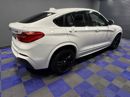 AJC Car Sales presents this stunning BMW X4 2.0 20d M Sport SUV 5dr Diesel Auto xDrive Euro 6 (s/s) (190 ps) finished off in the gorgeous Alpine White with upgraded 20" Gloss Black Alloys, Two Keys and a Great BMW Service History. This BMW X4 comes loaded with over £6000 worth of optional extras which include: Harmon Kardon Sound System, BMW Professional Media Package, M Sport Plus Package, 20 Inch Gloss Black Alloys and More. This striking 2018 BMW X4 2.0 20d M Sport blends dynamic coupe styling with SUV practicality and BMW's hallmark driving performance. Powered by a refined 2.0-litre TwinPower Turbo diesel engine producing 190 PS, this model delivers strong performance and excellent efficiency, fully compliant with Euro 6 emissions standards. The xDrive all-wheel-drive system ensures superb traction and stability in all conditions, while the 8-speed automatic transmission provides seamless gear changes for a smooth and responsive drive. Finished in the desirable M Sport trim, the X4 features an athletic body design with aerodynamic styling elements and distinctive M badging. The interior combines luxury and sportiness, with leather upholstery, M Sport steering wheel, aluminium trim detailing, and advanced infotainment features including BMW's iDrive system, Bluetooth connectivity, navigation, and a premium sound system. Practical yet stylish, this five-door SUV offers a spacious cabin, a generous boot, and versatile folding rear seats. The elevated dr Access to BMW Connected Plus (12 Month S, Auxiliary Input Point for Auxiliary Play, Bluetooth Hands Free with USB Audio Inte, BMW ConnectedDrive Online Services, BMW Emergency Call, BMW Navigation System, BMW Professional Radio with Single CD Pl, BMW TeleServices, DAB Digital Radio, Loudspeaker System with Six Speakers, Power sockets - 12V in Front Centre Cons, Real Time Traffic Information, 19in Alloy Wheels - Light M Double-Spoke, B Pillar - Black Mat, Door Handles - Body Colour, Electric Windows - Front and Rear with O, Exhaust Tailpipe - Single Oval with Chro, Exterior Mirrors in Body Colour, Exterior Trim - High-Gloss Shadowline, Heated Windscreen Washer Jets, Indicator Lenses - Clear,