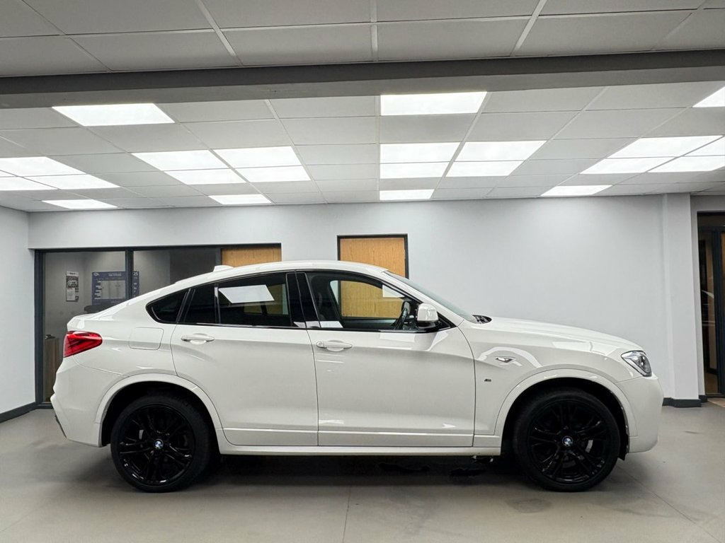 2017 BMW X4 20d M Sport with remarkably low mileage of just 78,000 miles for its age. As a Euro 6 compliant model, it features a capable 2.0 litre diesel engine paired with a four wheel drive xDrive system, ensuring confident performance in various conditions. The M Sport trim enhances its appeal, and this particular vehicle benefits from a suite of desirable features. These include the impressive Loudspeaker System from Harman Kardon for an elevated audio experience, automatically dimming and folding exterior mirrors for convenience, and a reversing assist camera integrated with rear parking assistance for easier manoeuvring. Furthermore, it offers Bluetooth hands free connectivity with a USB audio interface, a rain sensor that automatically activates the headlights and auto high beam Inside there are all the extras you would expect such as heated leather, climate control and much more. The BMW X4 20d M Sport stands out with its impressive fuel economy, achieving a notable 54 miles per gallon, which indicates its efficiency compared to similar vehicles. Its acceleration from 0 to 60 miles per hour in just 8.0 seconds demonstrates a responsive driving experience. Beyond performance, this X4 offers generous boot space, making it a practical choice for everyday use and longer journeys. These highlights collectively underscore the X4's ability to blend dynamic driving with everyday usability and cost effectiveness. 19in Alloy Wheels - Light M Double-Spoke, 20in Alloy Wheels - Light M Double-Spoke, Adaptive Headlights, Air Conditioning - Automatic - Dual Zone, Airbags, Alarm System - Thatcham 1 with Remote Co, Alpine White, Aluminium Effect, Ambient Lighting, Anti Roll Bars - Front and Rear, Armrest - Front with Storage Compartment, Armrest - Rear Centre, Automatically Dimming Rear View Mirror, Auxiliary Input Point for Auxiliary Play, B Pillar - Black Mat, Bluetooth Hands Free with USB Audio Inte, BMW ConnectedDrive Online Services, BMW Emergency Call, BMW Navigation System, BMW TeleServices, Brake Force Display, Central Locking for Doors Boot and Fuel , Child Locking System - Rear Doors, Child Seat IS