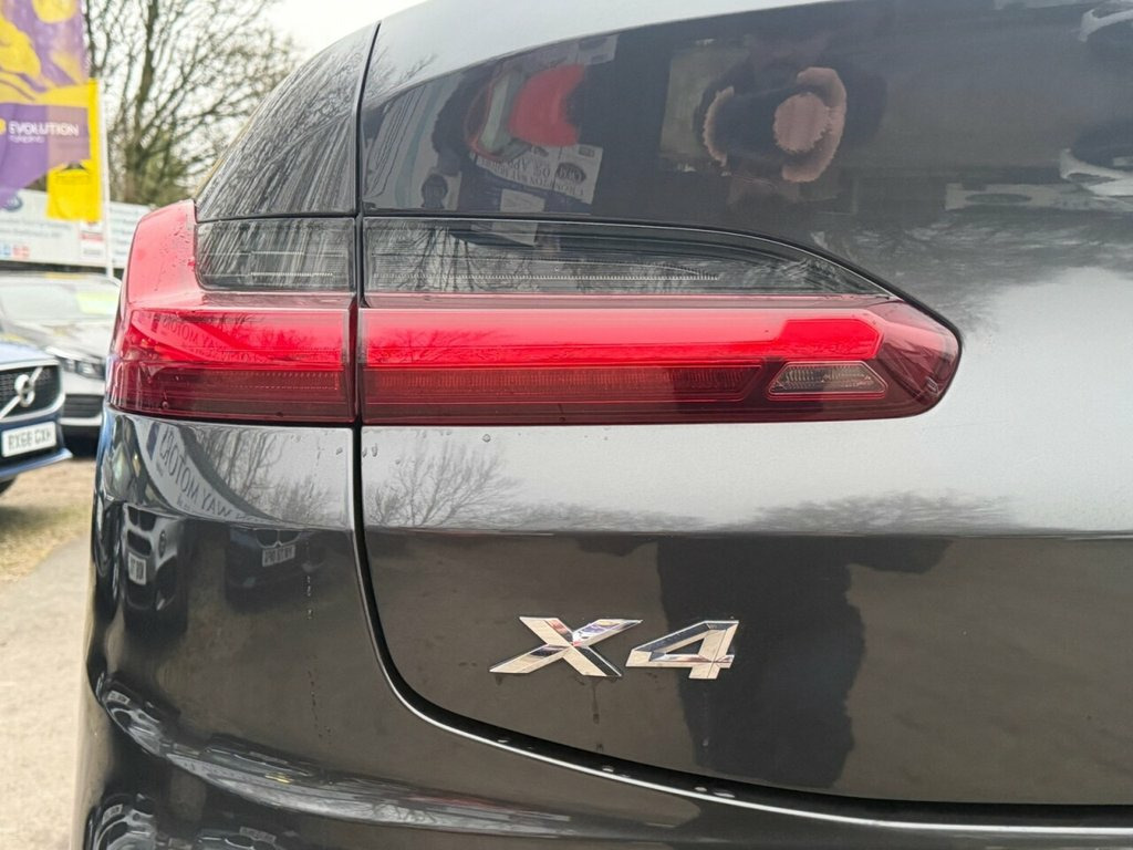 This 2019 BMW X4 20d M Sport boasts a full dealership service history, with its last service completed on 28th November 2025 at 64,623 miles, and comes with a clear vehicle history check. This four wheel drive X4 features a powerful 3.0L diesel engine and is Euro 6 compliant. The M Sport trim enhances its sporty appeal, and it includes a Technology Package with Bluetooth, Head Up Display, and wireless phone charging. Further enhancing its premium feel are the 21 inch Bi Colour Orbit Grey BMW Individual Light V Spoke 726 alloy wheels with run flat tyres, lumbar support for the driver and front passenger, and a comprehensive Parking Assistant system with front and rear sensors and a rear camera. Adaptive LED headlights with High Beam Assistant ensure excellent visibility. This X4 offers a compelling blend of performance and efficiency, accelerating from 0 to 60mph in just 8.0 seconds. Its Euro 6 emission classification and low CO2 emissions highlight its environmental consideration, while its position in a low insurance group makes it an economical choice. A 12 month MOT will be provided on purchase, and the vehicle is covered by a 6 month warranty, offering peace of mind for its next owner. 12V Power Socket in Front Centre Console, 21in Alloy Wheels - Bi-Colour Orbit Grey, Acoustic Glazing, Active Guard, Adaptive LED Headlights with High-Beam A, Air Conditioning - Automatic, Airbags, Alarm System Thatcham Category 1 with Re, Ambient Lighting, Armrest - Front with Storage Compartment, Armrest - Rear Centre with Two Cupholder, Attentiveness Assistant, Automatic Transmission with Gearshift Pa, Battery Safety Cut Off, Bluetooth Hands-Free Facility with USB A, BMW Connected Package Professional, BMW ConnectedDrive Online Services, BMW Emergency Call, BMW Live Cockpit Professional, BMW Professional Radio with MP3 Playback, BMW TeleServices, Bottle Holders Integrated into Door Trim, B
