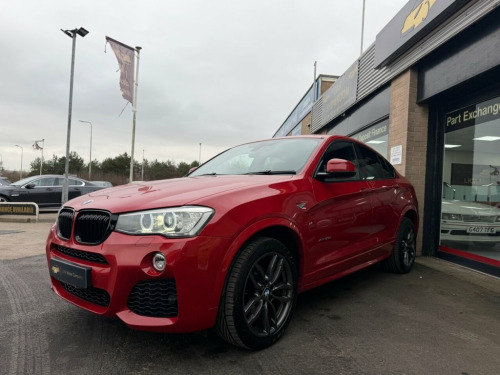 LKM Motor Company Presents 2016 BMW X4 20d M Sport xDrive Auto Sporty SUV Coupe • xDrive Confidence • Immaculate Example Vehicle Overview • Model: BMW X4 20d M Sport xDrive • Year: 2016 • Engine: 2.0 Diesel • Transmission: Automatic • Drivetrain: xDrive All-Wheel Drive • Mileage: Only 58,000 miles • Colour: Melbourne Red • Condition: Immaculate Throughout • Service History: Full Service History • Keys: 2 • Price: £16,490 – Low Rate Finance Available Exterior & Styling • 19" M Sport Alloy Wheels • Gloss Black Kidney Grilles & Rear Spoiler • Sun Protection Glazing • Bold Coupe-SUV Styling with M Sport Enhancements Interior & Comfort • Nevada Black Leather Interior • Premium M Sport Cabin Finish • Electrically Folding Door Mirrors • Spacious, Driver-Focused Layout Technology & Driver Assistance • Media Package – BMW Professional • BMW Professional Navigation System • Harman Kardon Premium Sound System • Reversing Assist Camera • Enhanced Bluetooth Connectivity • Adaptive Headlights • High Beam Assist Performance & Driving • 2.0d Efficient Diesel Engine – Strong Performance with Great Economy • Smooth Automatic Gearbox • BMW xDrive System – Confidence in All Conditions • M Sport Suspension & Handling Dynamics Why Buy This BMW X 12V Power Socket - Centre Console, 19in Alloy Wheels - Light M Double-Spoke, 40-20-40 Split Folding Rear Seats, 6.5in Colour Display Screen, ABS - Anti Lock Braking System, ASC - Automatic Stability Control, Additional Detachable Cupholder, Air Conditioning - Automatic with Two-Zo, Airbags - Driver, Airbags - Front ITS Head, Airbags - Front Side, Airbags - Passenger, Airbags - Passenger Deactivation, Airbags - Rear ITS Head, Alarm System Thatcham 1 with Remote Cont, Ambient Interior Lighting, Anti Roll Bars - Front and Rear, Armrest - Front with Storage Compartment, Armrest - Rear Centre, Automatically Dimming Rear View Mirror, Auxiliary Input, BMW Emergency Call, BMW Navigation Business Sys