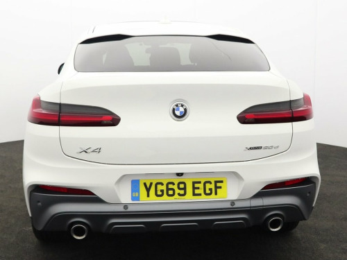 This 2019 BMW X4 20d M Sport X presents an exceptional ownership proposition with its remarkably low mileage of just 48,668 miles for its age, coupled with a clear vehicle history.  As a Euro 6 compliant model, it features a capable 2.0L diesel engine powering its four wheel drive system, ensuring confident performance in various conditions.  The M Sport X trim enhances its appeal, and you'll appreciate the convenience of the panoramic glass sunroof, automatic air conditioning, and the ease of parking provided by front and rear park distance control and a reversing assist camera.  Further enhancing your driving experience are the rain sensor and automatic headlight activation, ensuring you are always prepared for changing weather.  This BMW X4 offers a compelling blend of practicality and performance, boasting a generous boot space for all your needs and a respectable 0-60mph acceleration time of 8.0 seconds, indicating its strong performance relative to similar vehicles. Its low CO2 emissions also highlight its efficiency, making it a more economical choice for everyday driving. This combination of features, low mileage, and efficient performance makes this X4 a standout option for those seeking a premium SUV experience. 12V Power Socket in Front Centre Console, Bluetooth Hands-Free Facility with USB A, BMW ConnectedDrive Online Services, BMW Emergency Call, BMW Professional Radio with Single CD Pl, BMW Remote Services, BMW TeleServices, Control Display - 6.5in Colour Screen, DAB Digital Radio, Media Package - BMW Business, Navigation System - BMW Professional Mul, Real Time Traffic Information, Semi-Digital Cockpit, Shark Fin, 19in Alloy Wheels - Bi-Colour Ferric Gre, Bumper System - Front and Rear, Bumpers - Body Colour, Direction Indicator - Side Repeaters - I, Door Handles - Body Colour, Electric Windows - Front and Rear with O, Exhaust Tailpipe - Chrome - Dual - Round, Exterior B Pillar - Black, Exterio