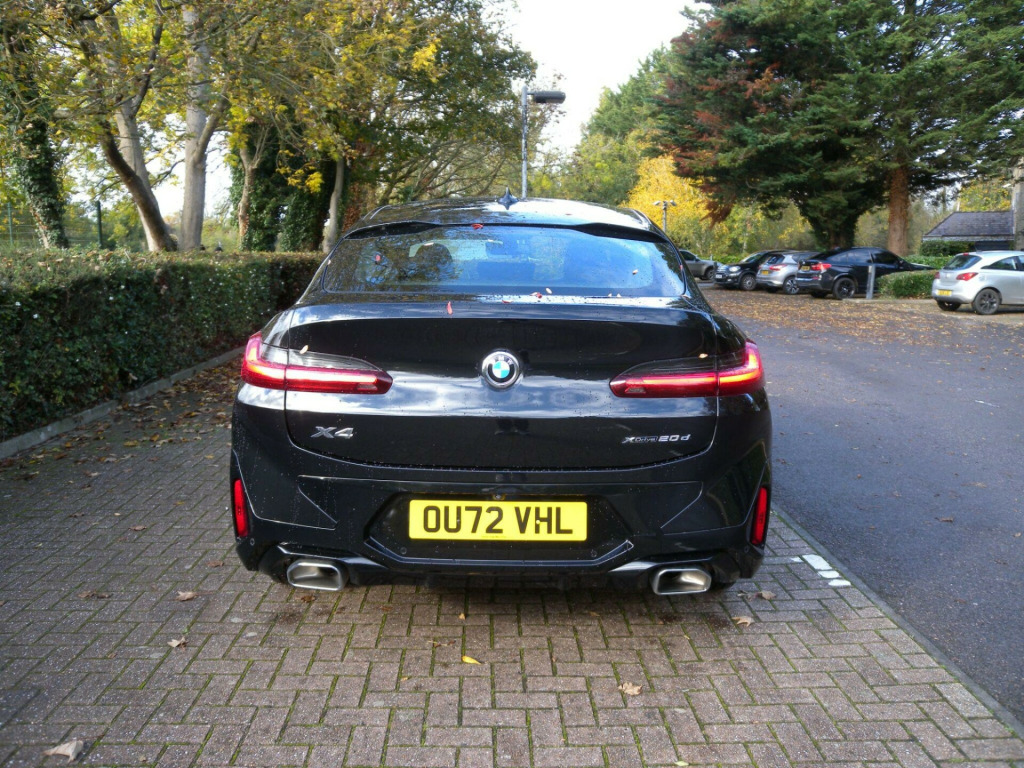 This 2022 BMW X4 20d M Sport boasts a full service history, with its last service completed on 2025-10-15 at 75751 miles, and benefits from an MOT valid until October 2026, offering peace of mind for the next owner. This Euro 6 compliant, four wheel drive model features a 2.0L Diesel Hybrid engine and has had only one owner from new. Inside, you'll find a luxurious Vernasca Leather interior in Black with Grey Stitching, a heated steering wheel for those colder mornings, and a panoramic glass sunroof that opens up the cabin. The BMW Live Cockpit Professional with Bluetooth connectivity keeps you informed and entertained, while front and rear parking sensors make manoeuvring effortless.The BMW X4 20d M Sport stands out with its impressive fuel economy, achieving approximately 50 miles per gallon, which is better than many similar vehicles. Its low CO2 emissions also contribute to its appeal, making it a more environmentally conscious choice. Furthermore, the generous boot space ensures practicality for all your needs, whether it's for daily errands or longer journeys. This vehicle comes with a 6 month warranty, adding further confidence to your purchase. noramic glass sunroof, vernasca leather - black with grey stitching, steering wheel - heated, 12v power socket in front centre console, 19in alloy wheels - 887m m y-spoke - midnight grey, acoustic glass, active guard, adaptive led headlights, air conditioning - automatic, airbags, alarm system - thatcham 1 with remote control and engine immobiliser, ambient lighting, armrest - front with storage compartment, armrest - rear centre with two cupholders, attentiveness assistant, automatic powered electric bootlid, automatic windscreen wiper and headlights, bmw connected package professional, bmw connecteddrive online services, bmw emergency call, bmw live cockpit professional, bmw professional radio with mp3 playback compatibility, bmw remote services, bmw teleservices, battery safety cut off, bluetooth hands free with usb audio interface, bottle holders integrated into door trim storage compartments - front - up to 1 litre - rear - up to 750ml, brake pad wear indicator - front and rear, bumper system - front and rear, central locking switch for all doors - fuel filler cap - luggage compartment, check control warning system for monitoring of lights and door-luggage compartment open warning, child proof locking system - rear doors, child seat isofix attachment - rear, condition based service, crash sensor, cruise control, cup holders - front - two with removable oddments tray-lid, dab tuner, dsc - dynamic stability control - stabilises the vehicle in extreme situations - controls traction, deletion lumbar support-width adjustment passenger side, direction indicator - side repeaters - integrated in exterior mirrors, door sill finishers - front - high-gloss black with bmw designation, drive performance control with eco pro - comfort and sport modes, driving assistant, dynamic brake lights, eps - electric power steering, electric windows - front and rear with open-close fingertip control - anti-trap facility and comfort closing function, electro mechanical parking brake, exhaust tailpipes - dual round split left and right, exterior b pillar - black, exterior mirrors electrically adjustable, exterior parts in body colour, exterior trim - high-gloss shadowline, first aid kit and warning triangle, front and rear parking sensors, full led l-shape 3d taillight, gear knob - leather, headlining - anthracite, heat protection glazing with green tint, high level third brake light using led technology, high-beam assistant, incorrect fuelling protection system, instrument cluster, interior lighting - front centre over interior mirror with soft-light - rear centre and front and rear footwell, interior trim - aluminium rhombicle with pearl chrome, larger fuel tank, lights-on warning by audio warning signal when ignition is switched off, luggage compartment - light, luggage compartment storage, m aerodynamic bodystyling, m sport package, m sport suspension, model designation, obc - on-board computer, oil sensor for level and grade - warning by check control system, optimum shift indicator, parking assistant, performance control, personal profile, rear seat headrests - three, rear suspension - five-link, rear-view electrochromatic mirror - automatically dimming, remote control including integrated key - 2, reversing assist camera, run flat tyres, run-flat indicator, seat backrest width adjustment, seat belt security check for driver and front passenger, seats - front heated, shark fin - antenna, side armrests - front and rear integrated into door trim, side exterior m designation badges, side impact protection, side sills - glacier silver metallic - matt, split folding rear seat - 40-20-40, sport seats - front, start-stop button with comfort go keyless engine start and auto start-stop deactivation button, steering column with manual reach and rake adjustment, steering wheel - m sport leather multifunction, storage compartment - rear centre console and front-rear door trim, sun visors with vanity mirrors and ticket holder, tailpipe finishers in gloss chrome, three-point seat belts - all seats, toolkit located in luggage compartment, twin horns, tyre pressure monitor with a three-level warning strategy, tyre repair kit, tyres - reduced rolling resistance, variable sport steering, visible vin, welcome light carpet, windscreen washer jets - heated, windscreen wipers with adjustable intervals, idrive controller - 8 favourite buttons, xline exterior styling with underbody protection