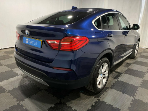 Grab this opportunity to own a fabulous BMW X4 finished in Deep blue! With recent service and 2 Former Keepers, this vehicle has been well maintained. With sporty design, precise handling and 187 bhp engine, the BMW X4 delivers an exceptional driving experience. This vehicle boasts a fantastic £11,960 in added extras, giving you more value for your money. With 5-seats, this car is designed to provide ample room for every journey, prioritising spaciousness for a comfortable and enjoyable ride. Loaded with Navigation, USB, Bluetooth, Powered Memory, Front Heated Seats, Two Zones Climate Control, Automatic Folding Mirrors, Lane Assist, Cruise Control, Front and Rear Parking Sensors, Rear View Camera, Keyless Entry, Sport Mode Function, Head-up Display and 18 Inch Alloy Wheels, it will elevate your driving experience on every trip. Your peace of mind is ensured with 3-Month warranty, next MOT due 06/2026, last serviced 06/2025, 2 keys, ULEZ Compliant, HPI clear. The car has been prepared to meet high standards, undergoing a rigorous 100-point check. Rest assured that the car comes with clean bodywork, tidy interior and a smooth drive on the road. WE PROVIDE FINANCING ON ALL VEHICLES AT COMPETITIVE RATES, CHECK ELIGIBILITY USING OUR FREE FINANCE CHECKER WITHOUT AFFECTING YOUR CREDIT SCORE AT CARCART.CO.UK/FINANCE. V5C form present or to follow. PAY REFUNDABLE FEE ON OUR WEBSITE TO RESERVE VEHICLE! Viewing available 7 days a week! AS WE ARE A VERY BUSY DEALERSHIP, PLEASE CH 18in Alloy Wheels - Y-Spoke Style 607, Air Conditioning - Automatic - Dual Zone, Airbags, Alarm System - Thatcham 1 with Remote Co, Aluminium Effect, Ambient Lighting, Anti Roll Bars - Front and Rear, Armrest - Front with Storage Compartment, Armrest - Rear Centre, Automatically Dimming Rear View Mirror, Auxiliary Input Point for Auxiliary Play, B Pillar - Black Mat, BMW ConnectedDrive Online Services, BMW Emergency Call, BMW Navigation System, BMW TeleServices, Bluetooth Hands Free with USB Audio Inte, Brake Force Display, Central Locking for Doors Boot and Fuel , Child Locking System - Rear Doors, Child Seat ISOFIX Attachment - Rear, Courtesy Lights - Front and Rear with So, Cruise Control