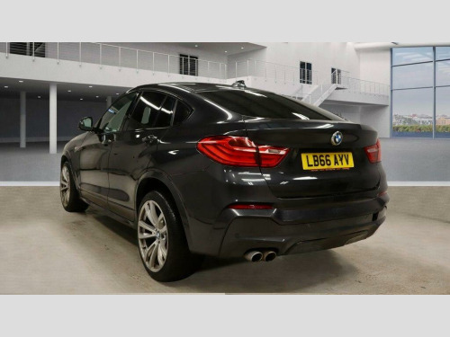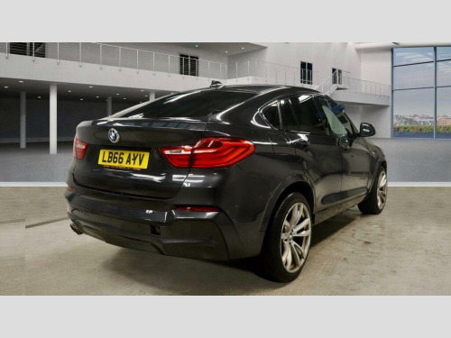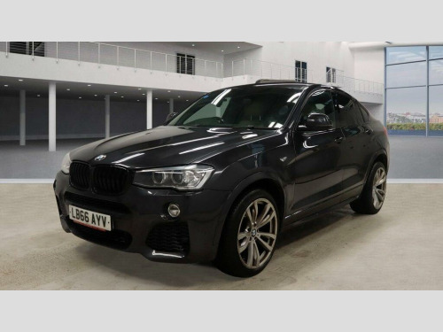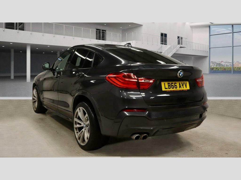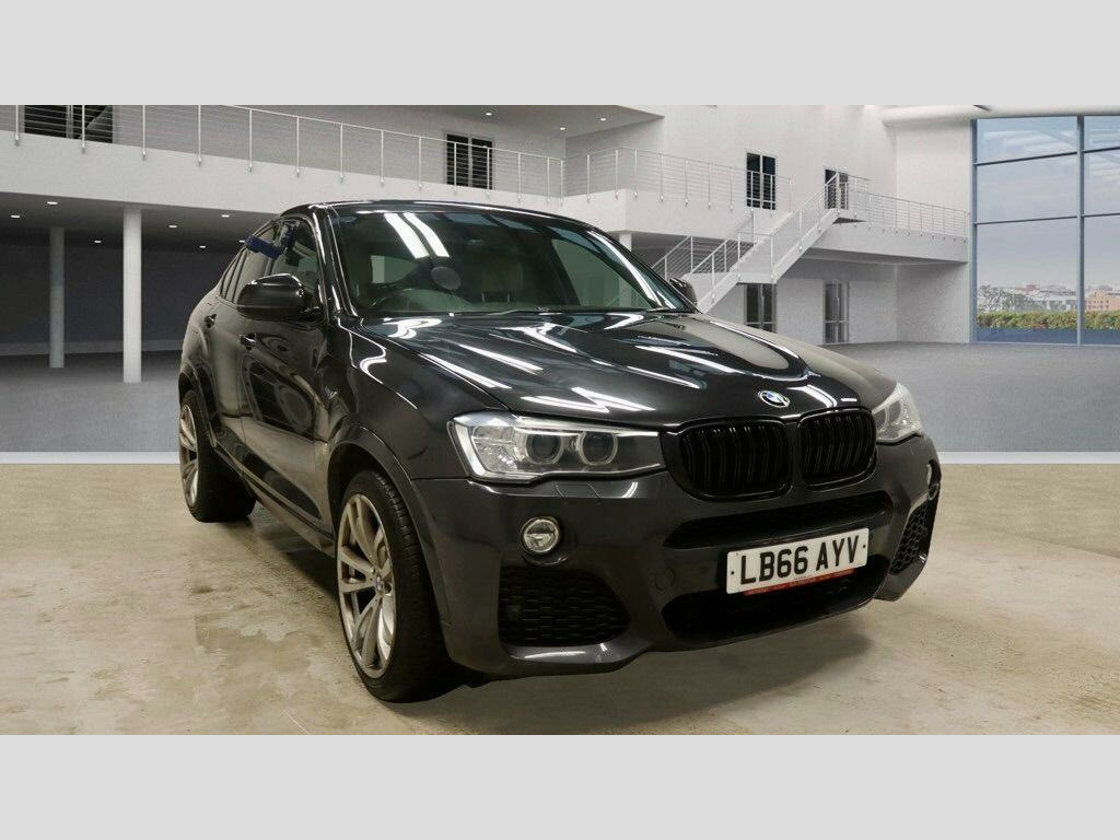 This 2016 BMW X4 30d M Sport boasts a clear vehicle history, offering peace of mind for its next owner. This stylish four wheel drive model features a powerful 3.0 litre diesel engine, meeting Euro 6 emissions standards. Inside, you'll find premium Fineline wood interior trim, front heated seats for added comfort, and both front and rear Park Distance Control with parking assistance sensors to make manoeuvring effortless. Enjoy seamless connectivity with Bluetooth audio streaming for compatible devices.The X4 30d M Sport stands out with its impressive acceleration, reaching 0-62mph in just 5.8 seconds, demonstrating its dynamic performance. This model also benefits from a low insurance group, making it a more economical choice to own. Furthermore, the generous boot space ensures practicality for all your needs, from daily errands to weekend getaways. These highlights collectively indicate that this BMW X4 offers a superior driving experience and ownership proposition compared to other vehicles in its class. v power socket - centre console, 19in alloy wheels - light m double-spoke style 622m, 40-20-40 split folding rear seats, 6.5in colour display screen, abs - anti lock braking system, asc - automatic stability control, additional detachable cupholder, air conditioning - automatic with two-zone control, airbags - driver, airbags - front its head, airbags - front side, airbags - passenger, airbags - passenger deactivation, airbags - rear its head, alarm system thatcham 1 with remote control, ambient interior lighting, anti roll bars - front and rear, armrest - front centre console - nevada leather - black, armrest - front with storage compartment, armrest - front-rear lateral - upper section - nevada leather - black, armrest - rear centre, automatically dimming rear view mirror, auxiliary input, bmw apps interface, bmw connecteddrive online services, bmw emergency call, bmw navigation business system, bmw professional radio - single cd and mp3, bmw teleservices, bluetooth - audio streaming - with compatible devices, bluetooth hands free facility, brake drying, brake fade compensation, brake force display, brake pre-tensioning, cbc - cornering brake control, central locking - remote, child proof locking system - rear doors, child seat isofix attachment - rear, courtesy lights - front and rear with soft on-off dimming, crash sensor - activating central locking-hazard warning lights-fuel cut off, cruise control with brake function, cup holders - rear armrest, dab digital radio, dbc - dynamic brake control, dsc - dynamic stability control - stabilises the vehicle in extreme situations - controls traction, dtc - dynamic traction control, door handles - body colour, door mirrors - body coloured, door mirrors - electric and heated and aspheric, door mirrors - integrated indicators - led, door panels - inserts - synthetic leather - black, door panels - plastic - black, door panels - upper arm trim - expanded vinyl - black, door sill finishers - m designation, drive performance control - eco pro - comfort - sport and sport plus, ebd - electronic brake-force distribution, electric windows - front and rear with open-close fingertip control, electro mechanical parking brake, embellishers for instrument panel - black high-gloss, engine immobiliser, exhaust - dual with chrome finisher, exterior b pillar - black, exterior trim - high-gloss shadowline, first aid kit, floor carpet - velour - anthracite, floor mats - anthracite, floor mats - velour, follow me home headlight function, footwell lights - front, glove compartment - illuminated, grab handles - sky grey, grab handles with coat hooks, hdc - hill descent control, head restraints - front and rear, headlights - automatic activation, headlights - height adjustment, headlights - led corona rings, headlights - washer system, headlining - anthracite, headlining - sky grey, headrests - active front, headrests - synthetic leather - black, heated windscreen washer jets, high level third brake light, hill start assistant, incorrect fuelling protection system, indicator lenses - clear, instrument panel - lower section - plastic grained - black, instrument panel - upper section - plastic grained - black, interior trim - a pillar - upper section - sky grey, interior trim - b pillar - lower section - black, interior trim - b pillar - upper section - sky grey, interior trim - brushed aluminium, interior trim - c pillar - upper section - sky grey, interior trim - d pillar - upper section - sky grey, keyless start, kidney grille - chrome with satin aluminium vertical slats, led fog lights - front, led tailights, lashing eyes in luggage compartment x4, locking wheel bolts, luggage compartment - light, luggage compartment - removable cover, luggage compartment lining - anthracite, m aerodynamic bodystyling, m sport package, media package - bmw business, multifunction controls for steering wheel, obc - on-board computer, pdc - park distance control - front, pdc - park distance control - rear, performance control, pollen filter, power socket - 12v in luggage compartment, rain sensor, reading lights - front and rear, run flat tyres, seat belts - front inertia reel with pyrotechnical belt latch tensioner and belt force limiter, seat belts - rear - three with inertia reel, seat finishers - side - plastic grained - black, seats - front backrest - plastic - black, seats - front heated, seats - manual adjustment for height - fore and aft position - recline angle, servotronic steering, side impact protection, speakers x6, sport seats - front, start-stop button with keyless operation, steering column with manual reach and rake adjustment, steering wheel - gearshift paddles, steering wheel - leather - m sport, storage compartment - front door pockets, storage compartment - trays in centre console, sun visors - sky grey, sun visors with illuminated vanity mirrors and ticket holder, suspension - sport, tmc - traffic information for lifetime of vehicle, tpms - tyre pressure monit