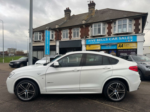 FIVE BELLS CAR SALES HAVE THE PLEASURE IN OFFERING THIS STUNNING BMW X4 3.0 30D M-SPORT AUTO X DRIVE WITH SERVICE HISTORY EURO 6 ULEZ COMPLIANT EXTRAS INCLUDE, SAT NAV, AIR CON, BLUETOOTH, SUN ROOF, HEATED SEATS, ELECTRIC WINDOWS, FULL BLACK LEATHER INTERIOR, POWER LIFT TAILGATE, AUTO HEADLIGHTS, ALLOY WHEELS, M-SPORT BODY STYLING, ELECTRIC HEATED WING MIRRORS, STUNNING COLOUR, VERY ECONOMICAL DRIVES FAULTLESS, JUST ARRIVED, ANY INSPECTION WELCOME, SUPERB VALUE, LOCATED IN BASILDON JUST OFF A13 PLEASE CALL 01268 555888 AT YOUR CONVENIENCE TO ARRANGE A VIEWING FINANCE AVAILABLE,PX WELCOME, OPEN 7 DAYS, £9975