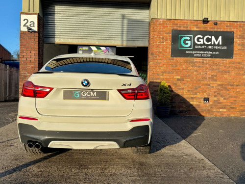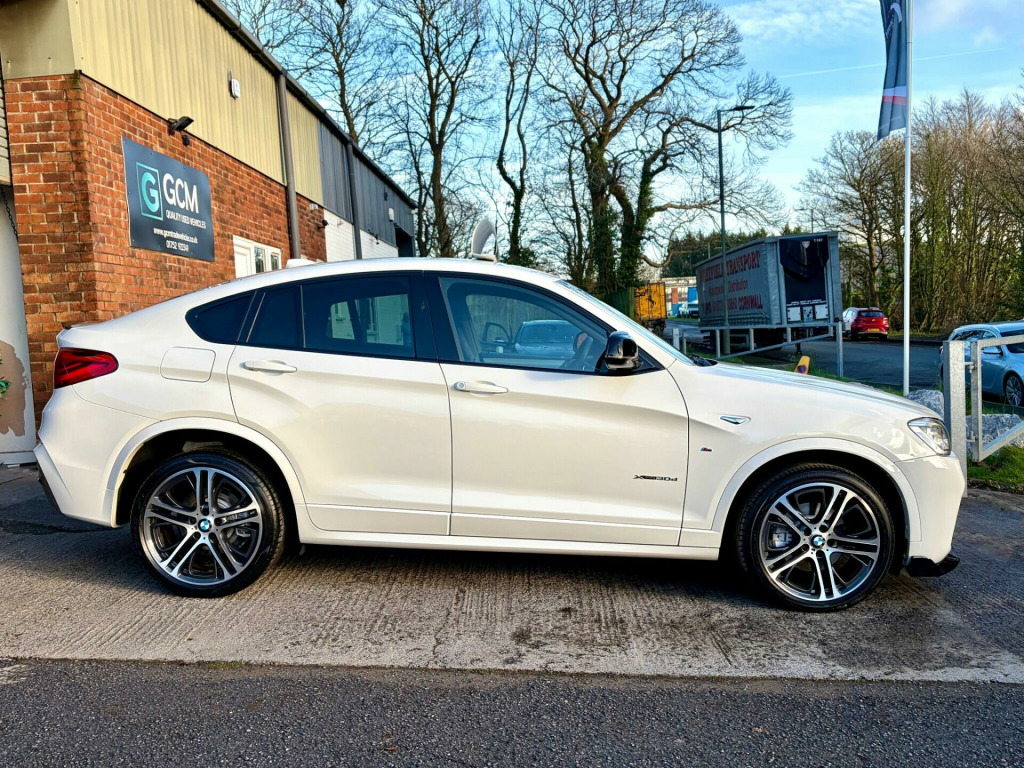 Here for sale is a beautifully presented 2015 65 plate BMW X4 3.0 30d M Sport Auto xDrive**PURCHASE THIS VEHICLE IN DECEMBER AND RECEIVE A 12 MONTH COMPREHENSIVE WARRANTY WORTH £449 COMPLETELY FREE OF CHARGE**Finished in Alpine White accompanied with Immaculate Black Nevada Leather Upholstery.The BMW has 3 former keepers & covered 102,000 miles with service history completed at: 17k, 27k, 35k, 51k, 63k, 72k, 77k, 81k, 92k, 100k The car has now completed a fresh service & 12 months advisory free MOT ensuring the car is ready for its new owner to drive home and enjoy.The car has a MASSIVE spec including:INTERIOR COMFORT PACKAGE20'' ALLOY WHEELSADAPTIVE LED HEADLIGHTS WITH HIGH BEAM ASSISTMEDIA PACKAGEHARMON KARDONELECTRIC DRIVERS SEAT WITH MEMORYREVERSING CAMERASUN PROTECTION GLAZING& Much Much More The car is in OUTSTANDING condition inside and out and drives like new, a true credit to its previous owners. **PURCHASE THIS VEHICLE IN DECEMBER AND RECEIVE A 12 MONTH COMPREHENSIVE WARRANTY WORTH £449 COMPLETELY FREE OF CHARGE**I welcome any inspection. LARGE INDOOR SHOWROOM FOR DARK EVENINGS AND WET WEATHER FINANCE OPTIONS AVAILABLEHPI CHECKED AND CLEARPART EXCHANGE WELCOMEEXTENDED WARRANTY OPTIONS AVAILABLEVIEWINGS BY APPOINTMENT ONLY01752 922349 terior comfort package, 20in alloy wheels - light m double-spoke style 310m, adaptive led headlights with high-beam assistant, seat adjustment - front electric with driver memory, media package - bmw professional, speaker system - harman kardon, enhanced bluetooth telephone preparation with usb audio interface and voice control, extended storage, reversing assist camera, sun protection glazing, door mirrors - folding - automatically dimming, steering wheel - heated, high-beam assistant, internet, nevada leather - black, 12v power socket - centre console, 19in alloy wheels - light m double-spoke style 622m, 40-20-40 split folding rear seats, abs - anti lock braking system, asc - automatic stability control, additional detachable cupholder, air conditioning - automatic with two-zone control, airbags - curtain head protection system, airbags - driver, airbags - front side, airbags - passenger, airbags - passenger deactivation, alarm system thatcham 1 with remote control, ambient interior lighting, anti roll bars - front and rear, armrest - front with storage compartment, armrest - rear centre, automatically dimming rear view mirror, auxiliary input, bmw emergency call, bmw individual reading lights - rear, bmw professional radio - single cd and mp3, bmw teleservices, bluetooth hands free with usb audio interface, brake drying, brake fade compensation, brake force display, brake pre-tensioning, cbc - cornering brake control, central locking - remote, child proof locking system - rear doors, child seat isofix attachment - rear x2, crash sensor - activating central locking-hazard warning lights-fuel cut off, cruise control with brake function, dab digital radio, dbc - dynamic brake control, dsc - dynamic stability control - stabilises the vehicle in extreme situations - controls traction, dtc - dynamic traction control, daytime running lights, door handles - body colour, door mirrors - body coloured, door mirrors - electric and heated and aspheric, door sill finishers - m designation, drive performance control - eco pro - comfort - sport and sport plus, ebd - electronic brake-force distribution, electric windows - front and rear with open-close fingertip control, electro mechanical parking brake, embellishers for instrument panel - black high-gloss, engine immobiliser, exhaust - dual with chrome finisher, exterior trim - high-gloss shadowline, first aid kit, floor mats - velour, follow me home headlight function, footwell lights - front, glove compartment - illuminated, grab handles with coat hooks, hdc - hill descent control, head restraints - front and rear, headlights - automatic activation, headlights - height adjustment, headlights - washer system, headlining - anthracite, heated windscreen washer jets, high level third brake light, hill start assist, incorrect fuelling protection system, interior trim - brushed aluminium, keyless start, kidney grille - chrome with satin aluminium vertical slats, led fog lights - front, lashing eyes in luggage compartment x4, locking wheel bolts, luggage compartment - removable cover, m aerodynamic bodystyling, m sport package, media package - bmw business, multifunction controls for steering wheel, navigation system - bmw business advanced, obc - on-board computer, optimum shift indicator, pdc - park distance control - front, pdc - park distance control - rear, performance control, power socket - 12v in luggage compartment, rain sensor, reading lights - front and rear, run flat tyres, seats - front - manual height adjustment, seats - front heated, side impact protection, speakers x6, sport seats - front, steering column with manual reach and rake adjustment, steering wheel - gearshift paddles, steering wheel - leather - m sport, storage compartment - front door pockets, storage compartment - trays in centre console, sun visors with illuminated vanity mirrors and ticket holder, suspension - sport, tpms - tyre pressure monitoring system, tailgate operation - powered, usb audio interface, variable sport steering, voice control - phone, warning triangle, xenon headlights, idrive controller on centre console with 6.5in colour display