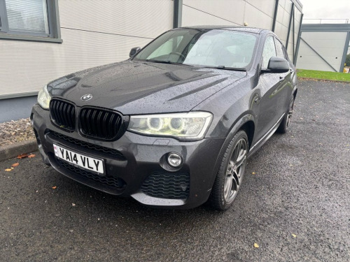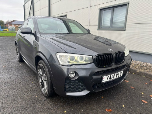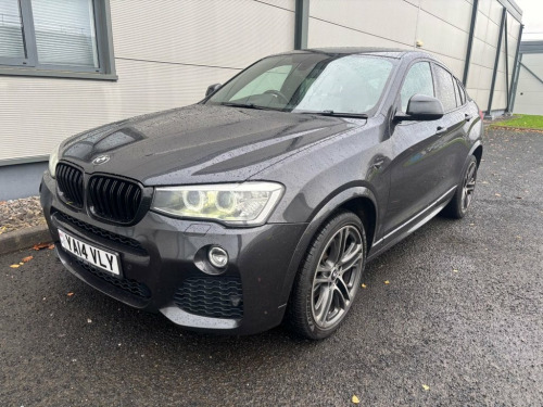 With a long MOT lasting until August 2025, this 2014 BMW X4 30d M Sport is ready to drive away. The X4 is equipped with a 3.0L diesel engine and a suite of M Sport trim features. The vehicle has folding and automatically dimming door mirrors, as well as an interior finished with fine line anthracite wood and pearl chrome. The glass sunroof, which includes an electric sunroof, lets light flood into the cabin. Enhanced Bluetooth telephone preparation with a USB audio interface is included. The four-wheel drive drivetrain gives confidence in all conditions, and it is also rated to tow up to 2400 kg. The vehicle is Euro 6 compliant. The head-up display projects key information onto the windscreen. The car's low insurance group and rapid acceleration, reaching 0-60mph in just 5.8 seconds, make it stand out from similar vehicles. THIS CAR WILL HAVE A FULL PDI INSPECTION, SERVICE, MOT, WARRANTY, PROFESSIONAL VALET AND HPI DATA CHECK REPORT. OUR CARS ARE PRICE CHECKED DAILY AND NEARLY ALL OF OUR CARS ARE READY TO DRIVE AWAY. **VERY LOW RATE FINANCE** AVAILABLE SUBJECT TO STATUS. OUR FINANCE EXPERTS WILL BE HAPPY TO HELP WITH YOUR ENQUIRY. 12V Power Socket - Centre Console, 19in Alloy Wheels - Light M Double-Spoke, 20in Alloy Wheels - Light M Double-Spoke, 40-20-40 Split Folding Rear Seats, ABS - Anti Lock Braking System, Additional Detachable Cupholder, Air Conditioning - Automatic with Two-Zo, Airbags - Curtain Head Protection system, Airbags - Driver, Airbags - Front Side, Airbags - Passenger, Airbags - Passenger Deactivation, Alarm System Thatcham 1 with Remote Cont, Ambient Interior Lighting, Anti Roll Bars - Front and Rear, Armrest - Front with Storage Compartment, Armrest - Rear Centre, ASC - Automatic Stability Control, Automatically Dimming Rear View Mirror, Auxiliary Input, Bluetooth Hands Free with USB Audio Inte, B