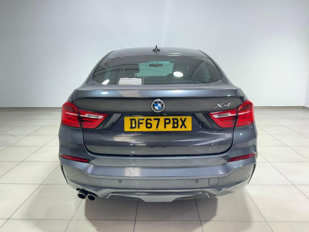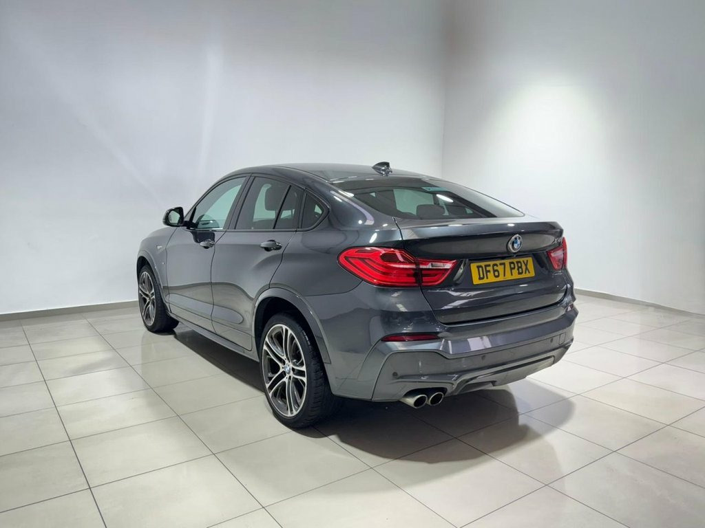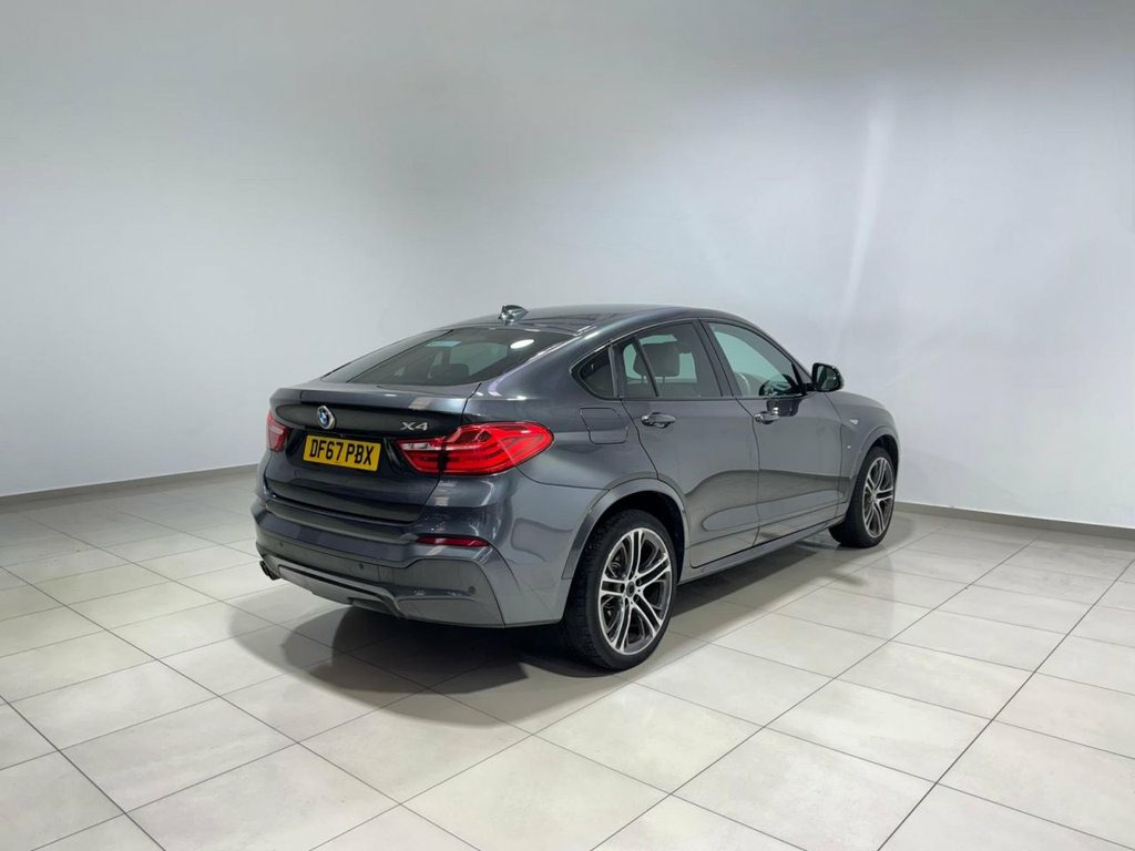 ** NATIONWIDE DELIVERY ** X2 KEYS ** ULEZ COMPLIANT ** MEMORY SEATS + ELECTRIC SEATS ** HARMAN KARDON ** SERVICE HISTORY ** FRESH SERVICE ** 12 MONTH MOT ** 3 MONTH WARRANTY ** 12 MONTH AA BREAKDOWN COVER ** The BMW X4 xDrive30d M Sport delivers a powerful blend of performance, style and cutting-edge technology. With aggressive M Aerodynamic bodystyling, High-Gloss Shadowline trim and striking 20" M Double-Spoke alloy wheels, it commands attention from every angle. Adaptive Xenon headlights with High-Beam Assistant, LED front fog lights and automatic tailgate operation enhance everyday convenience, while features such as sport suspension, Drive Performance Control and BMW's advanced xDrive system ensure a dynamic and confident drive in all conditions. Inside, the X4 offers premium comfort and intelligent connectivity. Heated front Sport seats with electric adjustment and driver memory, dual-zone automatic air conditioning, ambient lighting and anthracite headlining create a refined cabin atmosphere. BMW Navigation, ConnectedDrive services, Harman Kardon audio, Bluetooth with USB, reversing camera and front and rear PDC elevate every journey. Practicality comes with split-folding rear seats, a through-loading system, illuminated luggage compartment and a host of safety systems including DSC, multiple airbags, side impact protection and tyre pressure monitoring. 19in Alloy Wheels - Light M Double-Spoke, Access to BMW Connected Plus (12 Month S, Air Conditioning - Automatic - Dual Zone, Airbags, Alarm System - Thatcham 1 with Remote Co, Ambient Lighting, Anti Roll Bars - Front and Rear, Armrest - Front with Storage Compartment, Armrest - Rear, Automatically Dimming Rear View Mirror, Auxiliary Input Point for Auxiliary Play, B Pillar - Black Mat, BMW ConnectedDrive Online Services, BMW Emergency Call, BMW Navigation System, BMW Professional Radio with Single CD Pl, BMW TeleServices, Bluetooth Hands Free with USB Audio Inte, Brake Force Display, Central Locking for Doors Boot and Fuel , Child Locking System - Rear Doors, Child Seat ISOFIX Attachment -