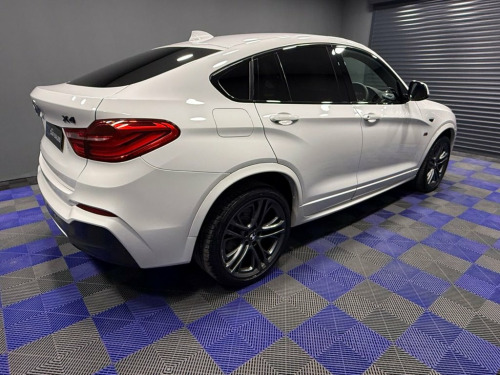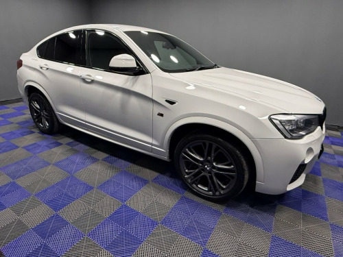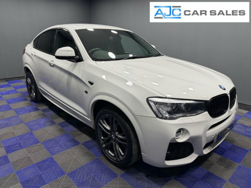 AJC Car Sales presents this stunning BMW X4 3.0 30d M Sport SUV 5dr Diesel Auto xDrive Euro 6 (s/s) (258 ps) finished off in Alpine White with upgraded 20" Light M Double Spoke Alloys, Two Keys and a Great Service Record. This X4 boasts an impressive £6655 optional extras which include: M Sport Plus Package, 20" M Light Alloys, Adaptive Headlights, High Beam Assist, Harmon Kardon Sound System, Media Package and More. The 2017 BMW X4 3.0 30d M Sport is a dynamic and refined Sports Activity Coupé that seamlessly blends performance, luxury, and everyday practicality. Powered by a responsive 3.0-litre turbocharged diesel engine delivering 258 PS, this model offers a compelling balance of strong acceleration and effortless long-distance cruising, backed by an efficient Euro 6 emissions standard with start/stop functionality. Finished in the signature M Sport specification, the X4 stands out with an athletic design language that includes M Aerodynamics, bespoke exterior trim, and larger alloy wheels, underscoring its performance-oriented character. The xDrive all-wheel drive system ensures confident handling and traction in a variety of conditions, while the smooth 8-speed automatic transmission delivers precise shifts and refined driving dynamics. Inside, the cabin exemplifies BMW's commitment to premium comfort and driver-centric ergonomics. High-quality materials, supportive sports seats, and advanced technology features elevate every journey—wh Access to BMW Connected Plus (12 Month S, Auxiliary Input Point for Auxiliary Play, Bluetooth Hands Free with USB Audio Inte, BMW ConnectedDrive Online Services, BMW Emergency Call, BMW Navigation System, BMW Professional Radio with Single CD Pl, BMW TeleServices, DAB Digital Radio, Loudspeaker System with Six Speakers, Power sockets - 12V in Front Centre Cons, Real Time Traffic Information, 19in Alloy Wheels - Light M Double-Spoke, B Pillar - Black Mat, Door Handles - Body Colour, Electric Windows - Front and Rear with O, Exhaust - Dual with Chrome Finisher, Exterior Mirrors in Body Colour, Exterior Trim - High-Gloss Shadowline, Heated Windscreen Washer Jets, Indicator Lenses - Clear, Kidne