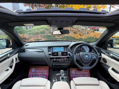 Well presented BMW X4 with optional extras such as Sunroof, Head Up Display, Front and Rear Parking Sensors, Heated Leather Steering Wheel, Paddle Shift Gearbox, Bluetooth Music Streaming with Music Collection. Car comes with part service with visits at 18k, 34k, 105k and 115k miles. Our example benefits from refurbed alloy wheels and MOT till September 2026. v power socket - centre console, auxiliary input, bmw emergency call, bmw professional radio - single cd and mp3, bmw teleservices, bluetooth hands free with usb audio interface, dab digital radio, media package - bmw business, navigation system - bmw business advanced, power socket - 12v in luggage compartment, speakers x6, usb audio interface, 19in alloy wheels - light m double-spoke style 622m, door handles - body colour, door mirrors - body coloured, door mirrors - electric and heated and aspheric, electric windows - front and rear with open-close fingertip control, exhaust - dual with chrome finisher, exterior trim - high-gloss shadowline, heated windscreen washer jets, kidney grille - chrome with satin aluminium vertical slats, locking wheel bolts, m aerodynamic bodystyling, m sport package, run flat tyres, 40-20-40 split folding rear seats, additional detachable cupholder, air conditioning - automatic with two-zone control, ambient interior lighting, armrest - front with storage compartment, armrest - rear centre, automatically dimming rear view mirror, bmw individual reading lights - rear, door sill finishers - m designation, embellishers for instrument panel - black high-gloss, floor mats - velour, footwell lights - front, glove compartment - illuminated, grab handles with coat hooks, head restraints - front and rear, headlining - anthracite, interior trim - brushed aluminium, keyless start, lashing eyes in luggage compartment x4, luggage compartment - removable cover, multifunction controls for steering wheel, rain sensor, reading lights - front and rear, seats - front - manual height adjustment, seats - front heated, sport seats - front, steering column with manual reach and rake adjustment, steering wheel - gearshift paddles, steering wheel - leather - m sport, storage compartment - front door pockets, storage compartment - trays in centre console, sun visors with illuminated vanity mirrors and ticket holder, tailgate operation - powered, abs - anti lock braking system, asc - automatic stability control, airbags - curtain head protection system, airbags - driver, airbags - front side, airbags - passenger, airbags - passenger deactivation, alarm system thatcham 1 with remote control, anti roll bars - front and rear, brake drying, brake fade compensation, brake pre-tensioning, cbc - cornering brake control, central locking - remote, child proof locking system - rear doors, child seat isofix attachment - rear x2, crash sensor - activating central locking-hazard warning lights-fuel cut off, dbc - dynamic brake control, dsc - dynamic stability control - stabilises the vehicle in extreme situations - controls traction, dtc - dynamic traction control, ebd - electronic brake-force distribution, electro mechanical parking brake, engine immobiliser, first aid kit, hdc - hill descent control, hill start assist, incorrect fuelling protection system, side impact protection, warning triangle, brake force display, cruise control with brake function, drive performance control - eco pro - comfort - sport and sport plus, obc - on-board computer, optimum shift indicator, pdc - park distance control - front, pdc - park distance control - rear, performance control, suspension - sport, tpms - tyre pressure monitoring system, variable sport steering, voice control - phone, idrive controller on centre console with 6.5in colour display, daytime running lights, follow me home headlight function, headlights - automatic activation, headlights - height adjustment, headlights - washer system, high level third brake light, led fog lights - front, xenon headlights