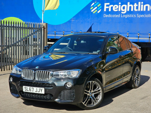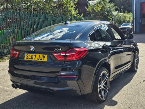 This 2017 BMW X4 3.0 35d M Sport SUV is a high-performance diesel SUV with a Euro 6 compliant engine delivering 313 PS, perfect for long journeys with its mileage of 89095 miles. The Black Sapphire exterior is complimented by 20in Alloy Wheels, while the interior boasts comfortable 5 seats and a Glass Sunroof for added luxury. With 5 doors and the M Sport Plus Package, this SUV is both practical and stylish, and the Sun Protection Glazing ensures a comfortable ride even in bright conditions. Additionally, this vehicle is ULEZ compliant, making it a responsible choice for city driving.UK delivery available.Part exchange welcome.AA extended warranty partner.AA standards approved dealership.Trading standards approved dealership.Autotrader highly rated dealership. in alloy wheels - light m double-spoke style 622m, b pillar - black mat, door handles - body colour, electric windows - front and rear with open-close fingertip control - anti-trap facility and comfort closing function, exhaust - dual with chrome finisher, exterior mirrors in body colour, exterior trim - high-gloss shadowline, heated windscreen washer jets, indicator lenses - clear, kidney grille - chrome with satin aluminium vertical slats, m aerodynamic bodystyling, m sport package, model designation, run flat tyres, wheels - locking wheel nuts, access to bmw connected plus (12 month subscription from new), auxiliary input point for auxiliary playing devices, bmw connecteddrive online services, bmw emergency call, bmw navigation system, bmw professional radio with single cd player - with mp3 playback compatibility, bmw teleservices, bluetooth hands free with usb audio interface, dab digital radio, loudspeaker system with six speakers, power sockets - 12v in front centre console and 12v in luggage compartment, real time traffic information, air conditioning - automatic - dual zone, ambient lighting, armrest - front with storage compartment, armrest - rear, automatically dimming rear view mirror, courtesy lights - front and rear with soft on-off dimming, cup holders - centre console with roll cover, door sill finishers - m designation, embellishers for instrument panel - black high-gloss, floor mats - velour, footwell lights - front, glove compartment - illuminated, grab handles with coat hooks - rear, head restraints - front and rear, headlining - anthracite, interior trim - brushed aluminium, luggage compartment - illuminated with four lashing eyes in boot floor, luggage compartment - removable cover, m leather steering wheel with gearshift paddles, rain sensor with automatic headlight activation, reading lights - front and rear, rear fog light, seat heating - front, seats - front sports, seats - manual adjustment for height - fore and aft position - recline angle and headrest, split folding rear seat - 40-20-40, start-stop button with keyless operation, steering column with manual reach and rake adjustment, steering wheel - gearshift paddles, storage pockets in both front doors, storage trays in centre console, sun visors with illuminated vanity mirrors and ticket pocket, tailgate operation - automatic, through-loading system, two tone horn, airbags, alarm system - thatcham 1 with remote control and engine immobiliser, anti roll bars - front and rear, central locking for doors boot and fuel flap activated via remote key or cabin switch, child locking system - rear doors, child seat isofix attachment - rear, dsc - dynamic stability control with extended contents, deformation zones - front and rear, electro mechanical parking brake, first aid kit and warning triangle, hdc - hill descent control, incorrect fuelling protection system, seat belts - front inertia reel with pyrotechnical belt latch tensioner and belt force limiter, seat belts - rear - three with inertia reel, side impact protection, brake force display, cruise control with brake function, drive performance control - eco pro - comfort - sport - sport plus, eps - electric power steering, instrument binnacle with speedometer - tachometer - fuel level and consumption, obc - on-board computer, pdc - park distance control - front and rear, performance control, servotronic steering, suspension - sport, tpms - tyre pressure monitoring system, variable sport steering, idrive controller on centre console with 6.5in colour display, xdrive status display, headlights - height adjustment, headlights - washer system, high level third brake light, led fog lights - front, xenon headlights with follow-me-home function