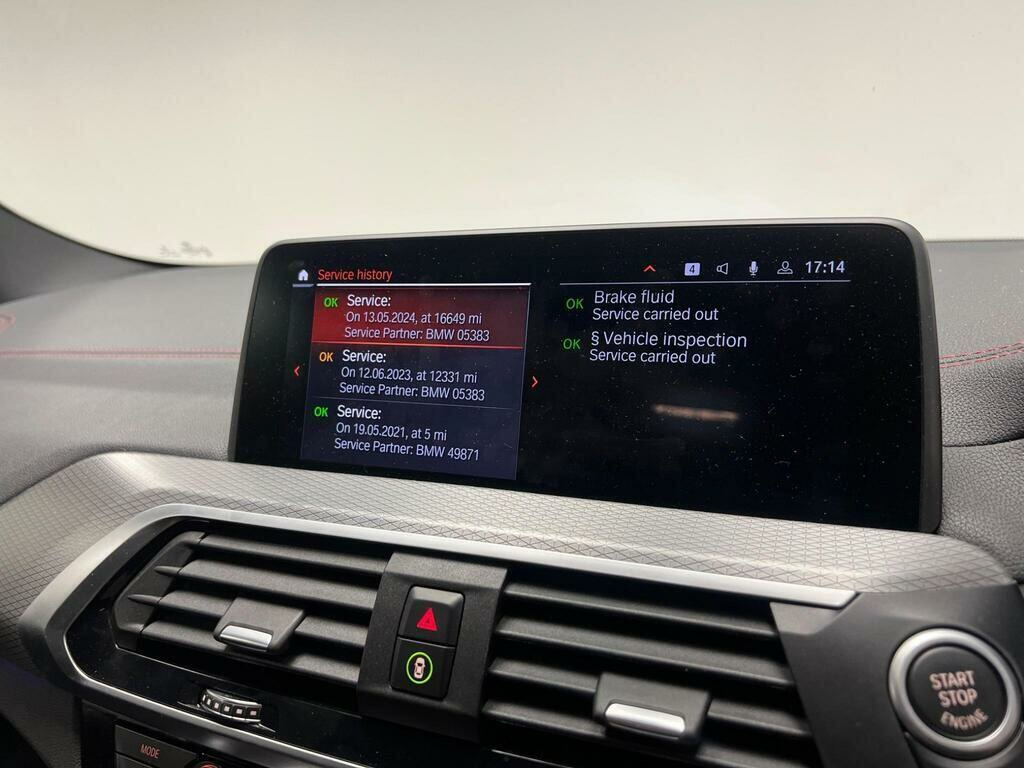 This 2021 BMW X4 M40d presents an exceptional ownership proposition with its remarkably low mileage of just 17,744 miles, having been cherished by only one owner since new. This Euro 6 compliant, four wheel drive model boasts a powerful 3.0L Diesel Hybrid engine, offering a compelling blend of performance and efficiency. Inside, you'll find a wealth of premium features designed for comfort and convenience, including heated seats for both front and rear occupants, a heated steering wheel with gearshift paddles for dynamic control, and a luxurious BMW Individual Anthracite headliner. The automatic climate control ensures a pleasant cabin environment, while the BMW Live Cockpit Professional with Bluetooth connectivity keeps you informed and entertained on every journey.The X4 M40d truly excels in its performance capabilities, achieving an impressive 0-62mph in a mere 4.9 seconds, a testament to its potent powertrain. This rapid acceleration significantly enhances the driving experience, setting it apart from many other vehicles in its class. Furthermore, the generous boot space provides ample practicality for all your needs, whether it's for daily errands or weekend getaways. This combination of exhilarating performance, sophisticated features, and outstanding provenance makes this BMW X4 M40d a standout choice. udspeaker system - harman kardon, heated seats - front and rear, bmw mobility system, vernasca leather - black with red contrast stitching, 12v power socket in front centre console, 20in alloy wheels - m light double-spoke style 699 m - bicolour orbit grey, acoustic glazing, active guard, air conditioning - automatic, airbags, alarm system - thatcham 1 with remote control and engine immobiliser, ambient lighting, armrest - front with storage compartment, armrest - rear centre with two cupholders, attentiveness assistant, bmw connected package professional, bmw connecteddrive online services, bmw emergency call, bmw individual headliner - anthracite, bmw individual high-gloss shadowline, bmw live cockpit professional, bmw professional navigation with 10.25in touch display, bmw professional radio with mp3 playback compatibility, bmw remote services, bmw teleservices, battery safety cut off, bluetooth hands-free facility with usb audio interface and audio streaming, bottle holders integrated into door trim storage compartments - front - up to 1 litre - rear - up to 750ml, brake pad wear indicator - front and rear, bumper system - front and rear, bumpers - body colour, central locking switch for all doors - fuel filler cap - luggage compartment, check control warning system for monitoring of lights and door-luggage compartment open warning, child proof locking system - rear doors, child seat isofix attachment - rear, condition based service, control display - 6.5in colour screen, crash sensor, cruise control with brake and speed limiting function, cup holders - front - two with removable oddments tray-lid, dab tuner, dsc - dynamic stability control - stabilises the vehicle in extreme situations - controls traction, digital cockpit, direction indicator - side repeaters - integrated in exterior mirrors, door handles - body colour, door sill finishers - front - high-gloss black with bmw designation, drive performance control with eco pro - comfort and sport modes, dynamic brake lights, eps - electric power steering, electric windows - front and rear with open-close fingertip control - anti-trap facility and comfort closing function, electro mechanical parking brake, exhaust tailpipes- trapezoidal split left and right, exterior air inlets - mirror caps and air breather in cerium grey, exterior b pillar - black, exterior mirrors - electrically folding with anti dazzle, exterior trim - high-gloss shadowline, first aid kit and warning triangle, full led l-shape 3d taillight, gear knob - leather, headlining - anthracite, heat protection glazing with green tint, high level third brake light using led technology, incorrect fuelling protection system, instrument cluster, instrument panel in sensatec, interior lighting - front centre over interior mirror with soft-light - rear centre and front and rear footwell, interior rear-view mirror with automatic anti-dazzle function, interior trim - aluminium rhombicle with highlight trim finishers pearl chrome, kidney grille - cerium grey frame with black high-gloss vertical slats, led fog lights - front, larger capacity fuel tank, lights-on warning by audio warning signal when ignition is switched off, loudspeaker system - bmw advanced, luggage compartment - light, luggage compartment storage, m aerodynamic bodystyling, m leather steering wheel, m sport braking, m sport differential, m sport suspension, media package - bmw business, model designation, obc - on-board computer, oil sensor for level and grade - warning by check control system, optimum shift indicator, pdc - park distance control - front and rear, parking assistant, performance control, personal profile, rain sensor with automatic headlight activation, rear seat headrests - three, rear suspension - five-link, remote control including integrated key - 2, reversing assist camera, roof mouldings - body colour, run-flat indicator, seat adjustment - front electric with driver memory, seat belt security check for driver and front passenger, seats - front heated, sensatec dashboard, shark fin, side armrests - front and rear integrated into door trim, side exterior m designation badges, side impact protection, sport seats - front, start-stop button with comfort go keyless engine start and auto start-stop deactivation button, steering column with manual reach and rake adjustment, steering wheel - gearshift paddles, storage compartment - rear centre console and front-rear door trim, sun visors with vanity mirrors and ticket holder, tailgate operation - automatic, three-point seat belts - all seats, through-loading system, toolkit located in luggage compartment, twin horns, tyre pressure monitor with a t
