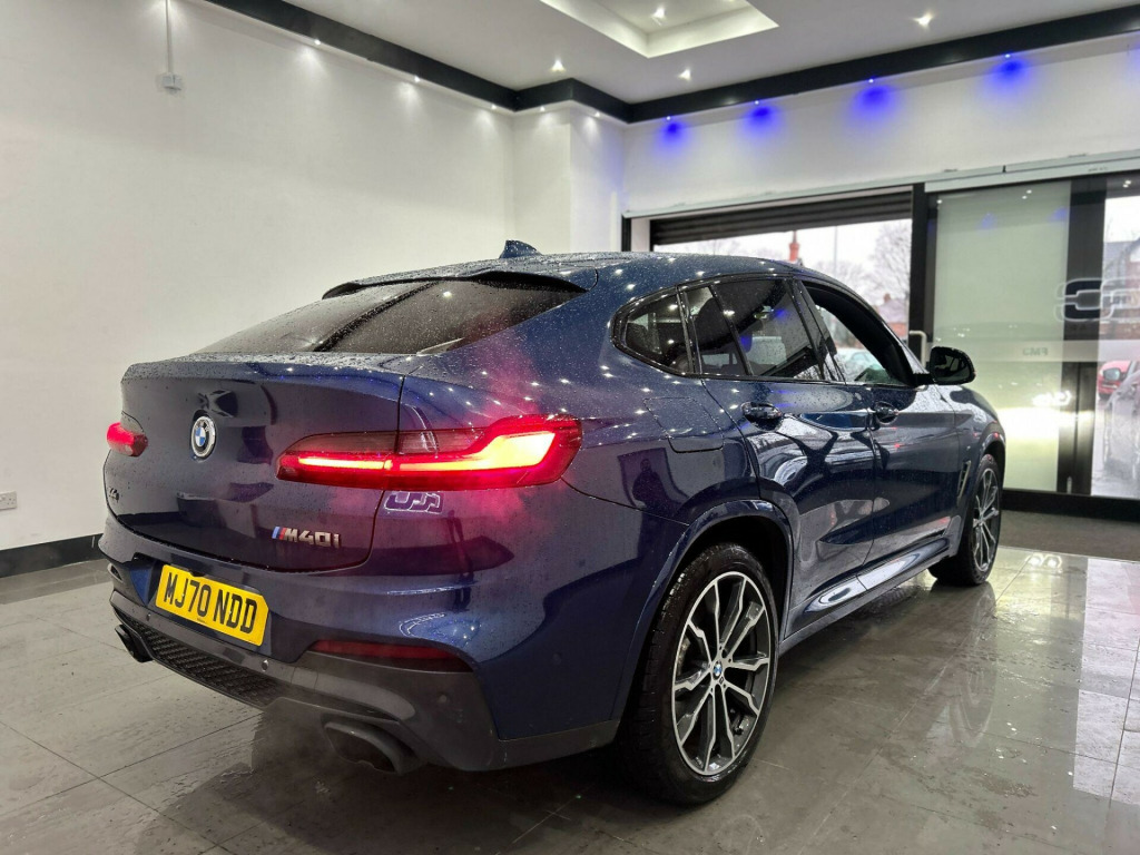 FCA approved!Next day Nationwide Delivery Across the UK, Faster than Amazon Prime!!,Free Delivery up to 25 miles!! Free Break Down cover!!,UP TO 3 YEARS UPGRADED WARRANTY AVAILABLE. Good Gear is delighted to present this exceptional BMW X4 3.0 M40i Auto xDrive Euro 6 (s/s) 5dr for sale. Featuring a comprehensive full-service history with 8 stamps, including the pre-delivery inspection, this vehicle has been meticulously maintained. The most recent service was completed at 84,200 miles. It comes with an MoT valid until Nov 2026 with no Advisories.This car has had only 1 prev owners and includes two keys. It starts, drives, and stops without any issues, reflecting its genuine and clean condition. The bodywork is in excellent shape, and the interior is free from stains and rips.We offer a 3-month full comprehensive warranty with the option to upgrade to a longer-term comprehensive warranty for an additional fee.Free breakdown Cover. We welcome credit card payments.All part exchanges welcome.Optional home deliveryThis car is at a local dealership. Commit to buying it and get it dropped off in your driveway for free. Contact Us for full details and conditions. Free for buyers within 25 miles of the dealership.We collaborate with finance companies, providing options for both full and partial financing for our vehicles.The car is completely HPI clear having no outstanding finance and has not been stolen or subject to an insurance loss either. Its mileage is also verified as completely genuine. The buyer will be supplied with its V5 registration document, service history, MOT certificate and a HPI clear certificate too. All vehicles supplied valeted prior to sale and with a nationwide warranty.Please call us today for a tailor made quotation. PLEASE NOTE - To avoid any disappointment PLEASE CALL PRIOR TO ARRIVAL to ensure the vehicle you are interested in has not been reserved by another customer and is on site available for viewing. chnology package, loudspeaker system - harman kardon, instrument panel in sensatec, enhanced bluetooth telephone preparation with wireless charging, sun protection glazing, bmw mobility system, vernasca leather - black with contrast stitching, 12v power socket in front centre console, 20in alloy wheels - m light double-spoke style 699 m - bicolour orbit grey, acoustic glazing, active guard, air conditioning - automatic, airbags, alarm system - thatcham 1 with remote control and engine immobiliser, ambient lighting, armrest - front with storage compartment, armrest - rear centre with two cupholders, attentiveness assistant, bmw connected package professional, bmw connecteddrive online services, bmw emergency call, bmw icon adaptive led headlights, bmw individual high-gloss shadowline, bmw live cockpit professional, bmw professional radio with mp3 playback compatibility, bmw teleservices, battery safety cut off, bluetooth hands-free facility with usb audio interface and audio streaming, bottle holders integrated into door trim storage compartments - front - up to 1 litre - rear - up to 750ml, brake pad wear indicator - front and rear, bumper system - front and rear, bumpers - body colour, central locking switch for all doors - fuel filler cap - luggage compartment, check control warning system for monitoring of lights and door-luggage compartment open warning, child proof locking system - rear doors, child seat isofix attachment - rear, condition based service, control display - 6.5in colour screen, crash sensor, cruise control with brake and speed limiting function, cup holders - front - two with removable oddments tray-lid, dab digital radio, dsc - dynamic stability control - stabilises the vehicle in extreme situations - controls traction, digital cockpit, direction indicator - side repeaters - integrated in exterior mirrors, door handles - body colour, door sill finishers - front - high-gloss black with bmw designation, drive performance control with eco pro - comfort and sport modes, dynamic brake lights, eps - electric power steering, electric windows - front and rear with open-close fingertip control - anti-trap facility and comfort closing function, electro mechanical parking brake, exhaust tailpipes- trapezoidal split left and right, exterior air inlets - mirror caps and air breather in cerium grey, exterior b pillar - black, exterior mirrors - electrically folding with anti dazzle, exterior trim - high-gloss shadowline, first aid kit and warning triangle, full led l-shape 3d taillight, gear knob - leather, headlining - anthracite, heat protection glazing with green tint, high level third brake light using led technology, high-beam assistant, incorrect fuelling protection system, instrument cluster, interior lighting - front centre over interior mirror with soft-light - rear centre and front and rear footwell, interior rear-view mirror with automatic anti-dazzle function, interior trim - aluminium rhombicle with highlight trim finishers pearl chrome, kidney grille - cerium grey frame with black high-gloss vertical slats, led fog lights - front, larger capacity fuel tank, lights-on warning by audio warning signal when ignition is switched off, loudspeaker system - bmw advanced, luggage compartment - light, luggage compartment storage, m aerodynamic bodystyling, m leather steering wheel, m sport differential, m sport suspension, media package - bmw business, model designation, obc - on-board computer, oil sensor for level and grade - warning by check control system, optimum shift indicator, pdc - park distance control - front and rear, park assistant, parking assistant, performance control, personal profile, rain sensor with automatic headlight activation, rear seat headrests - three, rear suspension - five-link, remote control including integrated key - 2, remote services, reversing assist camera, roof mouldings - body colour, run-flat indicator, seat adjustment - front electric with driver memory, seat belt security check for driver and front passenger, seats