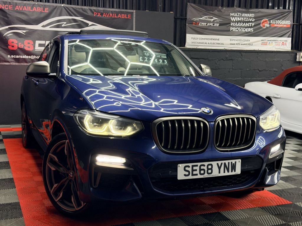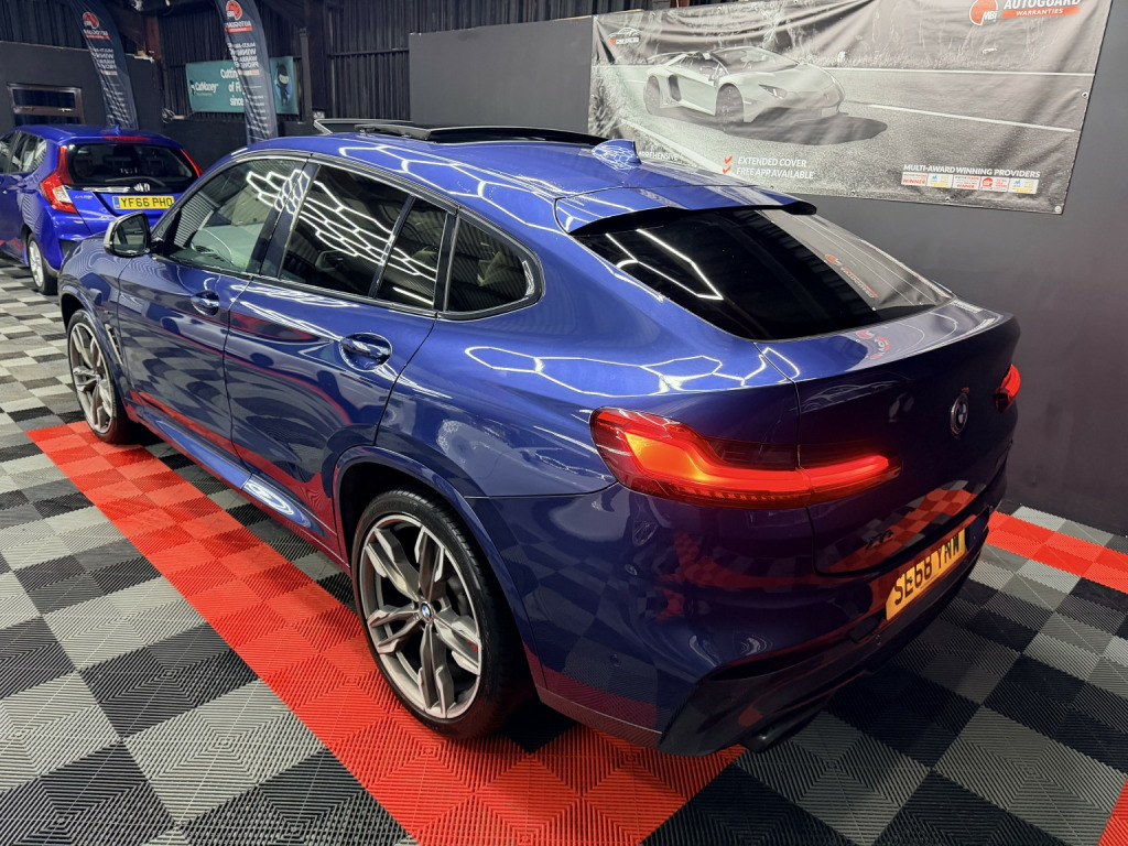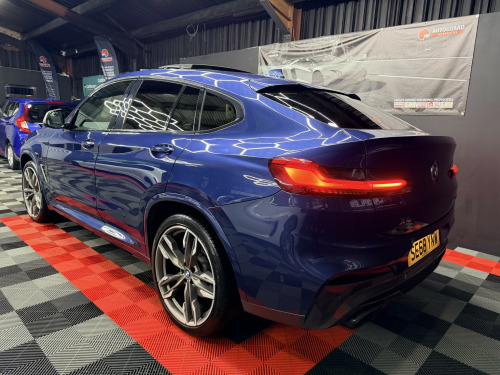 VEHICLES ARRIVING DAILY , FINANCE AVAILABLE , 1 OWNER FROM NEW , 2019 68 REG , £22495 , £7500 FACTORY EXTRAS , ULEZ COMPLIANCE , LOOKS STUNNING, INVIVIDUAL MERINO LEATHER, HEAD UP DISPLAY , GETURE CONTROL, ADPATIVE SUSPENSION, 21 INCH UPGRADED ALLOYS , REAR HEATING , AMBIENT LIGHTING , ELECTRIC SEATS , HEATED SEATS , SAT NAV REAR CAMERA , 87K FULL SERVICE HISTORY, ◼BMW X4 M40D M SPORT X DRIVE, ◼2019 68 REG , ◼ AC EW PAS , ◼SAT NAV , ◼️HEAD UP DISPLAY , ◼️HEATED SEATS , ◼️ELECTRIC SEATS , ◼️TWIN TURBO DIESEL , ◼LED ANGLE LIGHT, ◼ REAR PARKING SENSORS , ◼CRUISE CONTROL , ◼️2 KEYS , , , 6 MONTHS WARRANTY , 12 MONTH MOT , , , 12V Power Socket in Front Centre Console, BMW ConnectedDrive Online Services, BMW Emergency Call, BMW Professional Radio with Single CD Player - with MP3 Playback Compatibility, BMW Remote Services, BMW TeleServices, Bluetooth Hands-Free Facility with USB Audio Interface and Audio Streaming, Control Display - 6.5in Colour Screen, DAB Digital Radio, Digital Cockpit, Media Package - BMW Business, Navigation System - BMW Professional Multimedia, Real Time Traffic Information, Shark Fin, TPMS - Tyre Pressure Monitoring System, iDrive Controller - 8 Favourite Buttons, Attentiveness Assistant, Brake Pad Wear Indicator - Front and Rear, Condition Based Service, Cruise Control with Brake and Speed Limiting Function, Drive Performance Control with ECO PRO - Comfort and Sport Modes, OBC - On-Board Computer, Oil Sensor For Level and Grade - Warning by Check Control System, Optimum Shift Indicator, PDC - Park Distance Control - Front and Rear, Park Assistant, Parking Assistant, Performance Control, Reversing Assist Camera, Run-Flat Indicator, Tyres - Reduced Rolling Resistance, Visibility Pack, Windscreen Washer Jets - Heated, 20in Alloy Wheels - Bi-Colour Orbit Grey M Light Double Spoke Style 699 M with Run-Flat Tyres, Bumper System - Front and Rear, Bumpers - Body Colour, Direction Indicator - Side Repeaters - Integrated in Exterior Mirrors, Door Handles - Body Colour, Electric Windows - Front and Rear with Open-Close Fingertip Control - Anti-Trap Facility and Comfort Closing Function, Exhaust Tailpipes- Trapezoidal Split Left and Right, Exterior Air Inlets - Mirror Caps and Air Breather in Cerium Grey, Exterior B Pillar - Black, Exterior Mirrors Electrically Adjustable, Exterior Trim - High-Gloss Shadowline, Heat Protection Glazing with Green Tint, Kidney Grille - Cerium Grey Frame with Black High-gloss Vertical Slats, M Aerodynamic Bodystyling, Model Designation, Roof Mouldings - Body Colour, Run Flat Tyres, Side Exterior M Designation Badges, BMW Icon Adaptive LED Headlights, Check Control Warning System for Monitoring of Lights and Door-Luggage Compartment Open Warning, Full LED L-Shape 3D Taillight, High Level Third Brake Light Using LED Technology, LED Fog Lights - Front, Lights-On Warning by Audio Warning Signal When Ignition is Switched Off, Sun Visors with Vanity Mirrors and Ticket Holder, Tailgate Operation - Automatic, Through-Loading System, Toolkit Located in Luggage Compartment, Twin Horns, Welcome Light Carpet, Windscreen Wipers with Adjustable Intervals, Air Conditioning - Automatic, Ambient Lighting, Armrest - Front with Storage Compartment, Armrest - Rear Centre with Two Cupholders, Bottle Holders Integrated into Door Trim Storage Compartments - Front - up to 1 litre - Rear - Up to 750ml, Central Locking Switch for All Doors - Fuel Filler Cap - Luggage Compartment, Cup Holders - Front - Two with Removable Oddments Tray-Lid, Door Sill Finishers - Front - High-Gloss Black with BMW Designation, Gear Knob - Leather, Headlining - Anthracite, Instrument Cluster, Interior Lighting - Front Centre Over Interior Mirror with Soft-Light - Rear Centre and Front and Rear Footwell, Interior Rear-View Mirror with Automatic Anti-Dazzle Function, Interior Trim - Aluminium Rhombicle with Highlight Trim Finishers Pearl Chrome, Luggage Compartment - Light, Luggage Compartment Storage, Personal Profile, Rain Sensor with Automatic Headlight Activation, Rear Seat Headrests - Three, Seat Adjustment - Front Electric with Driver Memory, Seats - Front Heated, Sensatec Dashboard, Side Armrests - Front and Rear Integrated into Door Trim, Sport Seats - Front, Start-Stop Button with Comfort Go Keyless Engine Start and Auto Start-Stop Deactivation Button, Steering Column with Manual Reach and Rake Adjustment, Steering Wheel - M Sport Leather Multifunction, Storage Compartment - Rear Centre Console and Front-Rear Door Trim, Variable Sport Steering, EPS - Electric Power Steering, Larger Capacity Fuel Tank, M Sport Differential, M Sport Suspension, Rear Suspension - Five-Link, Sport Automatic Transmission, Three-Point Seat Belts - All Seats, Visible VIN, Active Guard, Airbags, Alarm System Thatcham Category 1 with Remote Control and Engine Immobiliser, Battery Safety Cut Off, Child Proof Locking System - Rear Doors, Child Seat ISOFIX Attachment - Rear, Crash Sensor, DSC - Dynamic Stability Control - Stabilises the Vehicle in Extreme Situations - Controls Traction, Dynamic Brake Lights, Electro Mechanical Parking Brake, First Aid Kit and Warning Triangle, Incorrect Fuelling Protection System, M Sport Braking System, Remote Control Including Integrated Key - 2, Seat Belt Security Check for Driver and Front Passenger, Side Impact Protection