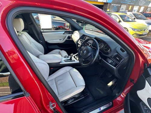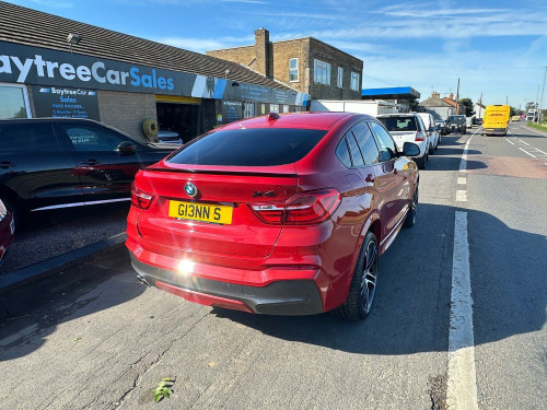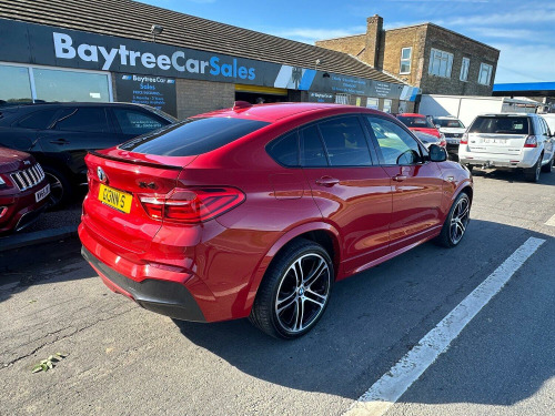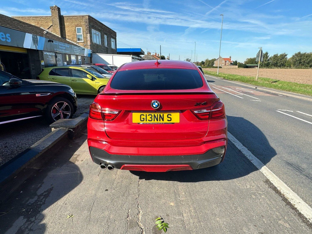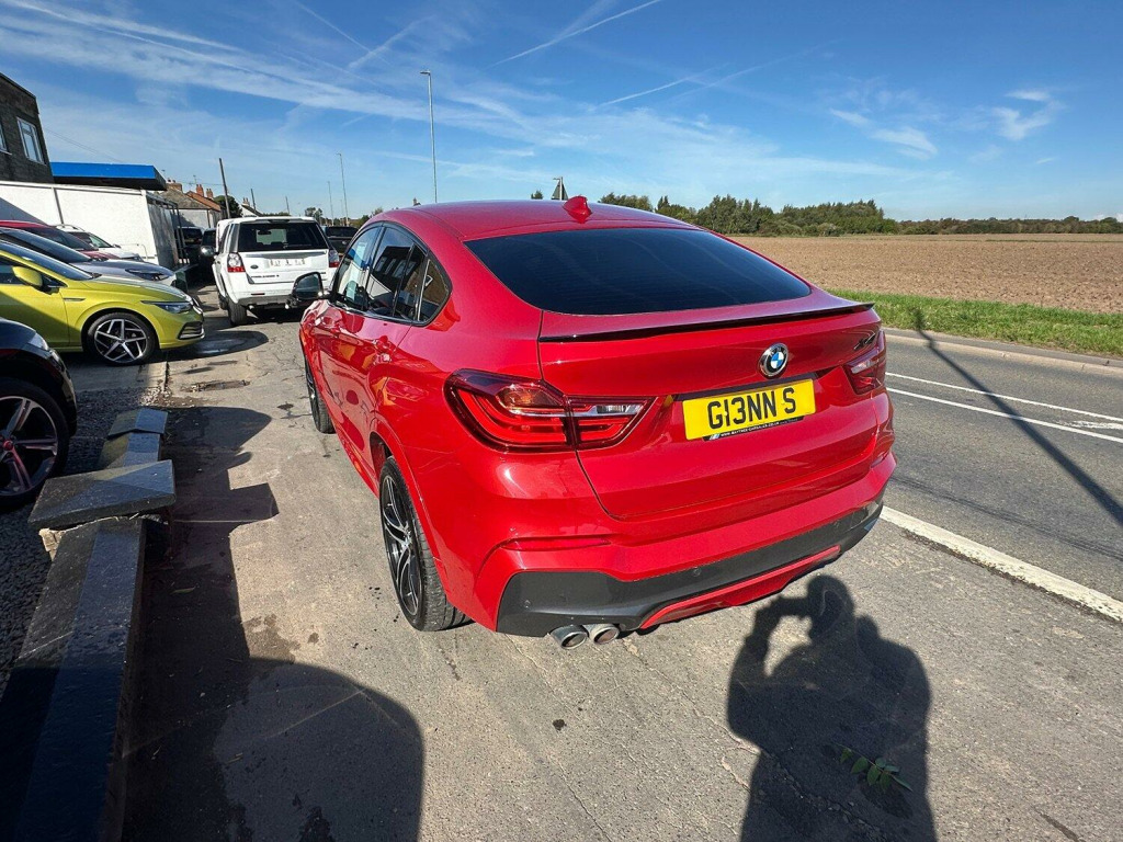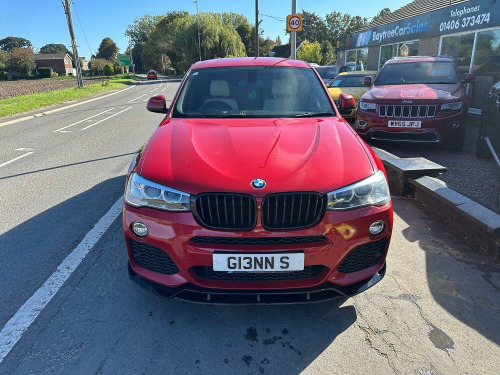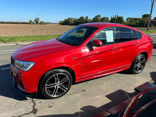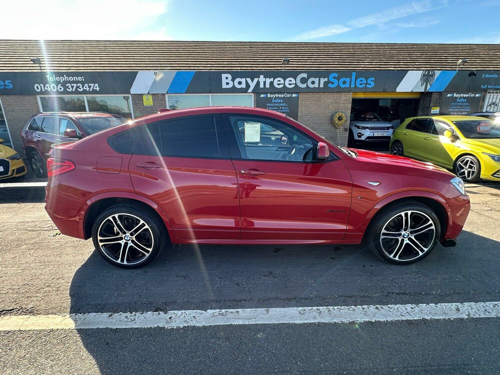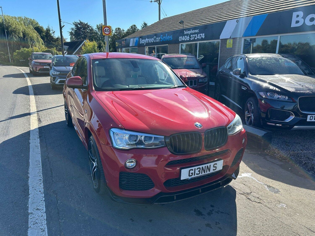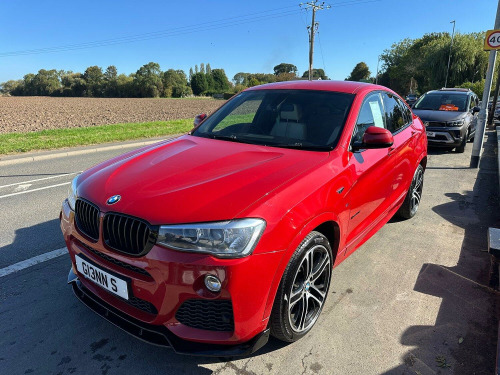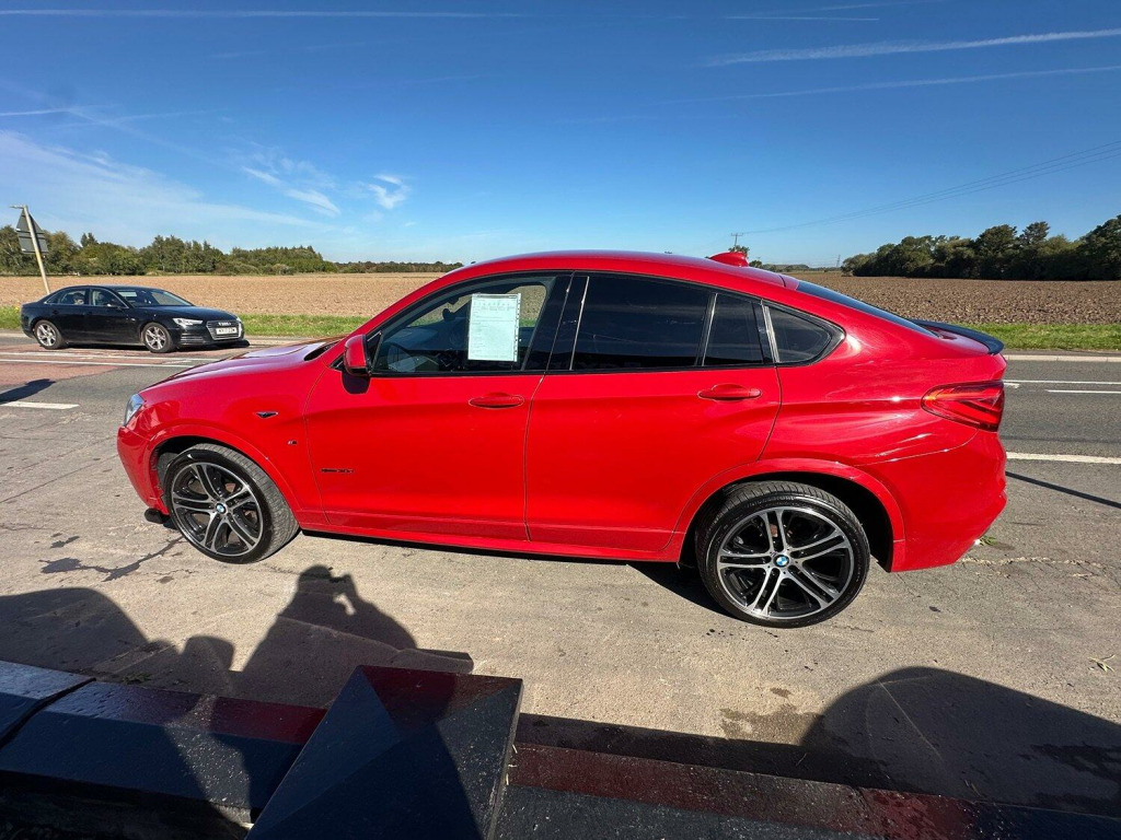 BMW X4 3.0 xDrive30d M Sport, Finished in rare Melborne Red (Auto) | 97,000 miles | Only 2 previous owners | Full BMW Service History, , Only £13,295, , A striking BMW X4 finished in red, complete with full BMW service history and the desirable M Sport package. This car has been exceptionally well maintained all main dealer BMW history , , Brand new Pirelli tyres all round , Newish disc and pads all round , recently re furbished wheels , , comes with a huge list of features and factory options. , Key features and specification:, , ???? Full M Sport package including:, • M leather steering wheel (S710), • M Aerodynamics package (S715), • M Sports package (S337), . Electric tail gate , . Front and rear parking sensors , , ???? Interior & comfort:, , • Full white heated leather sports seats, • Automatic air conditioning (S534), • Cruise control with brake function (S544), • Rain sensor (S521), • Sports suspension settings (S226), , ???? Audio & technology:, , • Navigation system Professional (S609), • DAB tuner (S654), • Harman/Kardon surround sound system (S688), • High-beam assistant (S5AC), • Adaptive headlights (S524), , ???? Exterior, , • Park Distance Control (PDC) (S508), • 20 LA M Sport alloy wheels, • Privacy glass, , With its powerful 3.0-litre engine, xDrive all-wheel drive system, and sporty design, this X4 delivers an outstanding combination of performance, practicality, and luxury. , , Because we are a RAC-approved dealer, this vehicle includes:, ✔ Free RAC breakdown cover, ✔ Free RAC history check, ✔ 12 months MOT, ✔ Full pre-delivery service, , Nationwide delivery is available. Call 01406 373474 for more information (even out of hours). Please also feel free to contact us outside of hours to discuss this vehicle further.