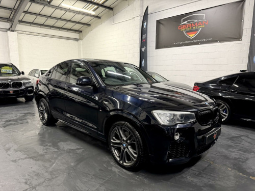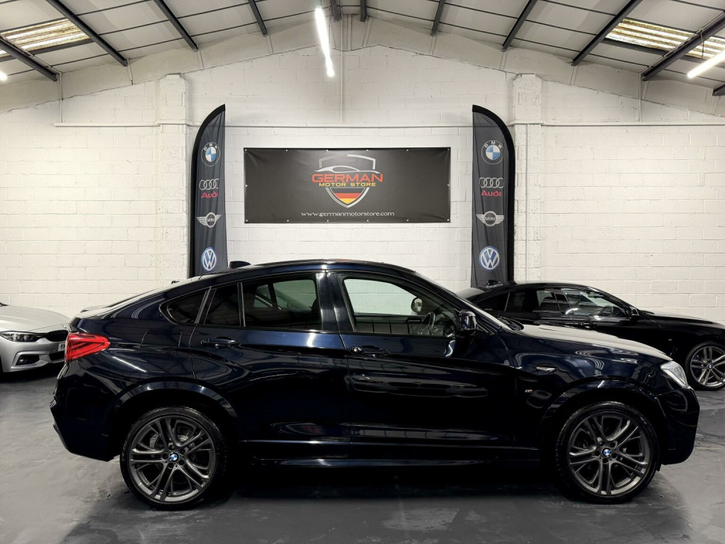 German Motor Store are proud to offer this stunning 2016 BMW X4 30d M Sport Auto to market. Finished in Carbon black with matching black leather, this particular example is in stunning condition both inside and out. It arrives to us with a full service history, a total of 6 stamps & will leave us with a fresh 12 month MOT. This M Sport model hosts many extras, nearly £10k of options including... Professional media navigation with head up display, adaptive headlights with high beam assist, heated leather seats, upgrade 20'' alloy wheels, sun protection glass, folding mirrors, front + rear parking sensors, reverse camera, electric glass roof, enhanced Bluetooth, Harman Kardon upgrade sound, DAB Radio, & electric tailgate. Very economical to run and maintain and is also Euro 6 compliant. This is probably the best one on available to buy today, so don't miss out on this incredible opportunity! See what other customers are saying by visiting our google reviews.Viewing By Appointment Only!German Motor Store Limited is a family operated business specializing in quality used German Cars with over 30 years experience in the industry! All vehicles come with a 14 day money back guarantee when purchased on line. All cars also come with an in house comprehensive warranty, that can be extended to 12 month, 24 or even 36 months, please ask for quote. We offer nationwide delivery meaning you can buy with ease and with trust. Customer service is at the core of what we do, we are highly rated on both Auto trader and Google so please be sure to read our r. 19in Alloy Wheels - Light M Double-Spoke Style 622M, Air Conditioning - Automatic - Dual Zone, Airbags, Alarm System - Thatcham 1 with Remote Control and Engine Immobiliser, Aluminium Effect, Ambient Lighting, Anti Roll Bars - Front and Rear, Armrest - Front with Storage Compartment, Armrest - Rear Centre, Automatically Dimming Rear View Mirror, Auxiliary Input Point for Auxiliary Playing Devices, B Pillar - Black Mat, Bluetooth Hands Free with USB Audio Interface, BMW ConnectedDrive Online Services, BMW Emergency Call, BMW Navigation System, BMW TeleServices, Brake Force Display, Central Locking for Doors Boot and Fuel Flap Activated via Remote Key or Cabin Switch, Child Locking System - Rear Doors, Child Seat ISOFIX Attachment - Rear, Courtesy Lights - Front and Rear with Soft On-Off Dimming, Cruise Control with Brake Function, Cup Holders - Centre Console with Roll Cover, DAB Digital Radio, Deformation Zones - Front and Rear, Door Handles - Body Colour, Door Sill Finishers - M Designation, Door Sill Finishers - xLine Designation, Drive Performance Control - ECO PRO - Comfort - Sport - Sport Plus, DSC - Dynamic Stability Control with Extended Contents, Electric Windows - Open and Close Fingertip Control, Electro Mechanical Parking Brake, Embellishers for Instrument Panel - Black High-Gloss, Exhaust - Dual with Chrome Finisher, Exterior Mirrors in Body Colour, Exterior Trim - High-Gloss Shadowline, Exterior Trim - High-Gloss Shadowline, Exterior Trim - Satin Aluminium, First Aid Kit and Warning Triangle, Floor Mats - Velour, Follow Me Home Headlight Function, Footwell Lights - Front, Glove Compartment - Illuminated, Grab Handles with Coat Hooks, HDC - Hill Descent Control, Head Restraints - Front and Rear, Headlights - Height Adjustment, Headlights - Washer System, Headlining - Anthracite, Heated Windscreen Washer Jets, High Level Third Brake Light, Incorrect Fuelling Protection System, Interior Trim - Brushed Aluminium, Kidney Grille - Chrome with Satin Aluminium Vertical Slats, LED Fog Lights - Front, Luggage Compartment - Illuminated with Four Lashing Eyes in Boot Floor, Luggage Compartment - Retractable and Removeable Cover, M Aerodynamic Bodystyling, M Leather Steering Wheel with Gearshift Paddles, M Sport Package, Model Designation, OBC - On-Board Computer, PDC - Park Distance Control - Front and Rear, Power sockets - 12V in Front Centre Console and 12V in Luggage Compartment, Power Steering - Electric, Rain Sensor with Automatic Headlight Activation, Reading Lights - Front and Rear, Run Flat Tyres, Seat Belts - Front Inertia Reel with Pyrotechnical Belt Latch Tensioner and Belt Force Limiter, Seat Heating - Front, Seats - Front - Manual Height Adjustment, Seats - Front Sports, Servotronic Steering, Side Impact Protection, Split Folding Rear Seat - 40-20-40, Sport Automatic Transmission, Start-Stop Button with Keyless Operation, Steering Column with Manual Reach and Rake Adjustment, Storage Pockets in both Front Doors, Storage Trays in Centre Console, Sun Visors with Illuminated Vanity Mirrors and Ticket Pocket, Suspension - Sport, Tailgate Operation - Automatic, Through-Loading System, TPMS - Tyre Pressure Monitoring System, Twin Horns, Variable Sport Steering, Vehicle Key with Insert in Pearl Chrome, Wheels - Locking Wheel Nuts, X Embossing on Head Restraint and Application in the Backrest, Xenon Headlights, 20in Alloy Wheels - Light M Double-Spoke Style 310M, Adaptive Headlights, Carbon Black, Enhanced Bluetooth Telephone Preparation with USB Audio Interface and Voice Control, Exterior Mirrors - Automatically Dimming - Folding, Glass Sunroof, Head-Up Display, High-Beam Assistant, Loudspeaker System - Harman Kardon, M Sport Plus Package, Media Package - BMW Professional Plus, Nevada Leather - Black with Black Interior, Reversing Assist Camera, Sun Protection Glazing. Full service history