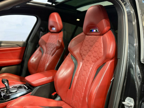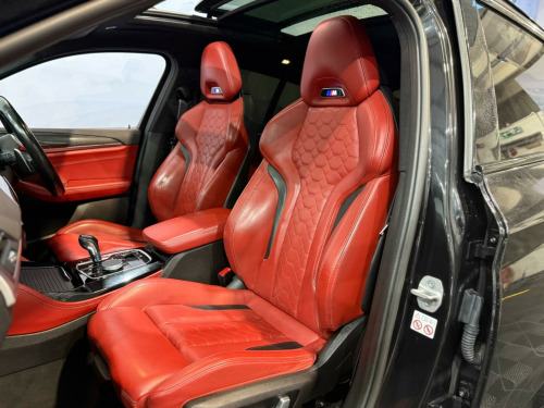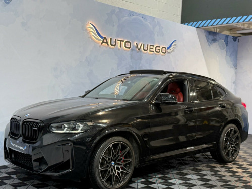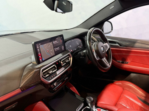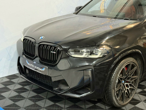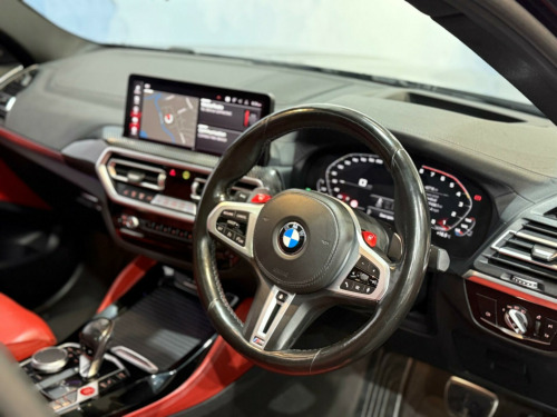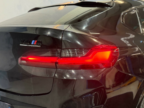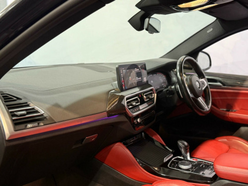 This 2022 BMW X4 M i Competition is a remarkable example of performance and luxury, boasting a powerful 3.0 litre petrol engine and a sophisticated four wheel drive system. As a Euro 6 compliant vehicle, it meets stringent emission standards. This model features a striking black Shadow Line high gloss finish on its roof rails, complemented by a panoramic glass sunroof that opens up the cabin. For convenience and comfort, it includes front and rear parking distance control, ensuring effortless manoeuvring, and heated seats for both front and rear occupants, along with a heated steering wheel for those colder journeys. The spacious boot offers ample room for all your luggage and gear.Experience exhilarating performance with the X4 M i Competition, capable of accelerating from 0 to 62 miles per hour in a swift 3.8 seconds, a testament to its dynamic capabilities. This impressive acceleration highlights how this vehicle outperforms many others in its class. Furthermore, its robust towing weight of 2400 kg makes it a versatile choice for those who need to tow trailers or caravans, adding another layer of practicality to its sporty appeal. noramic glass sunroof, roof rails - shadow line high gloss - black, m compound brakes with red high gloss, extended merino leather - sakhir orange, 12v power socket in front centre console, 21in alloy wheels - m double spoke - bi-colour - jet black, acoustic glazing, active guard, active protection, adaptive m suspension, additional storage compartment, air conditioning - automatic, airbags, alarm system - thatcham 1 with remote control and engine immobiliser, ambient lighting, armrest - front with storage compartment, armrest - rear centre with two cupholders, attentiveness assistant, bmw connected package professional, bmw connecteddrive online services, bmw emergency call, bmw gesture control, bmw icon adaptive led headlights, bmw individual lights - shadowline, bmw live cockpit professional, bmw mobility system, bmw teleservices, battery safety cut off, bottle holders integrated into door trim storage compartments - front - up to 1 litre - rear - up to 750ml, brake pad wear indicator - front and rear, bumper system front and rear - replaceable deformation elements for impacts up to 9mph, central locking switch for all doors - fuel filler cap - luggage compartment, check control warning system for monitoring of lights and door-luggage compartment open warning, child proof locking system - rear doors, child seat isofix attachment - rear, comfort access, condition based service, control display - 12.3in colour display, crash sensor, cruise control with brake and speed limiting function, cup holders - front - two, dab digital radio, dsc - dynamic stability control - stabilises the vehicle in extreme situations - controls traction, digital cockpit, direction indicator - side repeaters - integrated in exterior mirrors, door sill finishers - front - high-gloss black front with x4 m competition designation, driving assistant, dynamic brake lights, eps - electric power steering, electric front seat adjustment with memory, electric windows - front and rear with open-close fingertip control - anti-trap facility and comfort closing function, electro mechanical parking brake, exterior air inlets - mirror caps and air breather in high gloss black, exterior b pillar - black, exterior mirrors - electrically folding with anti dazzle, exterior parts in body colour, exterior trim - high-gloss shadowline, first aid kit and warning triangle, floor mats - velour, front m sport seats, grab handles - integrated in roof lining x4, head-up display, headlining - anthracite, heat protection glazing with green tint, high level third brake light using led technology, high-beam assistant, incorrect fuelling protection system, interior lighting - front centre over interior mirror with soft-light - rear centre and front and rear footwell, interior rear-view mirror with automatic anti-dazzle function, interior trim - carbon fibre, led tail lights, lights-on warning by audio warning signal when ignition is switched off, loudspeaker system - harman kardon, luggage compartment - light, luggage compartment storage, lumbar support - driver and front passenger, m brakes with blue calipers, m competition bodystyling, m double slats kidney grille in high gloss black with black slats, m exhaust tailpipes - quad - round - split left and right with high gloss black finisher, m gear knob, m leather steering wheel, m sport differential, m sport exhaust system, obc - on-board computer, oil sensor for level and grade - warning by check control system, pdc - park distance control - front and rear, parking assistant, passive protection for pedestrians, performance control, personal profile, rain sensor with automatic headlight activation, rear seat headrests - three, remote control including integrated key - 2, reversing assist camera, seat heating - front and rear, sensatec dashboard, shark fin - antenna, side armrests - front and rear integrated into door trim, split folding rear seat - 40-20-40, start-stop button with comfort go keyless engine start and auto start-stop deactivation button, steering column with manual reach and rake adjustment, steering wheel - heated, steering wheel - paddle shift, storage compartment - rear centre console and front-rear door trim, sun protection glass, sun visors with vanity mirrors and ticket holder, tpms - tyre pressure monitoring system, tailgate operation - automatic, three-point seat belts - all seats, toolkit located in luggage compartment, twin horns, visible vin, welcome light, windscreen washer jets - heated, windscreen wipers with adjustable intervals, idrive controller - 8 favourite buttons