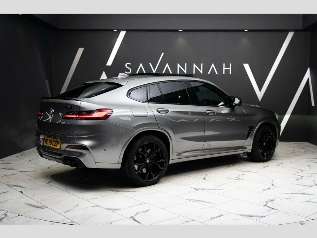 This car is a breathtaking BMW X4 M Competition, finished in the sophisticated Donington Grey — a colour that perfectly complements its aggressive coupe-SUV silhouette. Under the bonnet lies BMW's phenomenal 3.0-litre TwinPower Turbo straight-six engine, producing 510 PS through the xDrive all-wheel drive system and 8-speed M Steptronic transmission, delivering blistering performance and razor-sharp handling. Every drive is enhanced by Adaptive M Suspension, M Sport Differential, and M Compound Brakes, ensuring precision and control worthy of its Motorsport badge. The exterior commands attention with 21in M Light V-Spoke Alloy Wheels, quad high-gloss black exhausts, and the signature M Competition bodystyling, while the Panoramic Glass Sunroof (£1190.00) and Sun Protection Glazing (£320.00) add both luxury and practicality. Inside, the driver-focused cabin is defined by M Sport front seats, Aluminium Carbon trim with Pearl Chrome highlights, and a Sensatec dashboard that exudes premium quality. The Harman Kardon sound system, BMW Live Cockpit Professional, and Head-Up Display combine cutting-edge technology with immersive comfort. Powerful, poised, and unmistakably BMW M — this X4 M Competition fuses track-level performance with everyday refinement, creating the ultimate high-performance SUV for those who demand excitement in every journey. 12V Power Socket in Front Centre Console, 21in Alloy Wheels - M Light V-Spoke Styl, Acoustic Glazing, Active Guard, Active Protection, Adaptive M Suspension, Air Conditioning - Automatic, Airbags, Alarm System - Thatcham 1 with Remote Co, Ambient Lighting, Armrest - Front with Storage Compartment, Armrest - Rear Centre with Two Cupholder, Attentiveness Assistant, BMW Connected Package Professional, BMW ConnectedDrive Online Services, BMW Emergency Call, BMW Icon Adaptive LED Headlights, BMW Live Cockpit Professional, BMW Mobility System, BMW Professional Navigation with 10.25in, BMW Professional Radio with Single CD Pl, BMW TeleServices, Battery Safety Cut Off, Bluetooth Hands-Free Facility