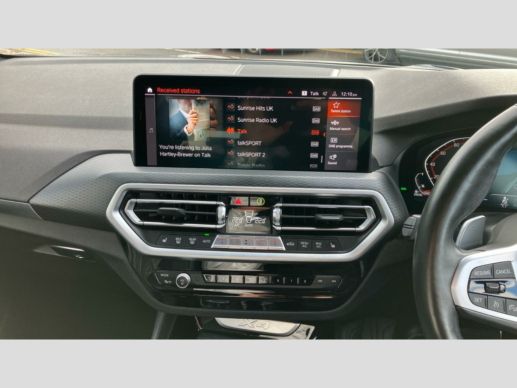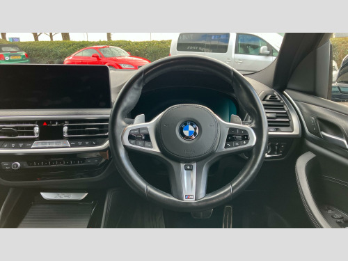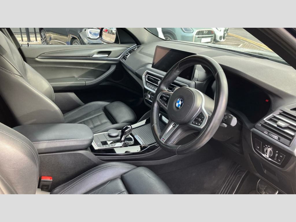 This BMW X4 stands out with its impressive fuel economy, achieving an excellent 50 miles per gallon, which is a significant advantage for running costs compared to similar vehicles. Its low CO2 emissions further contribute to its economical and environmentally conscious profile. The generous boot space provides ample practicality for everyday needs and longer trips. This vehicle also comes with 12 months of warranty and a 12 month MOT provided on purchase, offering peace of mind for its next owner. The last service was completed on 22 January 2026 at 33,612 miles, confirming its well maintained condition. 21" 726 Individual V-spoke Bicolour Orbi, Heated Steering Wheel, Run-flat Tyres, Digital Key Deletion, Comfort Access, Panoramic Glass Sunroof, Deletion lumbar support/width adjustment, Extended storage, Laserlights, Comfort Pack, Visibility Pack, Mild Hybrid Technology, Auto transmission with gearshift paddles, Acoustic glass, Alarm System, Aluminium Rhombicle with Pearl Chrome, Ambient Lighting, Ext. mirrors- folding with anti-dazzle, Rear-view Mirror with Auto dimming, Sport seats, Backrest width adjustment, Heated front seats, High-Beam Assistant, Driving Assistant, Active Guard, Parking Assistant, Automatic Air Conditioning, BMW TeleServices, BMW Emergency Call, BMW Online Services, Connected Package Pro (limited duration), Live Cockpit Professional, DAB Radio, M Sport Suspension, M Sport Exterior Styling, High-gloss Shadowline Exterior Trim, Anthracite Headlining, Active Pedestrian Safety, M Sport Package