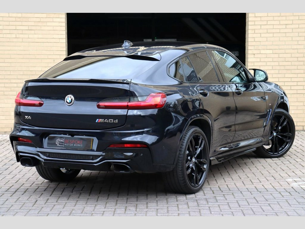 We are delighted to present this great value for money, 2019 (69 Reg) BMW X4 M40d 3.0 which is finished in Carbon Black Metallic with Black Vernasca Leather Upholstery. This is car which we sold to the previous customer so we know it very well, it has had 3 owners from new and has covered 63,000 miles. Our example boast an extensive specification which includes: 21" Gloss Black Alloys, Harman Kardon Surround Sound, Electric Front Seats with Driver Memory, M Performance Style Body Kit, Adaptive LED Headlights and Head Up Display. **Cash Price £29,995.00, £3,645.00 Deposit, 48 Monthly Payments of £449.99, Guaranteed Future Minimum Value of £12,759.88, Based on 8,000 Miles Per Annum at 9.9% APR** (a) **FOR AUTOTRADER APP USERS, PLEASE SEE THE BELOW TAB 'THIS CAR COMES WITH' TO SEE THE OTHER SPEC'S ON THIS CAR OR VISIT OUR WEBSITE FOR MORE INFO** Technology Package, M Sport Plus Package, 21" Gloss Black Alloy Wheels, Loudspeaker System - Harman Kardon, Instrument Panel in Sensatec, Enhanced Bluetooth Telephone Preparation, Sun Protection Glazing, Carbon Black, Vernasca Leather - Black with Blue Contr, M Performance Style Body Kit, Head Up Display, Electric Front Seats with Driver Memory, Electric Tailgate, Electric Folding Mirrors, Heated Front Seats, Reverse Camera with Front & Rear Sen, BMW Adaptive LED Headlights, Gesture Control, BMW Live Cockpit Professional, ParkAssist, Drive Mode Select, 3 Zone Climate Control, Satellite Navigation, Ambient Lighting, Apple CarPlay/Android Auto, M Sport Brakes with Blue Calipers, DAB R
