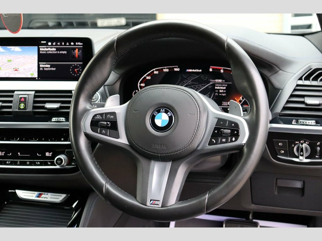 We are delighted to present this great value for money, 2019 (69 Reg) BMW X4 M40d 3.0 which is finished in Carbon Black Metallic with Black Vernasca Leather Upholstery. This is car which we sold to the previous customer so we know it very well, it has had 3 owners from new and has covered 63,000 miles. Our example boast an extensive specification which includes: 21" Gloss Black Alloys, Harman Kardon Surround Sound, Electric Front Seats with Driver Memory, M Performance Style Body Kit, Adaptive LED Headlights and Head Up Display. **Cash Price £28,250.00, £2,195.00 Deposit, 45 Monthly Payments of £449.99, Guaranteed Future Minimum Value of £13,045.06 Based on 8,000 Miles Per Annum at 9.9% APR** (a) **FOR AUTOTRADER APP USERS, PLEASE SEE THE BELOW TAB 'THIS CAR COMES WITH' TO SEE THE OTHER SPEC'S ON THIS CAR OR VISIT OUR WEBSITE FOR MORE INFO** Technology Package, M Sport Plus Package, 21" Gloss Black Alloy Wheels, Loudspeaker System - Harman Kardon, Instrument Panel in Sensatec, Enhanced Bluetooth Telephone Preparation, Sun Protection Glazing, Carbon Black, Vernasca Leather - Black with Blue Contr, M Performance Style Body Kit, Head Up Display, Electric Front Seats with Driver Memory, Electric Tailgate, Electric Folding Mirrors, Heated Front Seats, Reverse Camera with Front & Rear Sen, BMW Adaptive LED Headlights, Gesture Control, BMW Live Cockpit Professional, ParkAssist, Drive Mode Select, 3 Zone Climate Control, Satellite Navigation, Ambient Lighting, Apple CarPlay/Android Auto, M Sport Brakes with Blue Calipers, DAB R