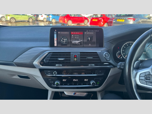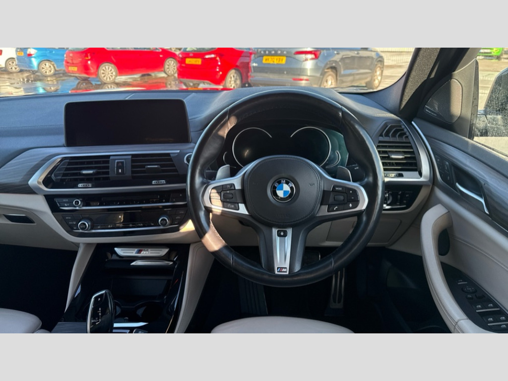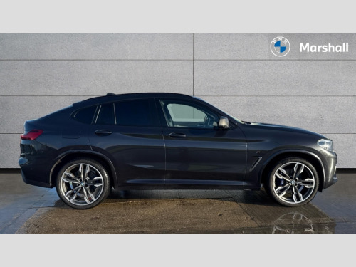 BMW X4 xDrive M40d 5dr Step Auto Active Guard incl speed limiting and lane departure functions with auto steering, and front collision warning with brake intervention, Attentiveness assist, Auto start-stop, Automatic tailgate operation, BMW Online services, BMW professional navigation with 10.25" touch display, BMW remote services, BMW Teleservices, Brake pad wear indicator in front and rear, Check Control warning system for monitoring of lights and door/luggage compartment open warning, Condition based service, Exterior temperature gauge, iDrive Controller with 8 favourite buttons, Instrument cluster with speedometer with mph readout, tachometer, fuel gauge and oil temperature gauge, Keyless ignition with push button start, Lights on warning, On board computer, Optimum shift indicator, Personal Profile, RTTI - Real time traffic information, Run flat indicator, Service interval indicator, Speed limiter, Trip computer, Variable sports power steering, Diesel particulate filter, Drive performance control with ECO PRO comfort + sport mode, M Sport differential, Performance Control, Sport automatic transmission, Bluetooth audio streaming, BMW professional radio/CD/MP3, DAB Digital radio, Body colour door handles, Body colour roof mouldings, Body coloured bumpers, Cerium grey air breather, Cerium grey air inlets, Cerium grey exterior mirror caps, Cerium grey frame and kidney grille with high gloss black vertical slats, Direction indicator side lights integrated exterior mirrors, Dynamic brake lights, Fingertip control / anti-trap function on electric window, Front and rear bumper system, Front and rear electric windows, Green tinted heat insulating glass, Heated windscreen washer jets, Height adjustable headlamps, High gloss black door sill finishers, High gloss shadow line exterior trim, Interior rear view electrochromatic mirror with automatic anti dazzle function, LED daytime running lights, LED fog lights, LED High level third brake light, LED Indicators, LED tail lights, M aerodynamic bodystyling, Rain sensor including auto headlights activation, Shark fin antenna, Twin Trapezoidal tailpipes, Visible VIN plate, Welcome light carpet, Windscreen wipers with adjustable interval, 12V socket in centre console and luggage area, 3 zone automatic air conditioning, Ambient lighting, Anthracite headlining, Bottle holders integrated into door, Centre console storage tray, Cupholders in centre console, Driver/passenger sunvisors with ticket holders + illuminated vanity mirrors, Front and rear door armrests, Front centre armrest with storage compartment, Front cupholders x 2, Front footwell lights, Front sports seats, Front/rear courtesy lights with soft on/off dimming, Front/rear reading lights, Gearshift paddles on steering wheel, Height adjustable front/rear head restraints, Isofix rear child seat preparation, Leather gear knob, Luggage area underfloor compartment, Luggage compartment lighting, M Sport multifunction leather steering wheel, Reach + rake adjustable steering column, Rear centre armrest with 2 cupholders, Removable rear parcel shelf, Storage pockets - front doors, Through loading system with 40/20/40 split folding rear seat, Toolkit located in luggage compartment, Visibility pack - X4, 3 rear 3 point seatbelts, ABS/EBD, ADB - Automatic Differential Brake, Automatic door lock when driving away, Automatic Stability Control (ASC), Battery safety cut-off, BMW emergency call, Brake drying, Brake energy regeneration, Braking pre-tensioning, Child proof locking system in rear door, Cornering brake control (CBC), Crash Sensor - activates hazard/interior lighting + unlocks doors, Driver/front passenger airbag, Driver/front passenger side airbags, DSC - Dynamic Stability Control, Dynamic brake control, Dynamic Traction Control - DTC, Electromechanical parking brake, Front and rear head airbags, Front and rear pre-tensioning and force limiting seatbelts, Front passenger airbag deactivation, Front seat belts warning, Hill descent control, Hill start assist, M Sport braking system, Side impact protection, Tyre pressure monitoring system, Ventilated front and rear disc brakes, Warning triangle and first aid kit, Central locking switch for all doors, fuel filler cap and luggage compartment, Engine immobiliser, Incorrect fuel protection system, Remote control including two integrated key - one button for open/close all lockable content, windows and separate button for open luggage compartment, Remote control Thatcham category 1 alarm, Start/stop button with comfort go keyless engine start and auto start stop deactivation button, Reduced rolling resistance tyres