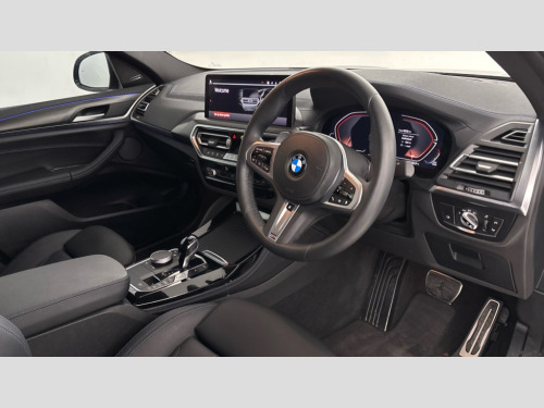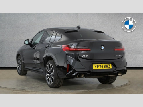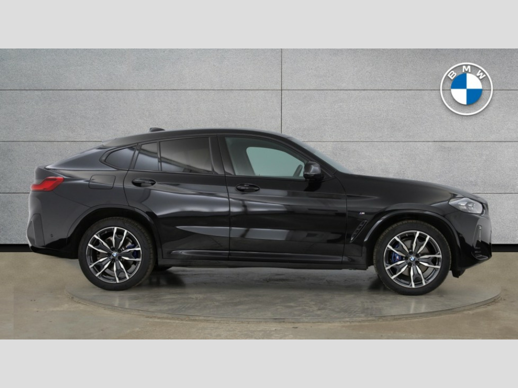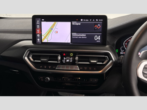 BMW X4 xDrive20d MHT M Sport 5dr Step Auto Active Guard Plus incl front collision warning with brake intervention, Attentiveness assist, Automatic operation of tailgate, BMW ConnectedDrive online services, BMW Live Cockpit Professional with 12.3" instrument display with Intelligent Voice Assistant, BMW Teleservices, Brake pad wear indicator in front and rear, Check Control warning system for monitoring of lights and door/luggage compartment open warning, Condition based service - BMW service history, electronic service booklet, integrated owner's handbook, Driving experience switch, Electric bootlid, iDrive touch controller with turn and press function, Instrument cluster with speedometer with mph readout, tachometer, fuel gauge and oil temperature gauge, Language version English, Lights on warning by audio warning signal when ignition is switched off, Oil sensor for level and grade, warning by check control system, On board computer - average speed+fuel consumption, service interval, clock/date, odometer/trip meter, outside temperature display and ice warning, Optimum shift indicator, Park distance control (PDC), Personal Profile - automatic lock when driving away selectable, Servotronic system, Variable sports power steering, Automatic transmission with gearshift paddles, Common rail technology, Diesel particulate filter, Double joint spring strut front axle, Drive performance control - ECO PRO, comfort and sport modes, EU6 emissions management, Five link rear suspension, Larger capacity fuel tank, M sport suspension, Multiple control arm rear axle, Performance Control, Twin scroll turbocharger with variable vane geometry, 2x USB Type C ports in front centre console for charging and data transfer, 2x USB Type C ports in rear centre console for charging, BMW professional radio/CD/MP3, DAB tuner, Acoustic glass, Automatic parking function on passenger's side exterior mirror, Automatic windscreen wipers and automatic headlight, Black finish on B pillars, Body colour door handles, Body colour mirror caps, Body colour roof mouldings, Body colour roof spoiler, Body coloured bumpers, Chrome exhaust tailpipes in split left and right, Chrome kidney grille with high gloss black vertical slats, Direction indicator, side repeaters, integrated in exterior mirrors, Door sill strips, Dynamic brake lights, Electric folding wing mirrors with auto dimming, Electric front and rear windows with fingertip open/close + anti-trap facility and comfort closing function, Electrically adjustable and heated door mirrors, Electro-chrome auto-dimming rear view mirror, Electrochromic driver side exterior mirror, Energy absorbing foam within the front bumper, Follow me home headlight function, Front and rear bumper system with replaceable deformation elements, Full LED L shape 3D tailights, Glacier silver metallic matt in side sills, Gloss chrome tailpipes finishers, Green tinted heat insulating glass, Headlight beam throw control, Heated windscreen washer jets, High gloss black front door sill finishers with BMW designation, High gloss shadow line exterior trim, LED High level third brake light, LED rear lights, Lightweight engineering, M designation side exterior badges, Mirror base in black matt, Model designation, Rain sensor + automatic driving lights control, Rear side wing doors, Rear wiper, Reversing lights, Shark fin antenna, Tinted passenger side exterior mirror, Visible VIN plate, Windscreen wipers with adjustable interval, 12V power socket in front centre console, 12V power socket in front storage compartment, 3 seat bench in 2nd row, 3 zone automatic air conditioning, 40/20/40 split folding rear seats with backrest, Anthracite headlining, Foldable storage floor with compartment, Front and rear bottle holders integrated into door trim storage compartments, Front and rear door exit lights, Front and rear footwell lighting, Front and rear side armrests integrated into door trim, Front centre armrest with storage compartment, Front passenger seat, Front sports seats, Front/rear reading lights, Heated front seats, Height adjustable front/rear head restraints, Leather gear knob, Lockable glove compartment, Luggage compartment lighting, M Sport multifunction leather steering wheel, Make-up mirror lights, Microfilter and active carbon filter, Parcel shelf removable and storable under boot floor, Reach + rake adjustable steering column, Rear centre armrest with 2 cupholders, Storage compartment in rear centre console and front/rear door trims, Storage compartment lighting in front center armrest, Storage tray and compartment with cover in centre console, Sunvisors with vanity mirrors and ticket pocket, Three rear headrests, Through loading system, Toolkit located in luggage compartment, Two front cupholders with removable oddments tray/lid, Velour floor mats, Visual exit area and front and rear door recognition, Welcome light (no extra light) with illumination in the colour white, Ambient lighting pack - X4, Connected package pro - X4, M Aerodynamic pack - X4, Non Smokers pack, 3 point seatbelts on all seats, ADB - Automatic Differential Brake, Anti-lock braking system (ABS) with brake assist, Automatic Stability Control (ASC), Battery safety cut-off, BMW emergency call, Brake drying, Brake energy regeneration, Braking pre-tensioning, Child proof locking system in rear door, Child seat ISOFIX attachment rear outer seats, Cornering brake control (CBC), Crash Sensor - activation of central locking release, hazard warning light and interior lighting, safety battery terminal clamp and trigger e-Call, Deactivation of fuel pump in the event of a crash, Driver and front passenger knee airbag, Driver and passenger side airbags, body protection at side and airbags deploy from seat backrests, Driver/front passenger airbag, Dynamic brake control, Dynamic stability control + (DSC+), Dynamic Traction Control - DTC, Electromechanical parking brake, Front and outer rear pyrotechnic belt tensioners, Front passenger manual airbag