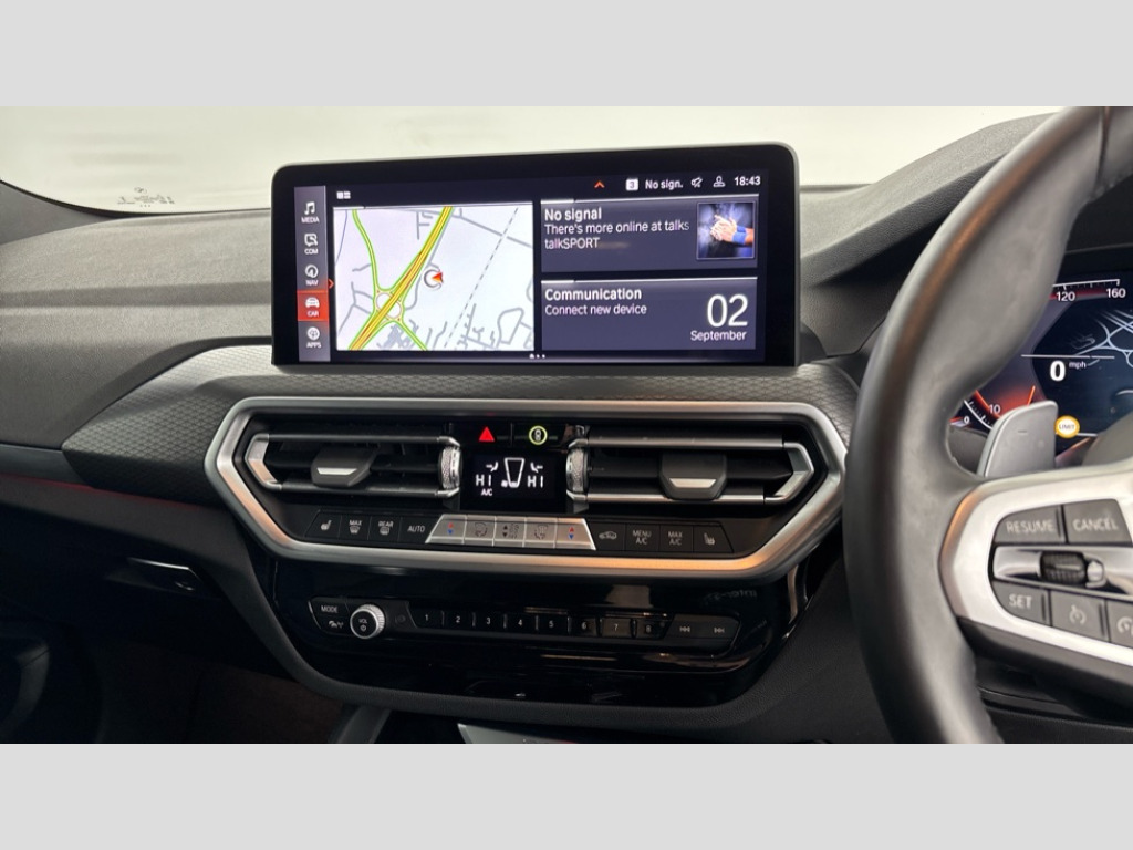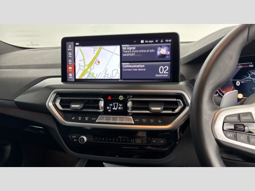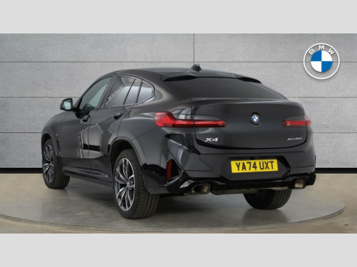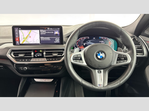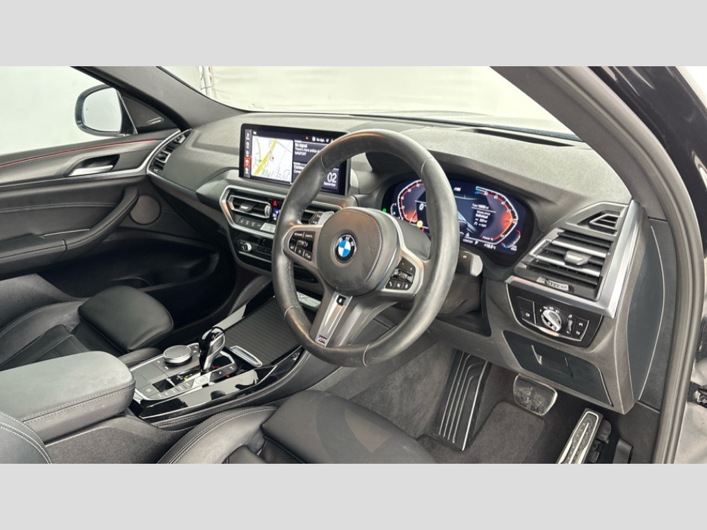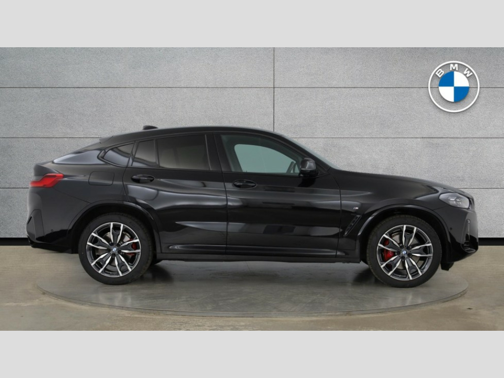 BMW X4 xDrive20d MHT M Sport 5dr Step Auto Active Guard Plus incl front collision warning with brake intervention, Attentiveness assist, Automatic operation of tailgate, Bluetooth with USB audio interface + audio streaming, BMW ConnectedDrive online services, BMW Live Cockpit Professional with 12.3" instrument display with Intelligent Voice Assistant, BMW Teleservices, Brake pad wear indicator in front and rear, Check Control warning system for monitoring of lights and door/luggage compartment open warning, Condition based service - BMW service history, electronic service booklet, integrated owner's handbook, Driving experience switch, Electric bootlid, iDrive Controller with 8 favourite buttons, Instrument cluster with speedometer with mph readout, tachometer, fuel gauge and oil temperature gauge, Lights on warning by audio warning signal when ignition is switched off, Oil sensor for level and grade, warning by check control system, On board computer - average speed+fuel consumption, service interval, clock/date, odometer/trip meter, outside temperature display and ice warning, Optimum shift indicator, Personal Profile - automatic lock when driving away selectable, Servotronic system, Variable sports power steering, Automatic transmission with gearshift paddles, Common rail technology, Diesel particulate filter, Double joint spring strut front axle, Drive performance control - ECO PRO, comfort and sport modes, EU6 emissions management, Five link rear suspension, Larger capacity fuel tank, M Adaptive suspension, Performance Control, Twin scroll turbocharger with variable vane geometry, 2x USB Type C ports in front centre console for charging and data transfer, 2x USB Type C ports in rear centre console for charging, BMW professional radio/CD/MP3, DAB tuner, Acoustic glass, Automatic parking function on passenger's side exterior mirror, Automatic windscreen wipers and automatic headlight, Black finish on B pillars, Body colour door handles, Body colour mirror caps, Body colour roof mouldings, Body colour roof spoiler, Body coloured bumpers, Chrome exhaust tailpipes in split left and right, Chrome kidney grille with high gloss black vertical slats, Direction indicator, side repeaters, integrated in exterior mirrors, Door sill strips, Dynamic brake lights, Electric folding wing mirrors with auto dimming, Electric front and rear windows with fingertip open/close + anti-trap facility and comfort closing function, Electrically adjustable and heated door mirrors, Electro-chrome auto-dimming rear view mirror, Electrochromic driver side exterior mirror, Energy absorbing foam within the front bumper, Extended high gloss shadow line exterior trim, Follow me home headlight function, Front and rear bumper system with replaceable deformation elements, Full LED L shape 3D tailights, Glacier silver metallic matt in side sills, Gloss chrome tailpipes finishers, Green tinted heat insulating glass, Headlight beam throw control, Heated windscreen washer jets, High gloss black front door sill finishers with BMW designation, LED High level third brake light, LED rear lights, Lightweight engineering, M designation side exterior badges, Mirror base in black matt, Model designation, Rain sensor + automatic driving lights control, Rear side wing doors, Rear wiper, Reversing lights, Shark fin antenna, Tinted passenger side exterior mirror, Visible VIN plate, Windscreen wipers with adjustable interval, 12V power socket in front centre console, 12V power socket in front storage compartment, 3 seat bench in 2nd row, 3 zone automatic air conditioning, 40/20/40 split folding rear seats with backrest, Anthracite headlining, Foldable storage floor with compartment, Front and rear bottle holders integrated into door trim storage compartments, Front and rear door exit lights, Front and rear footwell lighting, Front and rear side armrests integrated into door trim, Front centre armrest with storage compartment, Front passenger seat, Front sports seats, Front/rear reading lights, Heated front seats, Height adjustable front/rear head restraints, Leather gear knob, Lockable glove compartment, Luggage compartment lighting, M Sport multifunction leather steering wheel, Make-up mirror lights, Microfilter and active carbon filter, Parcel shelf removable and storable under boot floor, Reach + rake adjustable steering column, Rear centre armrest with 2 cupholders, Storage compartment in rear centre console and front/rear door trims, Storage compartment lighting in front center armrest, Storage tray and compartment with cover in centre console, Sunvisors with vanity mirrors and ticket pocket, Three rear headrests, Through loading system, Toolkit located in luggage compartment, Two front cupholders with removable oddments tray/lid, Velour floor mats, Visual exit area and front and rear door recognition, Welcome light (no extra light) with illumination in the colour white, Ambient lighting pack - X4, Connected package pro - X4, M Aerodynamic pack - X4, Non Smokers pack, 3 point seatbelts on all seats, Active protection, ADB - Automatic Differential Brake, Anti-lock braking system (ABS) with brake assist, Automatic Stability Control (ASC), Battery safety cut-off, BMW emergency call, Brake drying, Brake energy regeneration, Braking pre-tensioning, Child proof locking system in rear door, Child seat ISOFIX attachment rear outer seats, Cornering brake control (CBC), Crash Sensor - activation of central locking release, hazard warning light and interior lighting, safety battery terminal clamp and trigger e-Call, Deactivation of fuel pump in the event of a crash, Driver and front passenger knee airbag, Driver and passenger side airbags, body protection at side and airbags deploy from seat backrests, Driver/front passenger airbag, Dynamic brake control, Dynamic stability control + (DSC+), Dynamic Traction Control - DTC, Electromechanical parking brake, Front and outer rear pyrotechnic belt tensioners, Front passenger manual airbag deactivatio