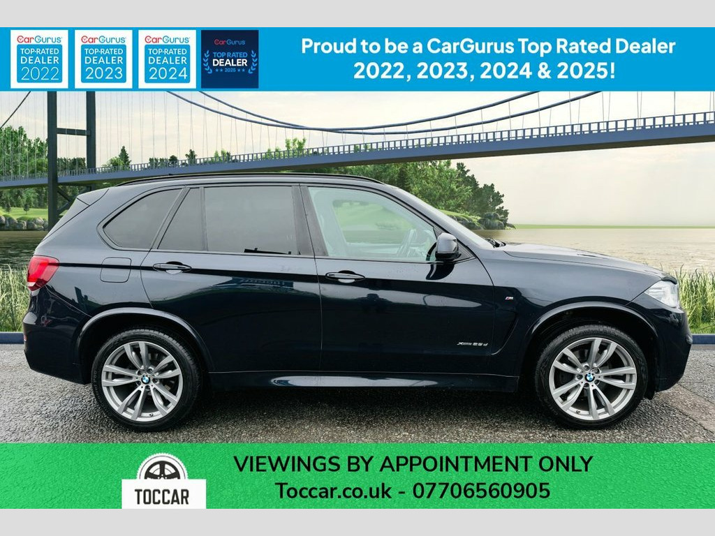 We are pleased to offer this automatic BMW X5 2.0 M Sport SUV in Carbon Black with Black leather interior. As a Euro 6 compliant model, it features a powerful yet efficient 2.0L diesel engine paired with BMW's renowned four wheel drive system, ensuring confident handling in all conditions. The M Sport trim enhances its sporty appeal, and this particular vehicle comes equipped with desirable features such as third row seating, a panoramic glass sunroof that opens for an airy cabin experience, and a heated steering wheel for added comfort during colder months. It also sits on stylish 20 inch M Double Spoke alloy wheels and benefits from a Cold Weather Package. This BMW X5 offers impressive performance, accelerating from 0 to 60 mph in just 7.7 seconds, a testament to its capability. Its fuel economy is a notable highlight, achieving up to 50 mpg, making it a more economical choice compared to many vehicles in its class. Furthermore, the generous boot space provides ample room for luggage or shopping. With a substantial towing weight of 2700 kg, this X5 is also well equipped for towing needs, offering versatility for both everyday use and more demanding tasks. We will supply this car with an MOT (no advisories) and service carried out by an approved service centre. For your peace of mind we offer Autoguard warranties to purchase. PX welcome. Viewing by appointment please. Finance available. Please see our wide selection of quality vehicles at www.toccar.co.uk 12V Power Sockets, 20GB HDD Memory, Access to BMW Connected Plus (12 Month S, Auxiliary Input Point for Auxiliary Play, Bluetooth Hands Free with USB Audio Inte, BMW ConnectedDrive Online Services, BMW ConnectedDrive Services, BMW Emergency Call, BMW Professional Radio with Single CD Pl, BMW TeleServices, DAB Digital Radio, Loudspeaker System - BMW Advanced, Navigation System - BMW Professional Mul, Power Socket - 12V in Luggage Compartmen, Power Socket - 12V in Small Folding Comp, Power Sockets - Two 12V in Centre Consol, Real Time Traffic Information, Remote Services, 20in Alloy Wheels - Light M Double Spoke, Direction Indicator - Side Repeaters - I, Door Handles - Body Colour, Door Mirror