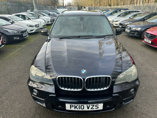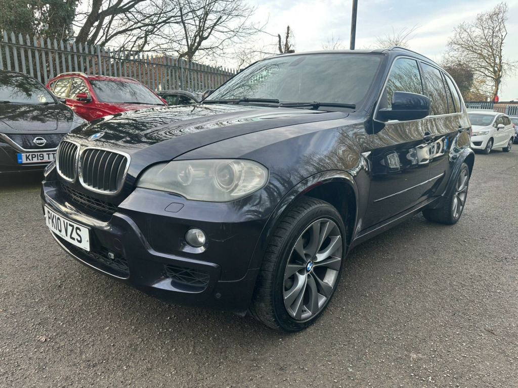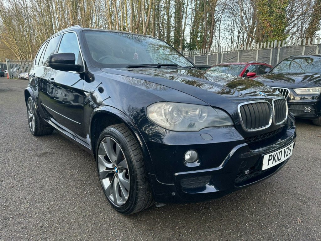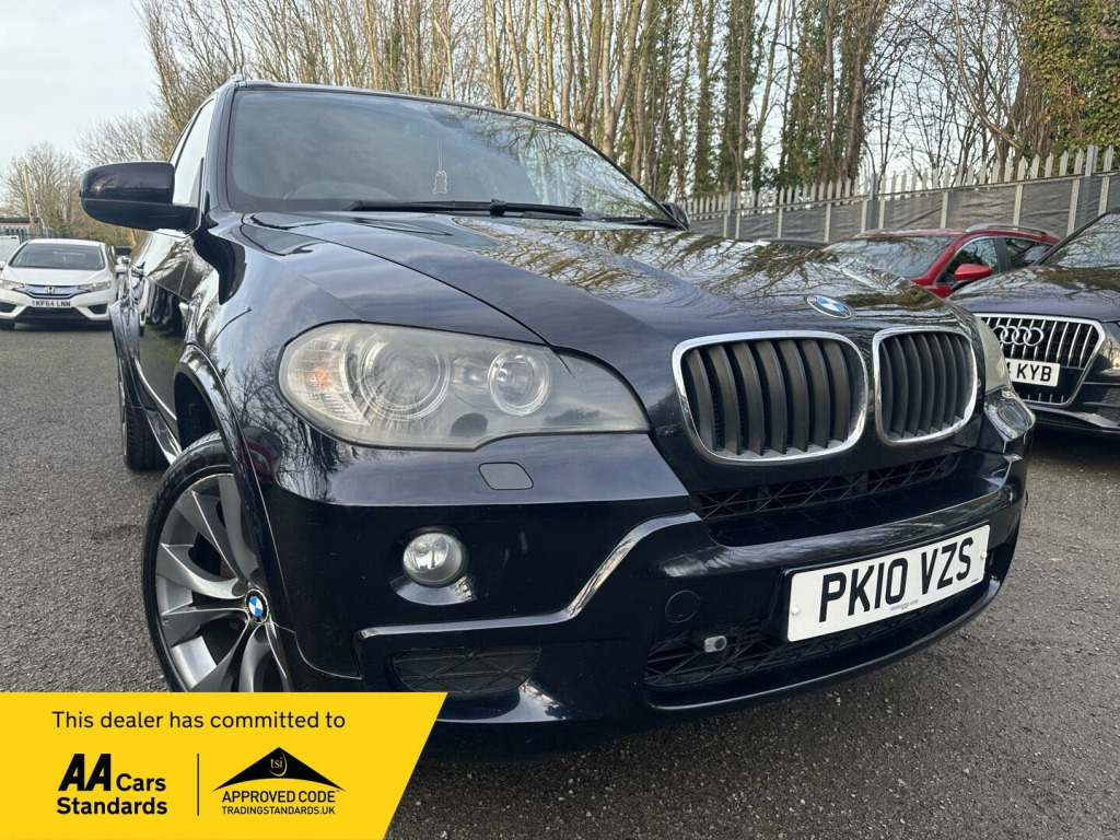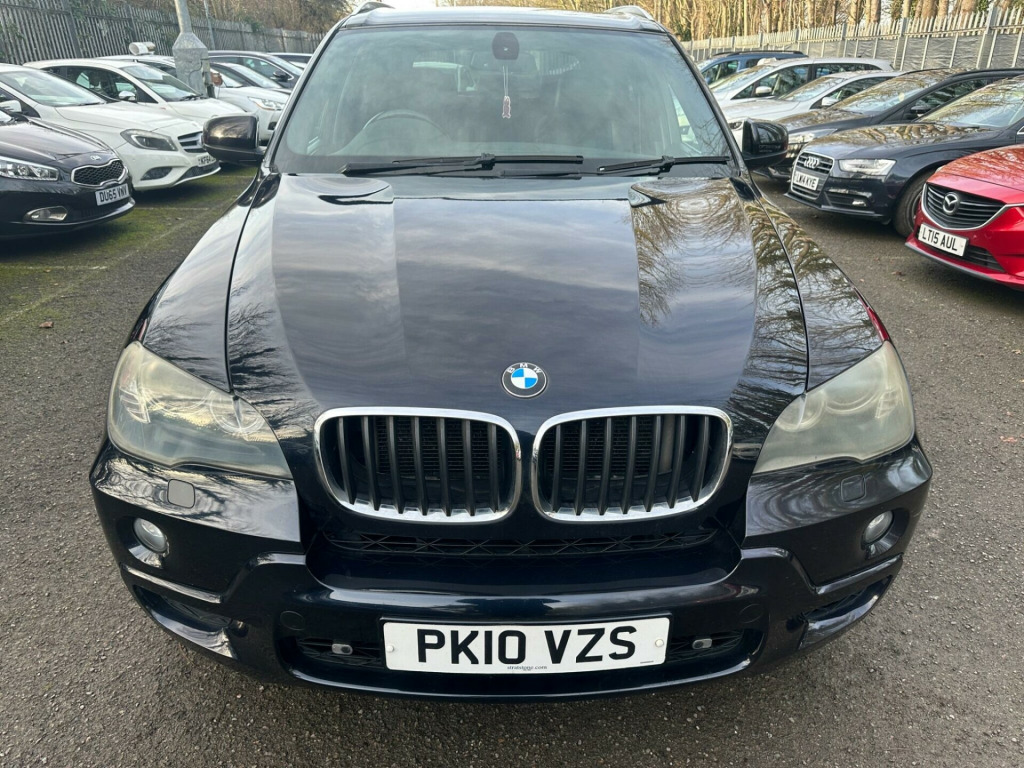 BLACK, SERVICE HISTORY, FINANCE AVAILABLE, NAVIGATION SYSTEM, PARKING CAMERA, PARKING SENSORS, LEATHER AND HEATED SEATS, SPARE KEYS, PRIVACY GLASS, SUPERB DRIVE, VERY ECONOMICAL, ALLOY WHEELS, CLIMATE CONTROL, VERY WELL LOOKED AFTERThis 2010 BMW X5 30d M Sport boasts a clear vehicle history check, offering you peace of mind with your purchase. This impressive four wheel drive model is powered by a robust 3.0L diesel engine and features the desirable M Sport trim. For added convenience, it includes a Reversing Assist camera with top view, auto upper tailgate release, USB and audio interface, sun protection glass, and a voice control system.The X5 30d M Sport stands out with its remarkable acceleration, achieving 0 to 60mph in just 4.7 seconds, demonstrating its superior performance compared to similar vehicles. Its substantial 3500 kg towing weight makes it highly capable, while the generous boot space ensures practicality for all your needs. Furthermore, this model benefits from a low insurance group, making it an economical choice. A 12 month MOT will be provided on purchase, ensuring its roadworthiness.. 19in V Spoke Alloy Wheels- Style 223M, 6 Speaker Loudspeaker System, Auto dimming Rear view mirror, Automatic Air Conditioning, BMW ConnectedDrive- Assist, BMW ConnectedDrive- Online, Brushed Aluminium Interior Trim, Central Locking - Remote, Dark Bamboo Wood Trim, Dark Walnut Wood Interior Trim, Delete Sports suspension, Electric Front Seats & Driver Memory, Front Sports Seats, Heating & ventilation for third row Seats, High gloss shadow line, High gloss shadow line RoofRails, Light Poplar Wood Trim, M Sport Package, Matt Aluminium RoofRails, Matt Aluminium window surrounds, Model designation deletion, Sports suspension, Professional Multimedia SatNav, SatNav Professional, 20in V Spoke Alloy Wheels- Style 227M, Reversing Assist camera with top view, Auto upper tailgate release, Voice Control System, MP3 compatible 6CD Changer - glovebox, Heated Front Seats, Sun protection Glass, Automatic dimming & folding door mirrors & Interior mirror, USB & Audio interface, Leather- Nevada- Black.