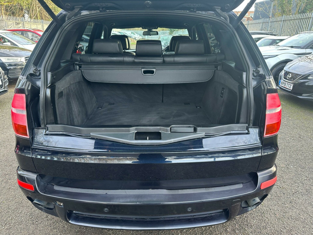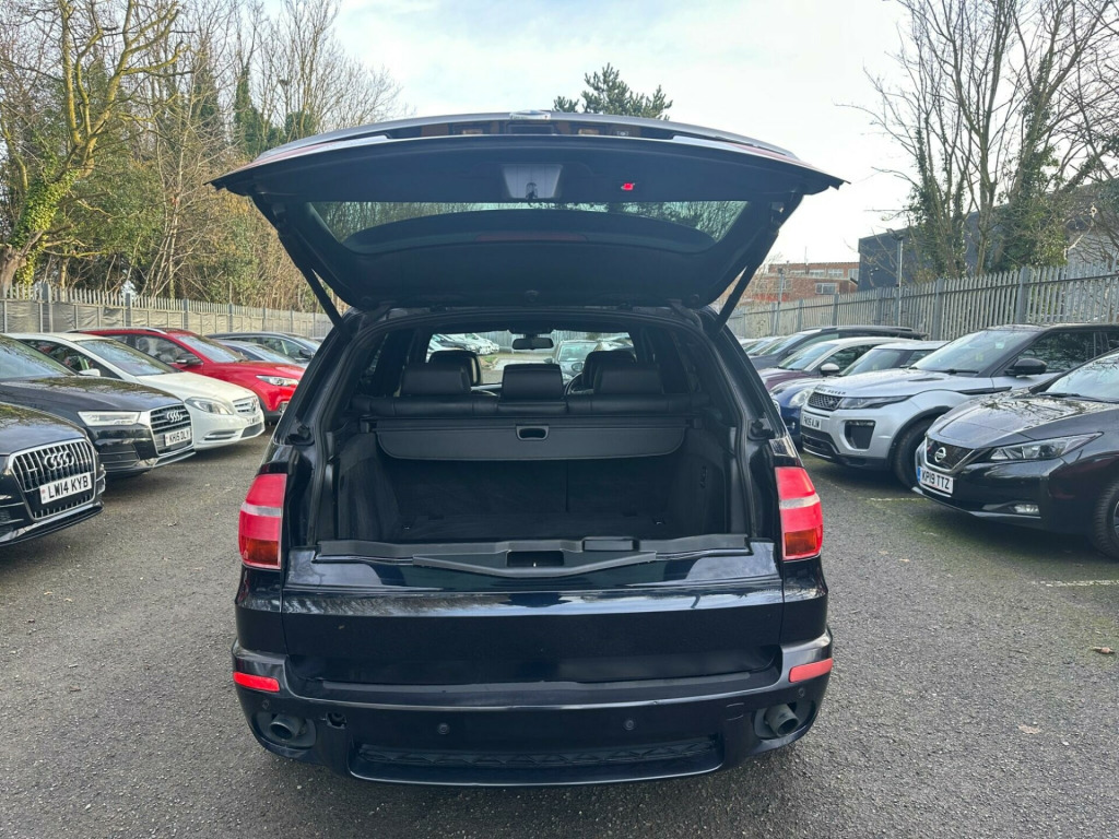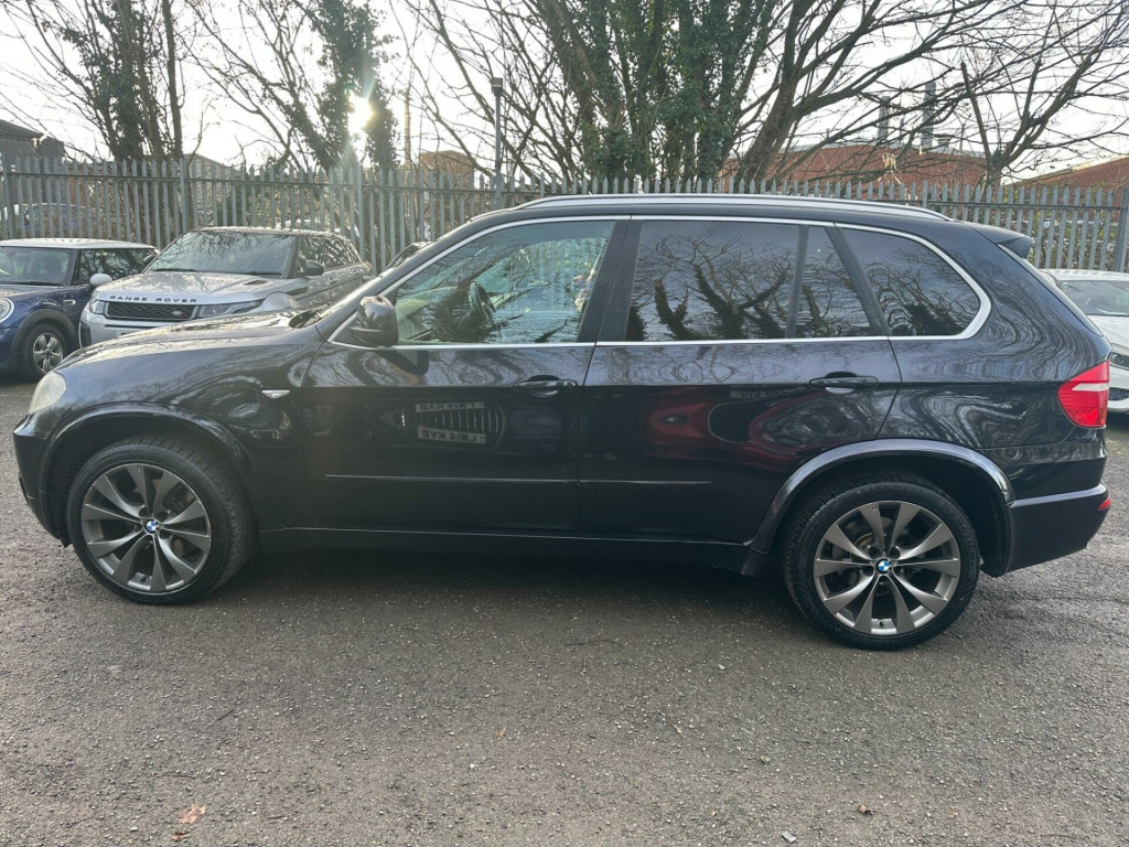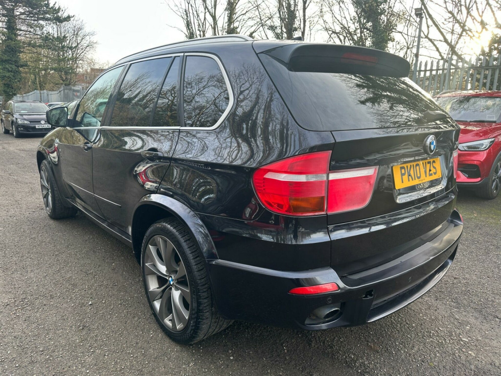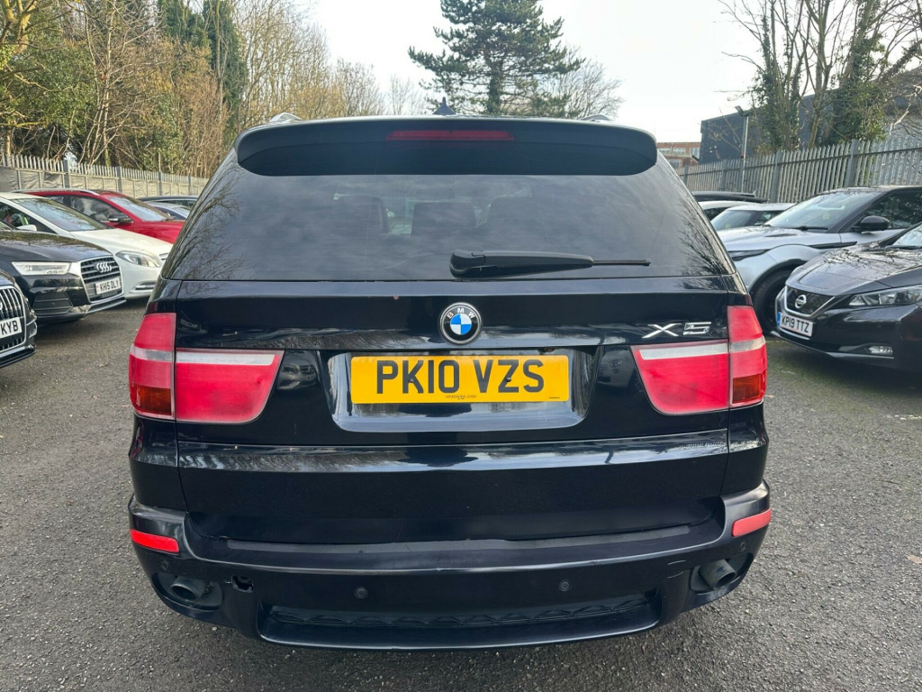 BLACK, SERVICE HISTORY, FINANCE AVAILABLE, NAVIGATION SYSTEM, PARKING CAMERA, PARKING SENSORS, LEATHER AND HEATED SEATS, SPARE KEYS, PRIVACY GLASS, SUPERB DRIVE, VERY ECONOMICAL, ALLOY WHEELS, CLIMATE CONTROL, VERY WELL LOOKED AFTERThis 2010 BMW X5 30d M Sport boasts a clear vehicle history check, offering you peace of mind with your purchase. This impressive four wheel drive model is powered by a robust 3.0L diesel engine and features the desirable M Sport trim. For added convenience, it includes a Reversing Assist camera with top view, auto upper tailgate release, USB and audio interface, sun protection glass, and a voice control system.The X5 30d M Sport stands out with its remarkable acceleration, achieving 0 to 60mph in just 4.7 seconds, demonstrating its superior performance compared to similar vehicles. Its substantial 3500 kg towing weight makes it highly capable, while the generous boot space ensures practicality for all your needs. Furthermore, this model benefits from a low insurance group, making it an economical choice. A 12 month MOT will be provided on purchase, ensuring its roadworthiness.. 19in V Spoke Alloy Wheels- Style 223M, 6 Speaker Loudspeaker System, Auto dimming Rear view mirror, Automatic Air Conditioning, BMW ConnectedDrive- Assist, BMW ConnectedDrive- Online, Brushed Aluminium Interior Trim, Central Locking - Remote, Dark Bamboo Wood Trim, Dark Walnut Wood Interior Trim, Delete Sports suspension, Electric Front Seats & Driver Memory, Front Sports Seats, Heating & ventilation for third row Seats, High gloss shadow line, High gloss shadow line RoofRails, Light Poplar Wood Trim, M Sport Package, Matt Aluminium RoofRails, Matt Aluminium window surrounds, Model designation deletion, Sports suspension, Professional Multimedia SatNav, SatNav Professional, 20in V Spoke Alloy Wheels- Style 227M, Reversing Assist camera with top view, Auto upper tailgate release, Voice Control System, MP3 compatible 6CD Changer - glovebox, Heated Front Seats, Sun protection Glass, Automatic dimming & folding door mirrors & Interior mirror, USB & Audio interface, Leather- Nevada- Black.