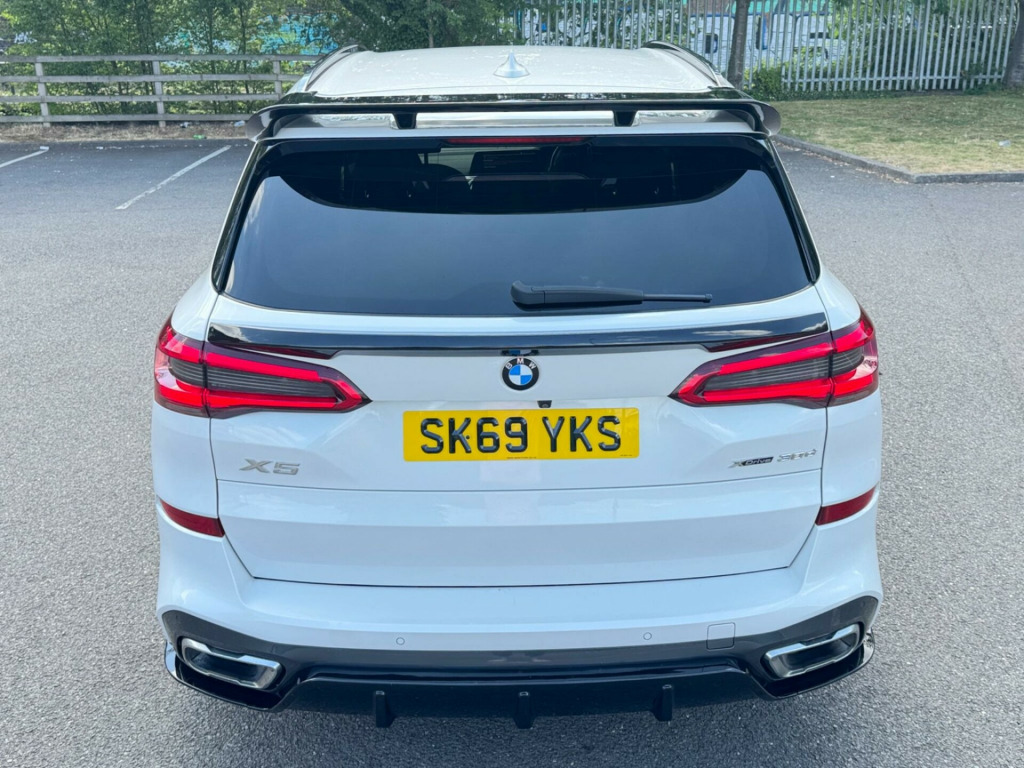 FULL BMW SERVICE HISTORY WITH PRINTED INVOICES & DATA ON iDRIVE, FULL MOT WITH VOSA HISTORY & NO ADVISORIES, HPI CLEAR WITH WARRANTED MILES, 7 SEATS, 1 OWNER FROM NEW, 2 REMOTE KEYS, KEYLESS ENTRY, COMFORT START, DIGITAL COCKPIT, AUTO LIGHTS, AUTO WIPERS, ADAPTIVE CRUISE CONTROL, FRONT & REAR LEATHER HEATED SEATS, COMFORT PACK WITH ELECTRIC ADJUSTABLE FRONT & REAR SEATS, LANE DEPARTURE WARNING WITH ASSIST, PEDESTRIAN WARNING SYSTEM,PRO SATELLITE NAVIGATION WITH TOUCH SCREEN, TOUCHPAD, WIRELESS CHARGING, GESTURE CONTROL, HEATED & COOLED CUP HOLDERS, APPLE CAR PLAY, BLUETOOTH CONNECTIVITY, AMBIENT LIGHTING, FRONT & REAR PARKING SENSORS WITH RADAR GUIDE & CAMERA, REAR WINDOW BLINDS, OPEN WITH FOOT MOVEMENT TAILGATE, ELECTRIC FOLDING MIRRORS, ADAPTIVE AIR SUSPENSION, PRIVACY GLASS, ELECTRIC TOW BAR, FULL M PERFORMANCE BODY KIT. THE X5 HAS BEEN FITTED WITH SCORPION X SERIES IMMOBILISER TRACKSTAR WHICH PROVIDES UNBEATABLE SECURITY COMBINATION TO SAFEGUARD YOUR X5.WELCOME TO M5 MOTORS BUY FROM YOUR FAMILY RUN BUSINESS WITH GENUINE 5 STAR REVIEWS ON AUTO TRADER & GOOGLE PLATFORM. WE ARE PROUD OF OUR REPUTATION AND OPERATE A NO PRESSURE SALES POLICY SO RELAX IN THE KNOWLEDGE OF OUR EXTREMLEY HELPFUL STAFF WHO ARE ON HAND TO ASSIST WITH THE PURCHASE OF YOUR NEXT VEHICLE. NO HIDDEN EXTRAS, WHAT YOU SEE IS WHAT YOU GET..IMAGES OF ACTUAL VEHICLE AND PHYSICALLY IN STOCK READY TO DRIVE AWAY.WE ARE OPEN WITH COVID SAFETY MEASURES IN PLACE, TEST DRIVES, CLICK & COLLECT, HOME DELIVERY AVAILABLE DRIVEAWAY INSURANCE AVAILABLE (terms and conditions apply) WE ARE PLEASED TO ANNOUNCE THAT WE DO NOT CHARGE ANY ADMIN FEES ALL VEHICLES CAN BE DRIVEN AWAY ON THE SAME DAY DELIVERY SERVICE AVAILABLE AT COMPETITIVE RATESALL OUR PREMIUM VEHICLES COME WITH THREE MONTHS NATIONWIDE WARRANTY WITH BREAK DOWN COVER 3 , 12 & 15 MONTHS WARRANTY ALSO AVAILABLE ALL VEHICLES UNDERGO MULTI POINT CHECK LIST BEFORE BEING APPROVED FOR SALE FINANCE AVAILABLE - ADMINISTRATION CHARGES APPLY ALL MAJOR DEBIT & CREDIT CARDS ACCEPTED PART EXCHANGE WELCOME mfort package, m sport plus package, third-row seating, 21in alloy wheels - m light y-spoke style 741 m bicolour with mixed tyres and run flat tyres, towbar - electrically folding, sun protection glazing, perforated vernasca leather - black-black, driving assistant professional, headlights - adaptive led, comfort plus package, technology package, 20gb hard disc drive hdd memory, 20in alloy wheels - m light star-spoke style 740 m bicolour with mixed tyres and run flat tyres, active air stream kidney grille, active guard plus, adaptive 2-axle air suspension, adaptive air flap control bar - high-gloss black, air conditioning - automatic with 2.5 zone control, airbags - driver - front passenger- rear and side, alarm system - thatcham 1 with remote control and engine immobiliser, ambient interior lighting, armrest - front and rear integrated into door trim, attentiveness assistant, automatically dimming rear view mirror, bmw connected package professional, bmw connecteddrive online services, bmw emergency call, bmw gesture control, bmw individual high-gloss shadowline, bmw individual roof rails high-gloss shadow line, bmw live cockpit professional, bmw teleservices, brake force display, brake system, brake-pad wear indicator, centre armrest - rear - foldable with 2 cupholders and storage compartment, centre console includes storage compartment, centre lock switch - driver and front passenger door, child seat isofix attachment - outer rear seats - includes top tether, closing system with central locking, compartment in front of cupholder, crash sensor - activating central locking release - hazard warning lights - fuel cut off - interior lighting and activation of the safety battery clamp, cruise control with brake function, cup holders - front x2 and rear x2, dab tuner, dsc - dynamic stability control - stabilises the vehicle in extreme situations - controls traction, daytime running lights - led, deformation zones - front and rear, door pockets - front and rear, door sill finishers with illuminated - bmw designation - front and rear, door sill inlays - bmw m designation illuminated, drive performance control with eco pro - comfort and sport, dynamic brake lights with led technology, eps - electric power steering with servotronic, electric windows - front and rear with open-close fingertip control - anti-trap facility and comfort closing function, electrical steering column with adjustable height and length, electro-mechanical parking brake with automatic drive-away release and auto-hold function, enhanced bluetooth telephone preparation with wireless charging, exhaust tailpipes - single - left and right - chrome, expanded exterior mirror package, exterior mirror housing - body colour, exterior mirrors - electrically adjustable - automatic parking function - heated and drivers anti-dazzle, favourite buttons, first aid kit and warning triangle, follow me home headlight function, footwell lights - front, front grille bars - pearlescent chrome, head airbags - for first and second row seats, head restraints - front anti-whiplash, headlining - anthracite, heated windscreen washer jets, hifi loudspeaker system, interior light - rear centre, interior trim - aluminium tetragon, knee airbag, led fog lights, led headlights, led rear lights, light inside glove compartment, lockable glove compartment, locking wheel bolts, luggage compartment - light, luggage compartment floor panel with integral storage tray, m aerodynamic bodystyling, m designation on front side panels - left and right, m leather steering wheel, m specific floor mats, m specific key, m specific pedals, m specific steering wheel, m sport braking system, m sport package, make-up mirror lights, mechanical childproof lock - rear doors, multi-function controls for leather steering wheel, multifunctional hooks, non smokers package, obc - on board computer, oil sensor for level and grade, outer and centre air intakes on front bumper - high-gloss