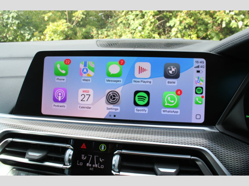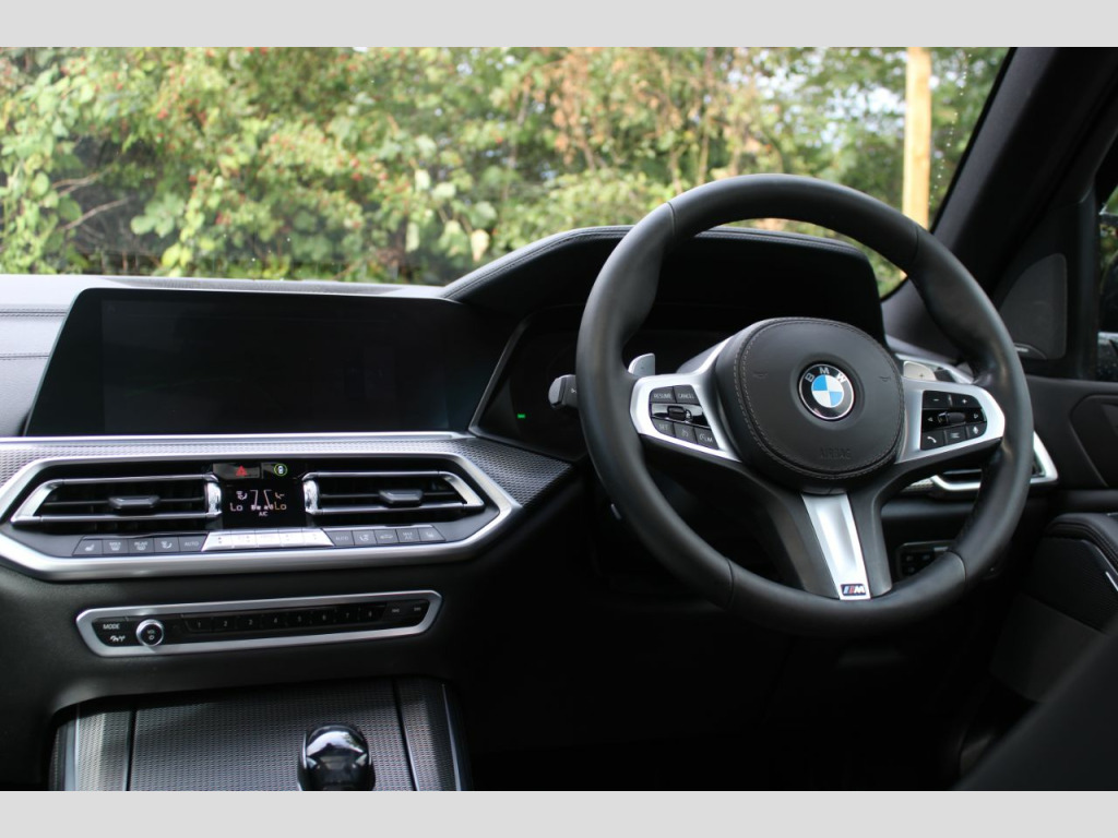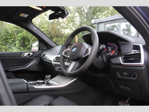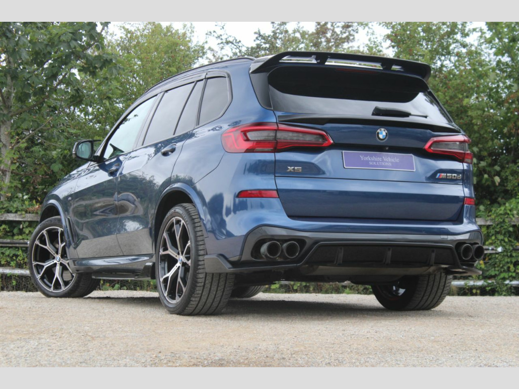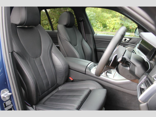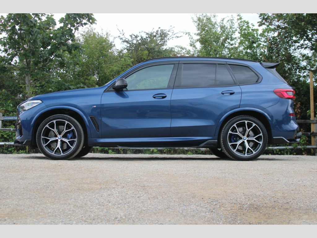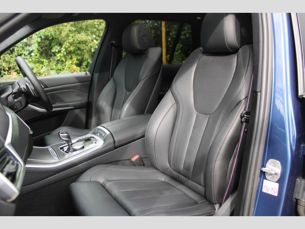 Finished in Phytonic Blue metallic with full black perforated Vernasca leather interior. Features include sky lounge panoramic glass sunroof, Technology package (parking assistant plus, head-up display, Harman Kardon sound system, driver recorder & BMW display key), M Sport Plus package (21” 741M Y spoke style alloy wheels, sun protection glazing, M seat belts & BMW Individual high-gloss shadow line with extended contents), full M Performance style exterior body kit (front splitter, side skirts, mirror caps, rear diffuser & rear spoilers), Akrapovic exhaust tips, BMW Live Cockpit Professional, Apple CarPlay and Android Auto, professional navigation, heated electric front seats with driver memory function, digital dual zone climate control with automatic air conditioning, Bluetooth connectivity with media streaming, DAB digital radio, automatic LED headlights, rain sensor, cruise control, adaptive 2-axle air suspension, speed limit display, BMW Connected Services, electric folding exterior mirrors, keyless start, interior ambient lighting, wireless phone charging, aluminium tetragon interior trim, voice control, electric tailgate, multifunctional leather steering wheel with paddleshift, automatic transmission plus much more standard specification. This highly specified X5 30d is offered in excellent condition having covered 79100 miles from new. The car comes complete with a BMW and specialist service history consisting of the following – 25/11/20 at 16276 miles, 15/10/21 at 30950 miles, 08/11/22 at 41525 miles, 06/08/23 at 50633 miles, 15/04/24 at 61094 miles and 26/02/25 at 72761 miles.