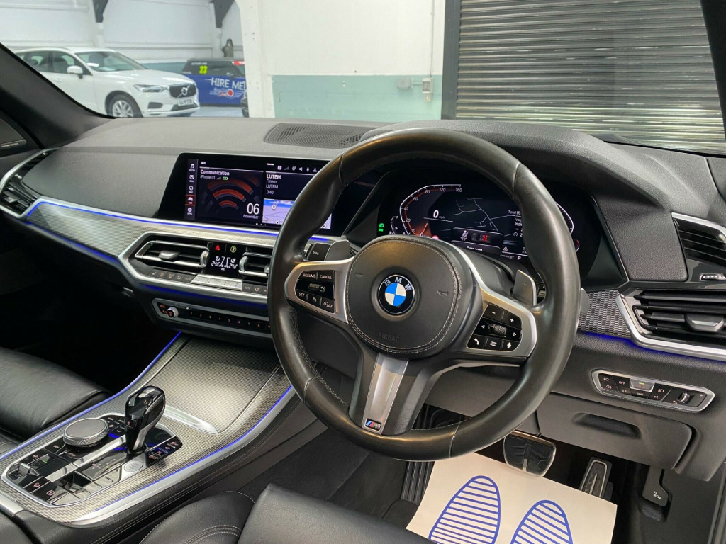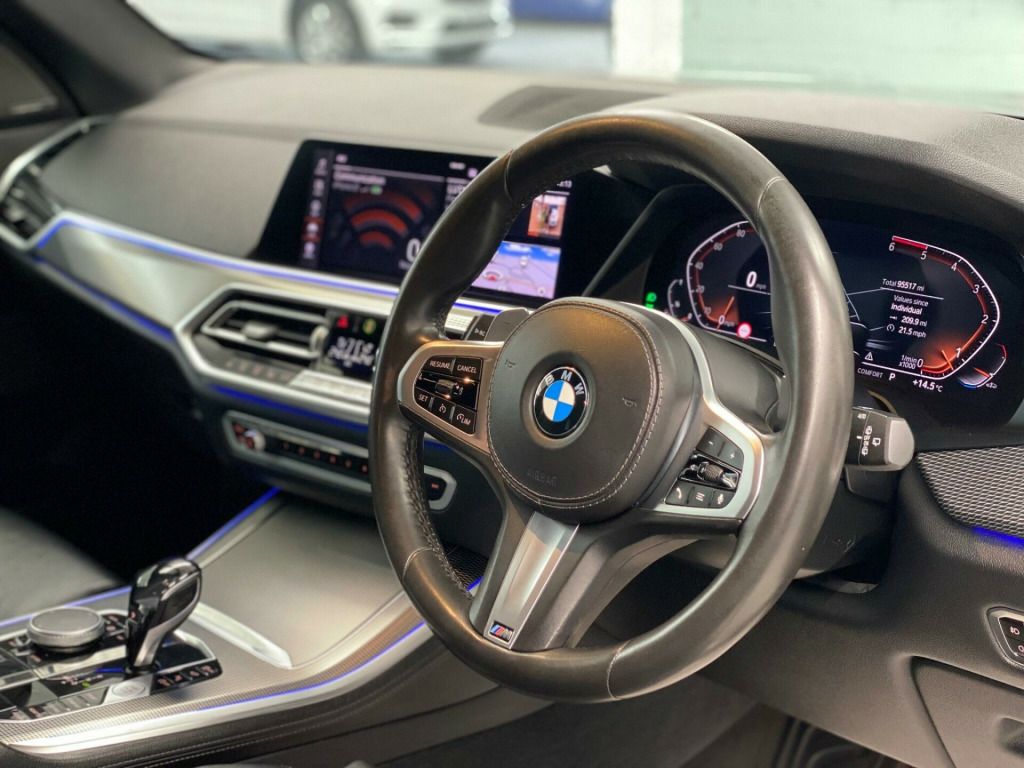 With an MOT valid until June 2026, this 2019 BMW X5 30d M Sport offers excellent long term peace of mind. This four wheel drive, Euro 6 compliant diesel SUV boasts a powerful 3.0 litre engine and comes with a 3 month warranty for added reassurance. Its vehicle history check is clear, and while it has a partial service history, the last service was completed at 95,517 miles.This X5 M Sport variant is equipped with impressive features designed for comfort and convenience. Notable additions include striking 22 inch M Light Double Spoke Style 742 M Bicolour alloy wheels with mixed tyres, and the Technology Package which encompasses a Head Up Display, a 360 degree camera system, front and rear cameras, and a premium branded sound system. For practicality, it features electrically folding towbar and the M Sport Plus Package. Inside, enjoy the convenience of Telephony with Wireless Charging, including Bluetooth connectivity. This model also benefits from a low insurance group, highlighting its cost effectiveness, and offers generous boot space for all your needs. Its impressive acceleration of 0 to 62mph in just 6.5 seconds demonstrates its dynamic performance, setting it apart from many similar vehicles., in alloy wheels - m light double-spoke style 742 m bicolour with mixed tyres, technology package, m sport plus package, towbar - electrically folding, sun protection glazing, perforated vernasca leather - black-black, 20gb hard disc drive hdd memory, 20in alloy wheels - m light star-spoke style 740 m bicolour with mixed tyres and run flat tyres, active air stream kidney grille, active guard plus, adaptive 2-axle air suspension, adaptive air flap control bar - high-gloss black, air conditioning - automatic with 2.5 zone control, airbags - driver - front passenger- rear and side, alarm system - thatcham 1 with remote control and engine immobiliser, ambient interior lighting, armrest - front and rear integrated into door trim, attentiveness assistant, automatically dimming rear view mirror, bmw connected package professional, bmw connecteddrive online services, bmw emergency call, bmw gesture control, bmw individual high-gloss shadowline, bmw individual roof rails high-gloss shadow line, bmw live cockpit professional, bmw teleservices, brake force display, brake system, brake-pad wear indicator, centre armrest - rear - foldable with 2 cupholders and storage compartment, centre console includes storage compartment, centre lock switch - driver and front passenger door, child seat isofix attachment - outer rear seats - includes top tether, closing system with central locking, compartment in front of cupholder, crash sensor - activating central locking release - hazard warning lights - fuel cut off - interior lighting and activation of the safety battery clamp, cruise control with brake function, cup holders - front x2 and rear x2, dab tuner, dsc - dynamic stability control - stabilises the vehicle in extreme situations - controls traction, daytime running lights - led, deformation zones - front and rear, door pockets - front and rear, door sill finishers with illuminated - bmw designation - front and rear, door sill inlays - bmw m designation illuminated, drive performance control with eco pro - comfort and sport, dynamic brake lights with led technology, eps - electric power steering with servotronic, electric windows - front and rear with open-close fingertip control - anti-trap facility and comfort closing function, electrical steering column with adjustable height and length, electro-mechanical parking brake with automatic drive-away release and auto-hold function, enhanced bluetooth telephone preparation with wireless charging, exhaust tailpipes - single - left and right - chrome, expanded exterior mirror package, exterior mirror housing - body colour, exterior mirrors - electrically adjustable - automatic parking function - heated and drivers anti-dazzle, favourite buttons, first aid kit and warning triangle, follow me home headlight function, footwell lights - front, front grille bars - pearlescent chrome, head airbags - for first and second row seats, head restraints - front anti-whiplash, headlining - anthracite, heated windscreen washer jets, hifi loudspeaker system, interior light - rear centre, interior trim - aluminium tetragon, knee airbag, led fog lights, led headlights, led rear lights, light inside glove compartment, lockable glove compartment, locking wheel bolts, luggage compartment - light, luggage compartment floor panel with integral storage tray, m aerodynamic bodystyling, m designation on front side panels - left and right, m leather steering wheel, m specific floor mats, m specific key, m specific pedals, m specific steering wheel, m sport braking system, m sport package, make-up mirror lights, mechanical childproof lock - rear doors, multi-function controls for leather steering wheel, multifunctional hooks, non smokers package, obc - on board computer, oil sensor for level and grade, outer and centre air intakes on front bumper - high-gloss black with pearlescent chrome finish, pdc - park distance control - front and rear, parking assistant, passenger seat airbag deactivation - front, passenger seat occupancy sensor for driver and passenger side, passive protection for pedestrians, power sockets 12v - 2x centre console - 1x luggage compartment, rain sensor with automatic headlight activation and windscreen wiper control, reading lights - front, run-flat tyres, safety battery - terminal clamp, seat adjustment - front electric with driver memory, seat back with flap pocket, seat belts front and rear - seat belt tensioner - front and outer rear seats - belt force limit, seat heating for driver and front passenger, side elements - high gloss black, side impact protection, side window graphics - satin aluminium, speed limit display, speed limiting function, split folding rear seats 40-20-40 configuration, sport automatic transmission, sport seats for driver and front passenger,