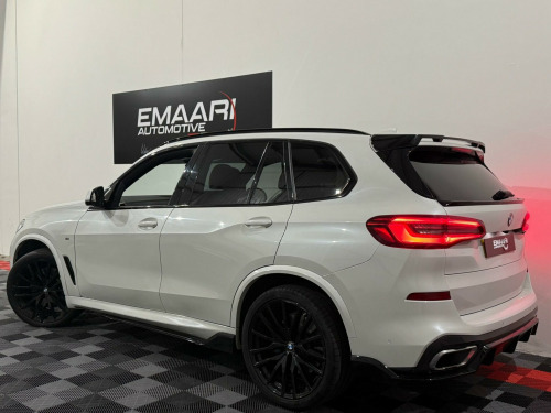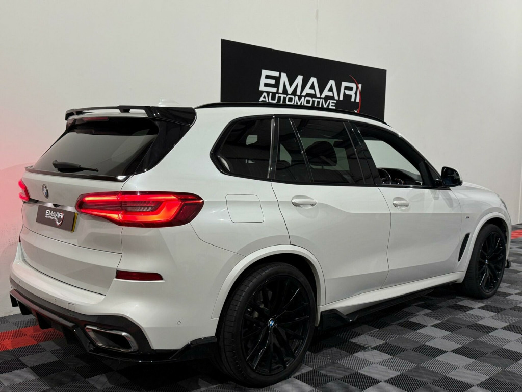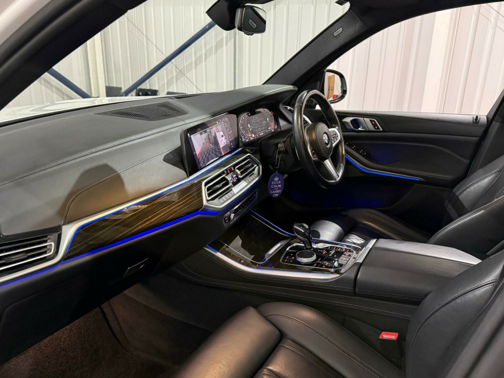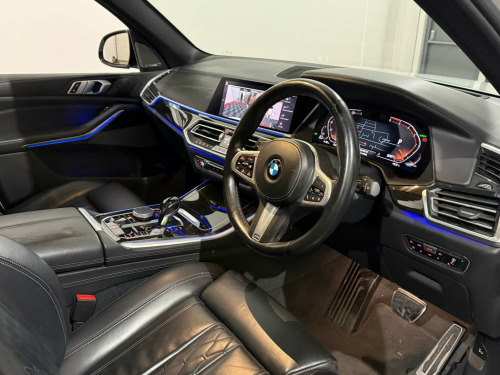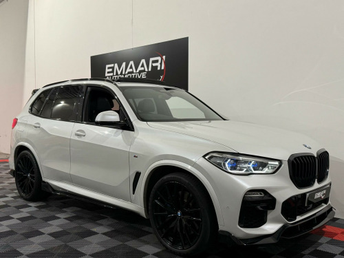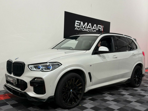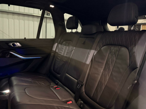 This 2018 BMW X5 30d M Sport presents an exceptional opportunity with its remarkably low mileage of just 46,000 miles for its age, complemented by a clear vehicle history check. This four wheel drive, Euro 6 compliant diesel SUV boasts a powerful 3.0 litre engine and is finished in the desirable M Sport trim. Inside, you'll find luxurious touches such as the BMW Individual Instrument Panel finished in leather and BMW Individual Extended Merino Leather in Black Black. The striking 22 inch M Light Double Spoke Style 742 M Bicolour alloy wheels with mixed tyres, along with the Sky Lounge Panoramic Glass Sunroof, add to its premium appeal.The Technology Package further enhances the driving experience, featuring a Head Up Display, a 360 degree camera system for effortless parking, and a premium branded sound system. This X5 offers impressive performance, accelerating from 0 to 62mph in a swift 6.5 seconds, indicating its superior acceleration compared to many similar vehicles. Furthermore, its large boot space provides excellent practicality for all your needs, and it benefits from a low insurance group, making it a more economical choice to own and run. y lounge panoramic glass sunroof, driving assistant professional, 22in alloy wheels - m light double-spoke style 742 m bicolour with mixed tyres, technology package, m sport plus package, visibility pack, bmw individual instrument panel finished in leather, sun protection glazing, interior trim - fine-wood trim - fineline stripe - brown high-gloss, bmw individual extended merino leather - black-black, 20gb hard disc drive hdd memory, 20in alloy wheels - m light star-spoke style 740 m bicolour with mixed tyres and run flat tyres, active air stream kidney grille, active guard plus, adaptive 2-axle air suspension, adaptive air flap control bar - high-gloss black, air conditioning - automatic with 2.5 zone control, airbags - driver - front passenger- rear and side, alarm system - thatcham 1 with remote control and engine immobiliser, ambient interior lighting, armrest - front and rear integrated into door trim, attentiveness assistant, automatically dimming rear view mirror, bmw connected package professional, bmw connecteddrive online services, bmw emergency call, bmw gesture control, bmw individual high-gloss shadowline, bmw individual roof rails high-gloss shadow line, bmw live cockpit professional, bmw teleservices, brake force display, brake system, brake-pad wear indicator, centre armrest - rear - foldable with 2 cupholders and storage compartment, centre console includes storage compartment, centre lock switch - driver and front passenger door, child seat isofix attachment - outer rear seats - includes top tether, closing system with central locking, compartment in front of cupholder, crash sensor - activating central locking release - hazard warning lights - fuel cut off - interior lighting and activation of the safety battery clamp, cruise control with brake function, cup holders - front x2 and rear x2, dab tuner, dsc - dynamic stability control - stabilises the vehicle in extreme situations - controls traction, daytime running lights - led, deformation zones - front and rear, door pockets - front and rear, door sill finishers with illuminated - bmw designation - front and rear, door sill inlays - bmw m designation illuminated, drive performance control with eco pro - comfort and sport, dynamic brake lights with led technology, eps - electric power steering with servotronic, electric windows - front and rear with open-close fingertip control - anti-trap facility and comfort closing function, electrical steering column with adjustable height and length, electro-mechanical parking brake with automatic drive-away release and auto-hold function, enhanced bluetooth telephone preparation with wireless charging, exhaust tailpipes - single - left and right - chrome, expanded exterior mirror package, exterior mirror housing - body colour, exterior mirrors - electrically adjustable - automatic parking function - heated and drivers anti-dazzle, favourite buttons, first aid kit and warning triangle, follow me home headlight function, footwell lights - front, front grille bars - pearlescent chrome, head airbags - for first and second row seats, head restraints - front anti-whiplash, headlining - anthracite, heated windscreen washer jets, hifi loudspeaker system, interior light - rear centre, interior trim - aluminium tetragon, knee airbag, led fog lights, led headlights, led rear lights, light inside glove compartment, lockable glove compartment, locking wheel bolts, luggage compartment - light, luggage compartment floor panel with integral storage tray, m aerodynamic bodystyling, m designation on front side panels - left and right, m leather steering wheel, m specific floor mats, m specific key, m specific pedals, m specific steering wheel, m sport braking system, m sport package, make-up mirror lights, mechanical childproof lock - rear doors, multi-function controls for leather steering wheel, multifunctional hooks, non smokers package, obc - on board computer, oil sensor for level and grade, outer and centre air intakes on front bumper - high-gloss black with pearlescent chrome finish, pdc - park distance control - front and rear, parking assistant, passenger seat airbag deactivation - front, passenger seat occupancy sensor for driver and passenger side, passive protection for pedestrians, power sockets 12v - 2x centre console - 1x luggage compartment, rain sensor with automatic headlight activation and windscreen wiper control, reading lights - front, run-flat tyres, safety battery - terminal clamp, seat adjustment - front electric with driver memory, seat back with flap pocket, seat belts front and rear - seat belt tensioner - front and outer rear seats - belt force limit, seat heating for driver and front passenger, side elements - high gloss black, side impact protection, side window graphics - satin aluminium, speed limit display, speed limit