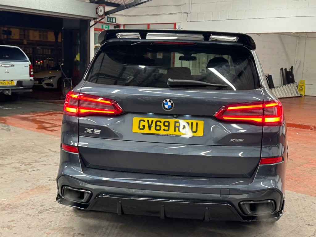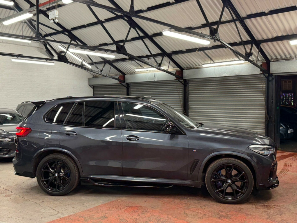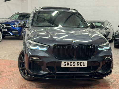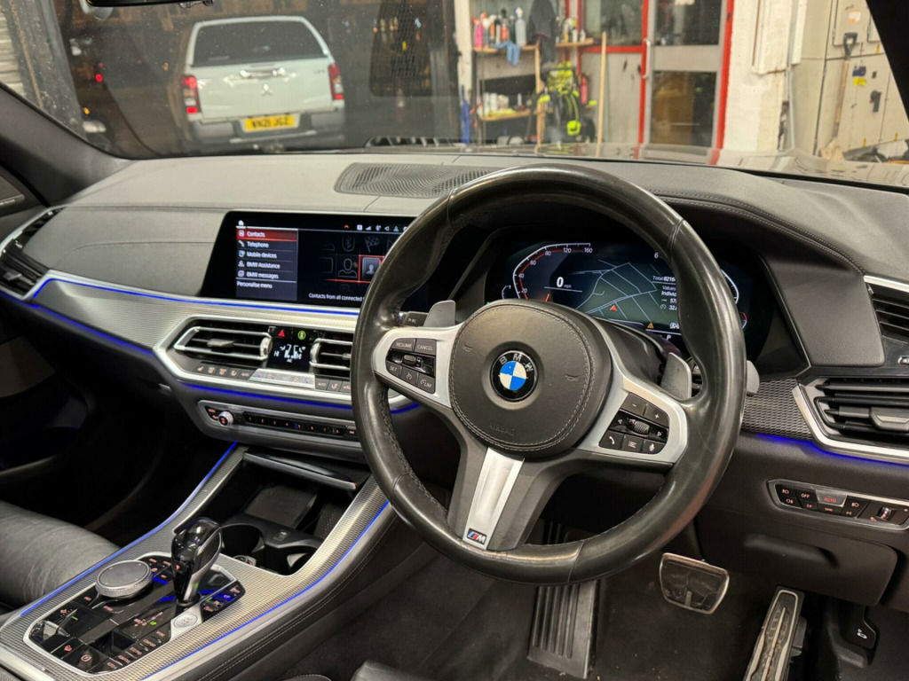 Stunning condition with a superb spec including m sport plus pack and technology pack. Full bmw service history, one previous owner and supplied with two keys. Panoramic glass roof, sky lounge, 360 cameras, apple car play, gesture control, 21'' snow flake alloy wheels.This 2019 BMW X5 30d M Sport is a superb example, having been cherished by just one owner since new. This impressive four wheel drive SUV boasts a powerful 3.0 litre diesel engine, meeting Euro 6 emissions standards. Its M Sport trim level is complemented by a host of desirable features, including the Technology Package which offers a Head Up Display, 360 degree camera system for effortless parking, and a premium branded sound system. You'll also enjoy the expansive Sky Lounge Panoramic Glass Sunroof, allowing light to flood the cabin, and striking 21 inch M Light Y-Spoke Style 741 M Bicolour alloy wheels. Further enhancing the driving experience are the M Sport Plus Package and BMW Connected Package Professional, which includes Apple CarPlay.The performance of this X5 is truly engaging, with a swift 0-62mph acceleration time of just 6.5 seconds, demonstrating its dynamic capability. This vehicle also offers practical advantages, featuring a generous boot space perfect for all your needs, and benefits from a low insurance group, making it an economical choice. These highlights collectively position this BMW X5 as an outstanding option, offering a superior blend of performance, luxury, and practicality compared to other vehicles in its class. gb hard disc drive hdd memory, 20in alloy wheels - m light star-spoke style 740 m bicolour with mixed tyres and run flat tyres, active air stream kidney grille, active guard plus, adaptive 2-axle air suspension, adaptive air flap control bar - high-gloss black, air conditioning - automatic with 2.5 zone control, airbags - driver - front passenger- rear and side, alarm system - thatcham 1 with remote control and engine immobiliser, ambient interior lighting, armrest - front and rear integrated into door trim, attentiveness assistant, automatically dimming rear view mirror, bmw connected package professional, bmw connecteddrive online services, bmw emergency call, bmw gesture control, bmw individual high-gloss shadowline, bmw individual roof rails high-gloss shadow line, bmw live cockpit professional, bmw teleservices, brake force display, brake system, brake-pad wear indicator, centre armrest - rear - foldable with 2 cupholders and storage compartment, centre console includes storage compartment, centre lock switch - driver and front passenger door, child seat isofix attachment - outer rear seats - includes top tether, closing system with central locking, compartment in front of cupholder, crash sensor - activating central locking release - hazard warning lights - fuel cut off - interior lighting and activation of the safety battery clamp, cruise control with brake function, cup holders - front x2 and rear x2, dab tuner, dsc - dynamic stability control - stabilises the vehicle in extreme situations - controls traction, daytime running lights - led, deformation zones - front and rear, door pockets - front and rear, door sill finishers with illuminated - bmw designation - front and rear, door sill inlays - bmw m designation illuminated, drive performance control with eco pro - comfort and sport, dynamic brake lights with led technology, eps - electric power steering with servotronic, electric windows - front and rear with open-close fingertip control - anti-trap facility and comfort closing function, electrical steering column with adjustable height and length, electro-mechanical parking brake with automatic drive-away release and auto-hold function, enhanced bluetooth telephone preparation with wireless charging, exhaust tailpipes - single - left and right - chrome, expanded exterior mirror package, exterior mirror housing - body colour, exterior mirrors - electrically adjustable - automatic parking function - heated and drivers anti-dazzle, favourite buttons, first aid kit and warning triangle, follow me home headlight function, footwell lights - front, front grille bars - pearlescent chrome, head airbags - for first and second row seats, head restraints - front anti-whiplash, headlining - anthracite, heated windscreen washer jets, hifi loudspeaker system, interior light - rear centre, interior trim - aluminium tetragon, knee airbag, led fog lights, led headlights, led rear lights, light inside glove compartment, lockable glove compartment, locking wheel bolts, luggage compartment - light, luggage compartment floor panel with integral storage tray, m aerodynamic bodystyling, m designation on front side panels - left and right, m leather steering wheel, m specific floor mats, m specific key, m specific pedals, m specific steering wheel, m sport braking system, m sport package, make-up mirror lights, mechanical childproof lock - rear doors, multi-function controls for leather steering wheel, multifunctional hooks, non smokers package, obc - on board computer, oil sensor for level and grade, outer and centre air intakes on front bumper - high-gloss black with pearlescent chrome finish, pdc - park distance control - front and rear, parking assistant, passenger seat airbag deactivation - front, passenger seat occupancy sensor for driver and passenger side, passive protection for pedestrians, power sockets 12v - 2x centre console - 1x luggage compartment, rain sensor with automatic headlight activation and windscreen wiper control, reading lights - front, run-flat tyres, safety battery - terminal clamp, seat adjustment - front electric with driver memory, seat back with flap pocket, seat belts front and rear - seat belt tensioner - front and outer rear seats - belt force limit, seat heating for driver and front passenger, side elements - high gloss black, side impact protection, side window graphics - satin aluminium, speed limit display, speed limiting function, split folding rear seats 40-20