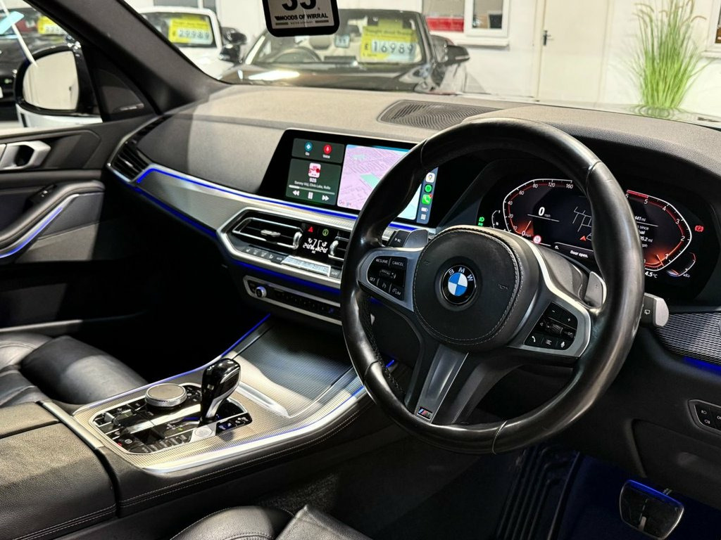 Woods of Wirral presents this 2019 BMW X5 30d M Sport offering a compelling blend of performance and technology, boasting a powerful 3.0L diesel engine and a sophisticated Four Wheel Drive system. Complimented by a fully documented BMW main dealer service history ensuring this vehicle has been maintained to the highest of standards. As a Euro 6 compliant vehicle, it meets stringent emission standards. The M Sport trim enhances its dynamic appeal, complemented by striking 21 inch M Light Y-Spoke Style 741 M Bicolour alloy wheels . This X5 also benefits from Acoustic Glazing for a quieter cabin and an electrically folding towbar, adding practicality for various needs. Featuring over £7,000 of factory fitted extras making this X5 so much more desirable, including .... Technology Package - £1995.00.... M Sport Plus Package - £1950.00.... 21in Alloy Wheels - Style 741 M - £1350.00.... Acoustic Glazing - £495.00..... Sun Protection Glazing - £390.00.... Towbar - Electrically Folding - £995.00.... PDC - Park Distance Control - Front and Rear.... BMW Live Cockpit Professional.... Enhanced Bluetooth Telephone Preparation with Wireless Charging.... Exterior Mirrors - Electrically Adjustable - Automatic Parking Function - Heated and Drivers Anti-Dazzle.... Telephony with Wireless Charging.... Ambient Interior Lighting.... DAB Tuner..... Multi-Function Controls for Leather Steering Wheel The Technology Package significantly elevates the driving Technology Package, M Sport Plus Package, 21in Alloy Wheels - M Light Y-Spoke Styl, Acoustic Glazing, Sun Protection Glazing, Towbar - Electrically Folding, PDC - Park Distance Control - Front and , BMW Live Cockpit Professional, Enhanced Bluetooth Telephone Preparation, Exterior Mirrors - Electrically Adjustab, Telephony with Wireless Charging, Ambient Interior Lighting, DAB Tuner, Multi-Function Controls for Leather Stee, Active Air Stream Kidney Grille, Active Guard Plus, 20GB Hard Disc Drive HDD Memory, Adaptive 2-Axle Air Suspension, Adaptive Air Flap Control Bar - High-Glo, Air Conditioning - Automatic with 2.5 Zo, Airbags - Driver - Front Passenger- Rear, Alarm System - Thatcham 1 wit