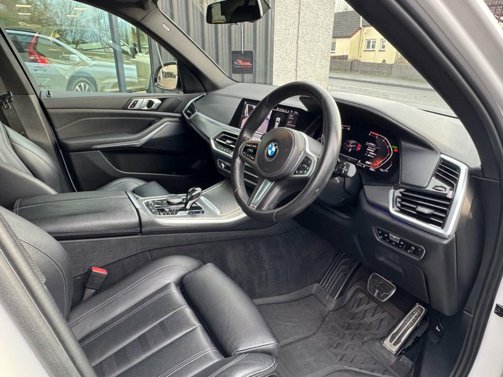 September 2020 BMW X5 30D M Sport finished in Mineral White 57318 miles 2 Owner vehicle locally owned and in exceptional condition -7 Seats -Aero Kit -21" Alloy 741M alloy wheels -Rear view parking camera -Rear privacy glass -Wireless charging Plus much more Competitive finance packages available, get in contact TODAY! 21in Alloy Wheels - M Light Y-Spoke Styl, 20GB Hard Disc Drive HDD Memory, 20in Alloy Wheels - M light Star-Spoke S, Active Air Stream Kidney Grille, Active Guard Plus, Adaptive 2-Axle Air Suspension, Adaptive Air Flap Control Bar - High-Glo, Air Conditioning - Automatic with 2.5 Zo, Airbags - Driver - Front Passenger- Rear, Alarm System - Thatcham 1 with Remote Co, Ambient Interior Lighting, Armrest - Front and Rear Integrated into, Attentiveness Assistant, Automatically Dimming Rear View Mirror, BMW Connected Package Professional, BMW ConnectedDrive Online Services, BMW Individual High-Gloss Shadowline, BMW Individual Roof Rails High-Gloss Sha, BMW Legal Emergency Call, BMW Live Cockpit Pr