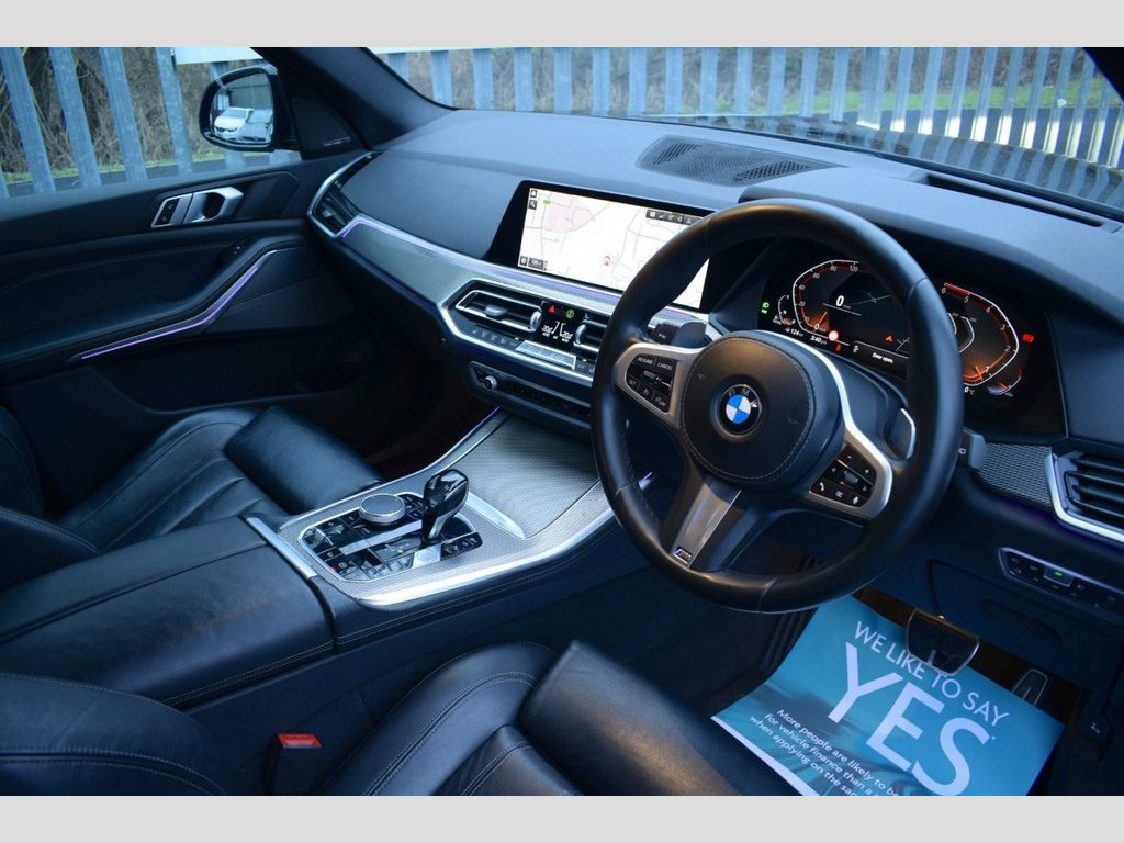 This BMW X5 30d we have for sale is a stunning vehicle in a luxury colour combo complimented by a great spec including 7 seats, 21" multi spoke wheels, head up display, 360 camera, harman kardon sound and more. This vehicle benefits from a full BMW service history. CARBON BLACK - BLACK FULL LEATHER INTERIOR - 21" 741M STYLE WHEELS IN GLOSS BLACK - M SPORT PLUS PACKAGE - TECHNOLOGY PACKAGE - 7 SEATER (THIRD ROW SEATING) - HEAD UP DISPLAY - 360 SURROUND CAMERA - REVERSE CAMERA - HARMAN KARDON SURROUND SOUND - BI XENON HEADLAMPS - LED DAYTIME LIGHTS - POWERED BOOTLID UP & DOWN - DIGITAL COCKPIT - WIDESCREEN NAVIGATION SAT NAV - APPLE CAR PLAY - BLUETOOTH PHONE PREP - BLUETOOTH AUDIO STREAM - HEATED FRONT SEATS - ELECTRIC FOLDING MIRRORS - FRONT & REAR PARKING SENSORS - DAB DIGITAL RADIO - MULTI FUNCTION S/WHEEL - CRUISE CONTROL - PRIVACY GLASS - AUTO HEADLIGHT ACTIVATION - AUTO WIPER ACTIVATION - AIR CONDITIONING - CLIMATE CONTROL - EURO 6 ULEZ COMPLIANT 20GB Hard Disc Drive HDD Memory, 20in Alloy Wheels - M light Star-Spoke S, Active Air Stream Kidney Grille, Active Guard Plus, Adaptive 2-Axle Air Suspension, Adaptive Air Flap Control Bar - High-Glo, Air Conditioning - Automatic with 2.5 Zo, Airbags - Driver - Front Passenger- Rear, Alarm System - Thatcham 1 with Remote Co, Ambient Interior Lighting, Armrest - Front and Rear Integrated into, Attentiveness Assistant, Automatically Dimming Rear View Mirror, BMW Connected Package Professional, BMW ConnectedDrive Online Services, BMW Emergency Call, BMW Gesture Control, BMW Individual High-Gloss Shadowline, BMW Individual Roof Rails High-Gloss Sha, BMW Live Cockpit Professional, BMW TeleService