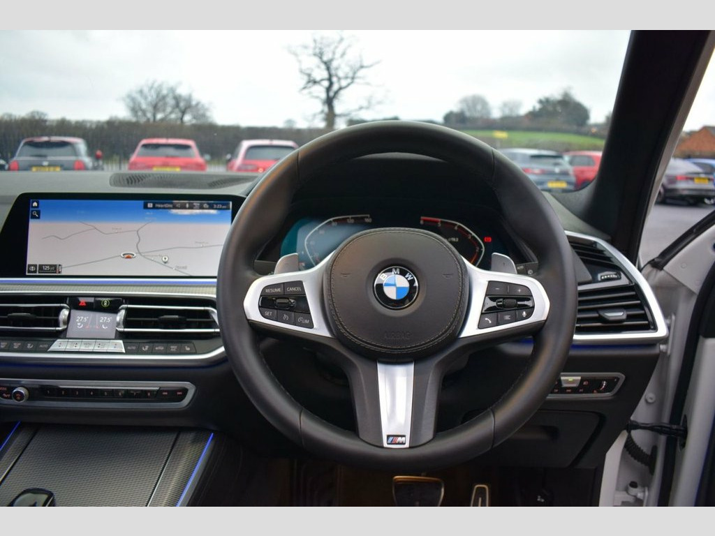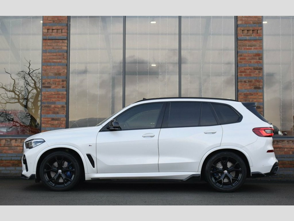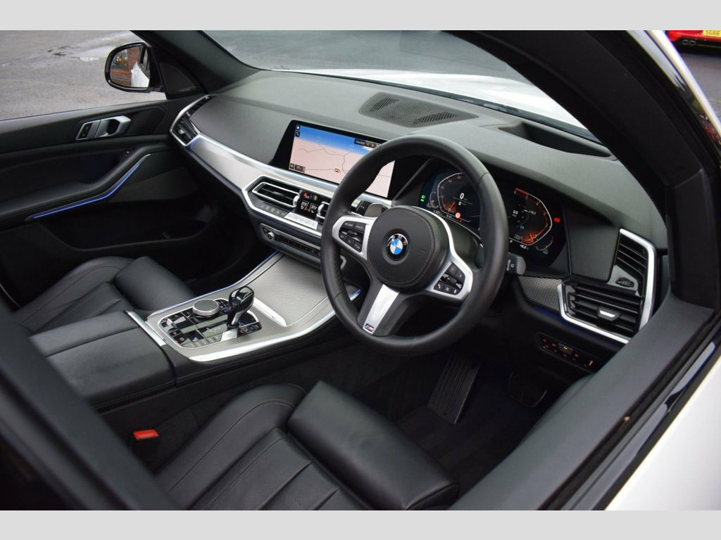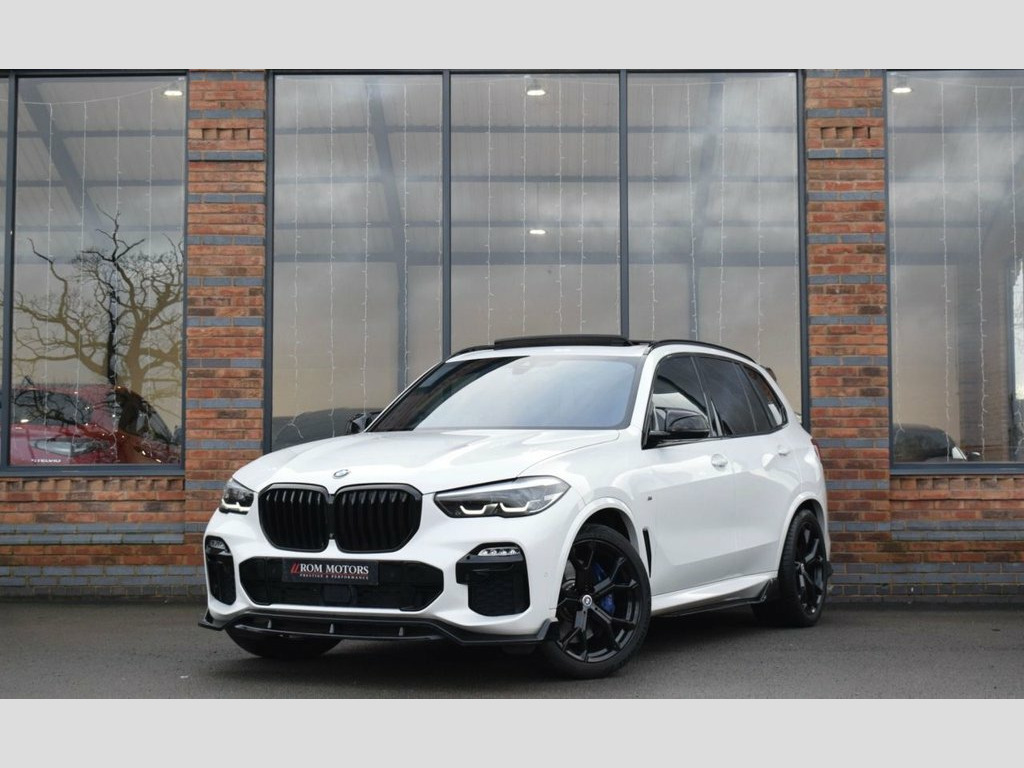 Rom Motors are thrilled to offer this BMW X5 for sale, finished in Mineral White Metallic with Full Black Vernasca Leather Interior. Completed with Full BMW M Performance Exterior Kit and that all important Sky Lounge Panoramic Glass Sunroof, a must on any Luxury SUV now. On top of that you'll find BMW's M Sport+ Pack and Technology pack to bring extras like its Heads Up Display. Powered by a 265bhp 3L turbo diesel engine coupled with BMW's xDrive system for an immensely responsive drive and excellent MPG return. Completed with an excellent service history, all recorded in the vehicles internal iDrive system. 22in Alloy Wheels - M Light Double-Spoke, 22in Alloy Wheels - BMW Individual Light, 20GB Hard Disc Drive HDD Memory, 20in Alloy Wheels - M light Star-Spoke S, Active Air Stream Kidney Grille, Active Guard Plus, Adaptive 2-Axle Air Suspension, Adaptive Air Flap Control Bar - High-Glo, Air Conditioning - Automatic with 2.5 Zo, Airbags - Driver - Front Passenger- Rear, Alarm System - Thatcham 1 with Remote Co, Ambient Interior Lighting, Armrest - Front and Rear Integrated into, Attentiveness Assistant, Automatically Dimming Rear View Mirror, BMW Connected Package Professional, BMW ConnectedDrive Online Services, BMW Emergency Call, BMW Gesture Control, BMW Individual High-Gloss Shadowline, BMW