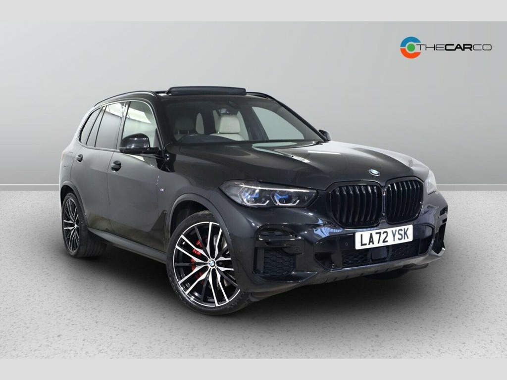 This 2022 BMW X5 30d M Sport is a superb example, having had only one owner since new. Finished in the striking M Sport trim, this Four Wheel Drive model boasts a powerful 3.0L Diesel Hybrid engine, meeting Euro 6 emission standards. Inside, you'll find the luxurious BMW Individual Extended Merino Leather in Ivory White and Black, complemented by the expansive Sky Lounge Panoramic Glass Sunroof with an opening function. The M Sport package is further enhanced by 22in M Double-Spoke Bicolour Style 742 alloy wheels. This X5 also benefits from the Technology Package, which includes a Head Up Display, and the Comfort Package, adding features like Keyless Entry, heated seats, memory seats, and a heated steering wheel. The performance of this X5 is truly impressive, accelerating from 0-62mph in a swift 6.1 seconds, demonstrating its dynamic capability. This acceleration figure indicates a superior driving experience compared to many similar vehicles. Furthermore, the generous boot space offers excellent practicality for all your needs, and its position in a low insurance group makes it an economical choice to own and run. 20GB Hard Disc Drive HDD Memory, Active Air Stream Kidney Grille - High-G, Active Guard Plus, Adaptive Air Flap Control Bar - High-Glo, Air Conditioning - Automatic with 2.5 Zo, Airbags - Driver - Front Passenger- Rear, Alarm System - Thatcham 1 with Remote Co, Ambient Interior Lighting, Armrest - Front and Rear Integrated into, Attentiveness Assistant, Automatically Dimming Rear View Mirror, BMW Connected Package Professional, BMW ConnectedDrive Online Services, BMW Individual High-Gloss Shadowline, BMW Legal Emergency Call, BMW Live Cockpit Professional, BMW TeleServices, Brake Force Display, Brake System, Brake-Pad Wear Indicator, Centre Armrest - Rear - Foldable with 2 , Centre Console i
