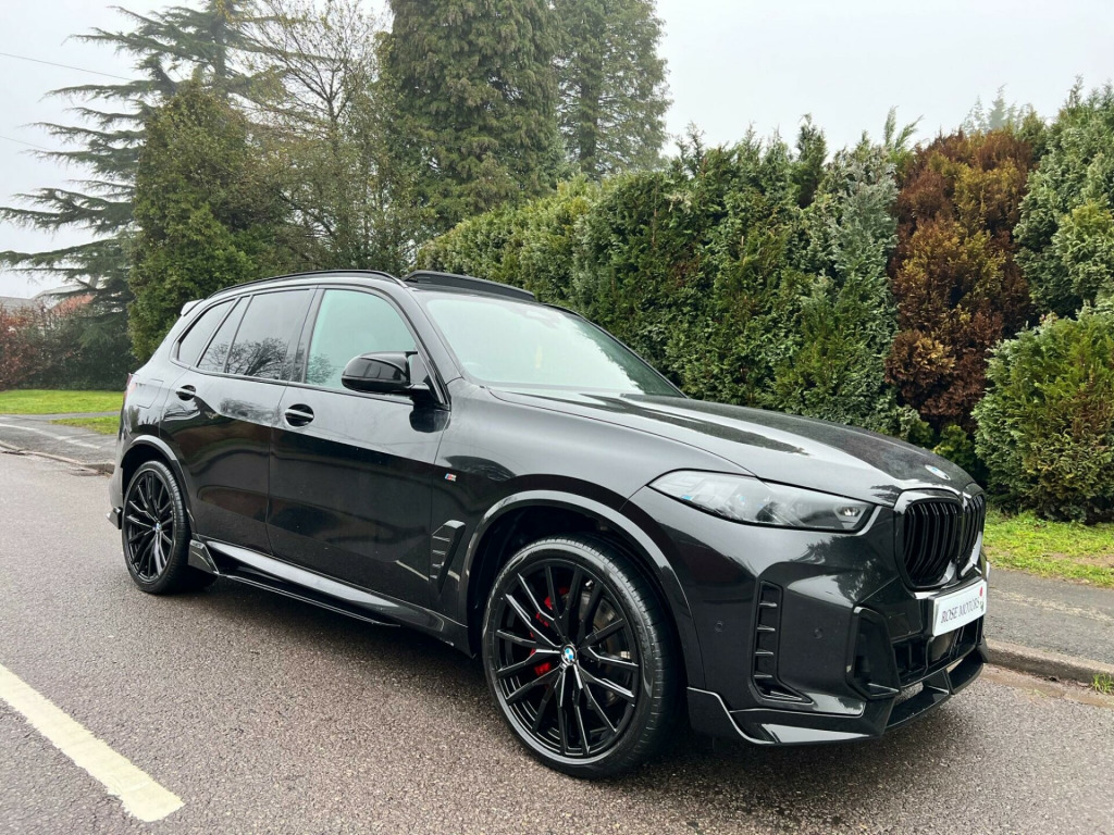 *** M PERFORMANCE KIT *** BMW X5 M SPORT 30D MHT XDRIVE STEPTRONIC LCI, 4X4 EURO 6 (S/S) (282 BHP, 1 OWNER FROM NEW, BMW DEALER SERVICE HISTORY - LAST SERVICED BY BMW @ 17K MILES, FULL BLACK PREMIUM SENSAFIN LEATHER, WIDE SCREEN SAT NAV, HEAD UP DISPLAY, HARMON KARDON SOUND SYSTEM, SKY LOUNGE PANORAMIC GLASS SUNROOF, LASER LIGHTS - XENON, HEATED SEATS, APPLE CARPLAY, M PERFORMANCE KIT, ELECTRIC MEMORY SEATS, DIGITAL COCKPIT, KEYLESS ENTRY/EXIT, BLUETOOTH WITH WIRELESS AUDIO STREAMING, COMFORT ACCESS, UPGRADED 22'' M742 ALLOY WHEELS, TOUCH SCREEN IN CAR ENTERTAINMENT, GESTURE CONTROL, M SPORT PRO PACKAGE, TECHNOLOGY PACKAGE, SUN PROTECTION GLASS, M SPORT BRAKES WITH RED CALIPERS, BLACK GLOSS TURNED FINISH ALLOY WHEELS WITH RED CALLIPERS - 2 BRAND NEW REAR TYRES, 4 WAY ELECTRIC SEATS WITH LUMBAR SUPPORT, 4 ZONE DELUXE AUTOMATIC CLIMATE CONTROL, BMW SPORT LOGO PROJECTION -M SPORT BEAM - FRONT & REAR, HARMON KARDON SOUND SYSTEM, REVERSE PARK CAMERA WITH TRAFFIC SIGN RECOGNITION, CRUISE CONTROL WITH BRAKE FUNCTION, DAB DIGITAL RADIO, ELECTRIC STEERING COLUMN, ELECTRIC HEATED AUTO DIMMING POWER FOLDING DOOR MIRRORS, HD MATRIX HEADLAMPS WITH LASER LIGHT, HEADLIGHT WASHERS - HEATED, LED REAR COMBINATION LAMPS WITH DYNAMIC LIGHT DESIGN AND DYNAMIC TURN SIGNAL, iSOFIX, LANE DEPARTURE, KEYLESS GO, LEATHER MULTIFUNCTION STEERING WHEEL, PADDLE SHIFT GEAR CHANGE, AIR SUSPENSION 4 CORNER WITH ELECTRONIC SHOCK ABSORPTION CONTROL - SPORTS VERSION, MULTI COLOUR AMBIENT LIGHTING, HEATED HEADLIGHT WASHERS, BMW CONNECTED DRIVE, AUTO DIMMING REAR VIEW MIRROR, AUTO HEADLIGHTS, TRACTION CONTROL, REMOTE CENTRAL LOCKING WITH SPARE KEY FOB, BMW MANUFACTURER WARRANTY UNTIL MARCH 2027, Rose Motors of Four Oaks Royal Sutton Coldfield , Open 7 days a week, including bank holidays, Nationwide delivery available, Finance available, Warranty Packages available, For more pictures of this vehicle and to view all cars in stock please visit our website WWW.ROSEMOTORSLTD.CO.UK, CHOICE OF 2 X5 AVAILABLE. 20in Alloy Wheels - M Star-Spoke Style 740 M Bicolour with Run Flat Tyres, ABS - Anti Lock Braking System, Active Protection, Adaptive M Suspension, Air Conditioning - Automatic with 2.5 Zone Control, Airbags - Driver - Front Passenger- Rear and Side, Ambient Interior Lighting, Armrest - Front and Rear Integrated into Door Trim, Attentiveness Assistant, Automatic Hold Function, Automatic Tailgate Operation, BMW ConnectedDrive Online Services, BMW Live Cockpit Plus, Brake System, Centre Armrest - Rear - Foldable with 2 Cupholders and Storage Compartment, Closing System with Central Locking, Comfort Access, Cruise Control, DAB Tuner, Door Pockets - Front and Rear, Double-Wishbone Front Axle, Driving Experience Switch, EPS - Electric Power Steering with Servotronic, Electric Memory Seats, Electric Windows - Front and Rear with Open-Close Fingertip Control - Anti-Trap Facility and Comfort Closing Function, Expanded Exterior Mirror Package, Exterior Trim - High Gloss Shadowline, Floor Mats - Velour, Front Grille Bars - Pearlescent Chrome, Head Airbags - For First and Second Row Seats, Headlining - Anthracite, Headrests - All Seats, Heat Protection - Sun Protection Glazing, HiFi Loudspeaker System, High-Beam Assistant, Instrument Panel - Sensatec, Integrated Owners Handbook, Interior Trim - Fineline Black Wood - High-Gloss with Metal Effect, Knee Airbag, Locking Wheel Bolts, Luggage Compartment Separating Net, Lumbar Support - Driver and Front Passenger, M Aerodynamic Bodystyling, M Leather Steering Wheel, M Sport Brakes with Blue Calipers, M Sport Package, Outer and Central Air Intakes on Front Bumper - High-Gloss Black with Pearlescent Chrome Finish, Parking Assistant, Passenger Seat Airbag Deactivation - Front, Power Sockets 12v - 2x Centre Console - 1x Luggage Compartment, Recovery System, Roof Rails - High-Gloss Shadowline, Seat Belts Front and Rear - Seat Belt Tensioner - Front and Outer Rear Seats - Belt Force Limit, Seat Heating - Front, Smartphone Integration, Speed Limiting Function, Split Folding Rear Seats 40-20-40 Configuration, Sport Seats - Front, Steering Column with Electric Adjustment, Steering Wheel - Paddle Shift, USB Connections - x1 USB-A and 2x USB-C 1st Row - x4 USB-C 2nd Row, WiFi Hotspot, xDrive Designation on Tailgate - Right, Alarm System, Personal eSim, Sky Lounge Panoramic Glass Sunroof, M Sport Pro Package, Technology Package, Interior Trim - BMW Individual - Piano Black, Sun Protection Glass, M Sport Brakes with Red Calipers, Sensafin Leather - Black, Parking Assistant Pro, 22in Alloy Wheels - M Double-Spoke Jet Black Style 742, Acoustic Glazing, Additional Storage Compartment, Comfort Package, Comfort Plus Package, Leather Dashboard, M Electric Front Sports Seats, Technology Plus Pack, Travel and Comfort System, Front and Rear Air Suspension, M Sport Differential, xOff Road Pack. Full dealership history