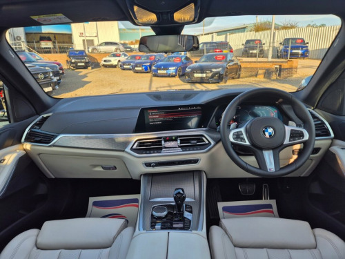 Lovely One Owner X5 Finished in Artic Grey Metallic with the Full M Performance Gloss Black Body Kit and Finished with Ivory Perforated Vernasca Leather Upholstery. Great spec car with all important Sky Lounge Glass Opening Panoramic Sunroof, Technology Pack, Air Suspension, Gloss Black 22" Alloy Wheels, Gesture Control, Heads Up Display, Reversing Camera, Heated Seats, Satellite Navigation, Bluetooth with Audio Streaming and so much more. This car has a Full Service History and Two Keys. 22" Gloss Black m Sport Alloy Wheel, Sky Lounge Panoramic Glass Sunroof, Active Guard Plus, Adaptive Air Flap Control Bar - High-Glo, Adaptive M Sport Suspension, Air Conditioning - Automatic with 2.5 Zo, Alarm System - Thatcham 1 with Remote Co, Ambient Interior Lighting, Arctic Grey, Attentiveness Assistant, Automatically Dimming Rear View Mirror, BMW Connected Package Professional, BMW ConnectedDrive Online Services, BMW Individual High-Gloss Shadowline, BMW Individual Roof Rails High-Gloss Sha, BMW Legal Emergency Call, BMW Live Cockpit Professional, BMW TeleServices, Brake Energy Regeneration, Cruise Control with Brake Function, DAB Tuner, Daytime Running Lights - LED, Door Sill In