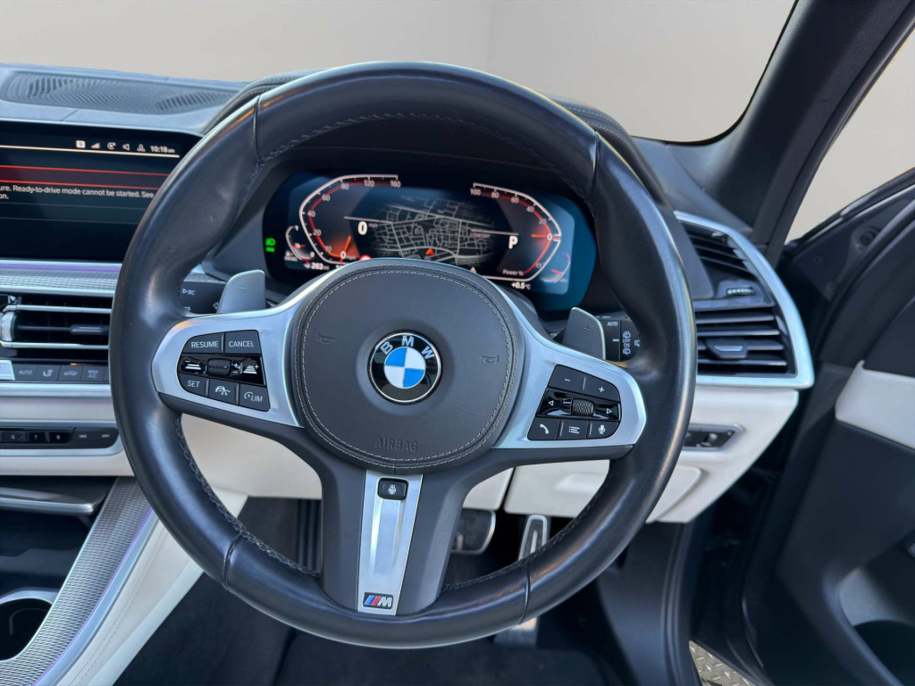 gb hard disc drive hdd memory, active air stream kidney grille - high-gloss chrome, active guard plus, adaptive air flap control bar - high-gloss black, air conditioning - automatic with 2.5 zone control, airbags - driver - front passenger- rear and side, alarm system - thatcham 1 with remote control and engine immobiliser, ambient interior lighting, armrest - front and rear integrated into door trim, attentiveness assistant, automatically dimming rear view mirror, bmw connected package professional, bmw connecteddrive online services, bmw individual high-gloss shadowline, bmw legal emergency call, bmw live cockpit professional, bmw teleservices, brake force display, brake system, brake-pad wear indicator, centre armrest - rear - foldable with 2 cupholders and storage compartment, centre console includes storage compartment, centre lock switch - driver and front passenger door, child seat isofix attachment - outer rear seats - includes top tether, closing system with central locking, compartment in front of cupholder, crash sensor - activating central locking release - hazard warning lights - fuel cut off - interior lighting and activation of the safety battery clamp, cup holders - front x2 and rear x2, dsc - dynamic stability control - stabilises the vehicle in extreme situations - controls traction, daytime running lights - led, deformation zones - front and rear, digital aftermarket - active cruise control, door pockets - front and rear, door sill inlays - bmw m designation illuminated, double-wishbone front axle, drive performance control with eco pro - comfort and sport, dynamic brake lights with led technology, eps - electric power steering with servotronic, electric windows - front and rear with open-close fingertip control - anti-trap facility and comfort closing function, electrical steering column with adjustable height and length, electro-mechanical parking brake with automatic drive-away release and auto-hold function, enhanced bluetooth with wireless charging, exhaust tailpipes - single - left and right - chrome, expanded exterior mirror package, exterior mirror housing - body colour, favourite buttons, first aid kit and warning triangle, follow me home headlight function, footwell lights - front, front grille bars - pearlescent chrome, front and rear air suspension, head airbags - for first and second row seats, head restraints - front anti-whiplash, headlights - adaptive led, headlining - anthracite, heated windscreen washer jets, hifi loudspeaker system, high-beam assistant, interior light - rear centre, interior trim - aluminium tetragon, knee airbag, led rear lights, light inside glove compartment, lockable glove compartment, luggage compartment - light, luggage compartment floor panel with integral storage tray, m aerodynamic bodystyling, m designation on front side panels - left and right, m leather steering wheel, m specific key, m specific pedals, m sport braking system, m sport package, make-up mirror lights, mechanical childproof lock - rear doors, multi-function controls for leather steering wheel, multifunctional hooks, non smokers package, obc - on board computer, oil sensor for level and grade, outer and central air intakes on front bumper - high-gloss black with pearlescent chrome finish, pdc - park distance control - front and rear, parking assistant, passenger seat airbag deactivation - front, passive protection for pedestrians, power sockets 12v - 2x centre console - 1x luggage compartment, rain sensor with automatic headlight activation and windscreen wiper control, reading lights - front, safety battery - terminal clamp, seat back with flap pocket, seat belts front and rear - seat belt tensioner - front and outer rear seats - belt force limit, seat occupancy detection for driver and passenger side, side elements - high gloss black, side impact protection, side window graphics - satin aluminium, speed limit display, speed limiting function, split folding rear seats 40-20-40 configuration, start-stop toggle - diamond-shaped trim finisher in pearl chrome, steering wheel - paddle shift, storage tray and compartment with lid in centre console, sun visors with illuminated vanity mirrors, tailgate automatic - two part top-hinged section which can be opened separately and manual bottom-hinged section, third brake light - spoiler, toolkit located in luggage compartment, two tone horn, usb connection - usb type a 1.5a in cupholder - usb type c 3a in centre armrest, welcome light carpet, x5 on tailgate - left, xdrive designation on tailgate - right, 20in alloy wheels - m star-spoke style 740 m bicolour with run flat tyres, cruise control, dab - digital radio, electric memory seats, exterior mirrors - electrically adjustable - automatic parking function - heated and drivers anti-dazzle, exterior trim - high gloss shadowline, floor mats - velour, instrument panel - sensatec, locking wheel bolts, m sport brakes with blue calipers, roof rails - high-gloss shadowline, seat heating - front, sensatec dashboard, sport seats - front, tyre pressure sensors, wifi hotspot, idrive controller with shortcut buttons