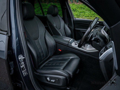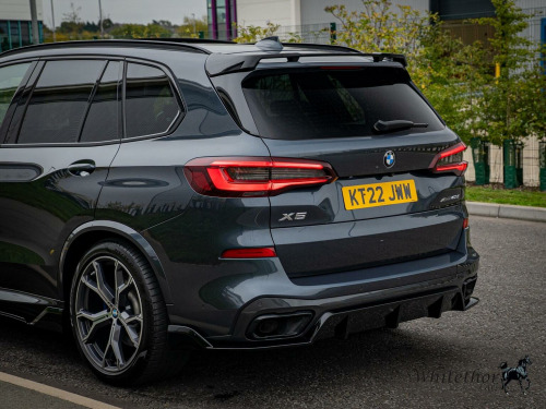 FREE DELIVERY WITHIN 200 MILES – Here we have a stunning BMW X5 40d M Sport finished in Grey Metallic. This being the M Sport comes with fantastic spec from the factory, but this example also boasts a plethora of optional extras such as: 21in M Y-Spoke Bicolour Style 741 Alloy Wheels – Sky Lounge Panoramic Glass Sunroof – M Sport Pro Package – Bowers and Wilkins Diamond Surround Sound System – Technology Package – Parking Assistant Plus – Drive Recorder – Sun Protection Glass – Perforated Vernasca Leather in Black – and more. This car has had 3 services in total, all stored on the cars iDrive system. The MOT expires October 2026. 3 Month £2000 Claim Limit Warranty is included with the sale but the option to upgrade to a 12M, 24M, & 36M £5000 Claim Limit Nation Wide Premium Autoguard Warranty with Breakdown Cover is available. Multiple Finance Options, Competitive Part Exchange Prices. All Cars Are HPI, MotorCheck & Experian Clear. Further Vehicle Delivery Options Also Available. All Rights Reserved - Whitethor cars exercise all reasonable care and skill in providing you with vehicle information and data. The specification is attained through HPI, Experian & Autotrader VRM. Options Sold as packs may be shown individually, spec check is a guide so please contact us or physically verify any info that is crucial.