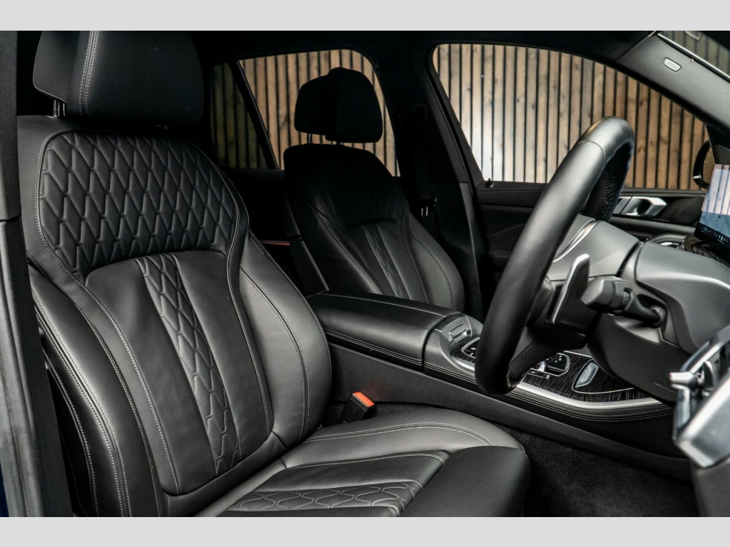 This 2024 BMW X5 40d M Sport offers a sophisticated blend of performance and luxury, featuring a powerful 3.0L Diesel Hybrid engine and a smooth Four Wheel Drive system. As a Euro 6 compliant vehicle, it meets stringent emission standards. Inside, you'll find the exquisite BMW Individual Extended Merino Leather in Black Black, complemented by the expansive Sky Lounge Panoramic Glass Sunroof, which includes an opening function for an airy cabin experience. Practicality is enhanced with an Additional Storage Compartment and the convenient Travel and Comfort System, while Acoustic Glazing ensures a serene driving environment.The X5 40d M Sport excels with its impressive acceleration, reaching 0-62mph in just 5.5 seconds, demonstrating its dynamic capabilities. This performance, combined with a substantial towing weight of 2500 kg, positions it as a highly versatile option for various needs. Furthermore, the generous boot space provides ample room for luggage or equipment, making it an ideal choice for families or those requiring extra capacity. These attributes collectively highlight the X5's superior offering compared to other vehicles in its class.. 20in Alloy Wheels - M Star-Spoke Style 740 M Bicolour with Run Flat Tyres, ABS - Anti Lock Braking System, Active Protection, Adaptive M Suspension, Air Conditioning - Automatic with 2.5 Zone Control, Airbags - Driver - Front Passenger- Rear and Side, Ambient Interior Lighting, Armrest - Front and Rear Integrated into Door Trim, Attentiveness Assistant, Automatic Hold Function, Automatic Tailgate Operation, BMW ConnectedDrive Online Services, BMW Live Cockpit Plus, Brake System, Centre Armrest - Rear - Foldable with 2 Cupholders and Storage Compartment, Closing System with Central Locking, Comfort Access, Cruise Control, DAB Tuner, Door Pockets - Front and Rear, Double-Wishbone Front Axle, Driving Experience Switch, EPS - Electric Power Steering with Servotronic, Electric Memory Seats, Electric Windows - Front and Rear with Open-Close Fingertip Control - Anti-Trap Facility and Comfort Closing Function, Expanded Exterior Mirror Package, Exterior Trim - High Gloss Shadowline, Floor Mats - Velour, Front Grille Bars - Pearlescent Chrome, Head Airbags - For First and Second Row Seats, Headlining - Anthracite, Headrests - All Seats, Heat Protection - Sun Protection Glazing, HiFi Loudspeaker System, High-Beam Assistant, Instrument Panel - Sensatec, Integrated Owners Handbook, Interior Trim - Fineline Black Wood - High-Gloss with Metal Effect, Knee Airbag, Locking Wheel Bolts, Luggage Compartment Separating Net, Lumbar Support - Driver and Front Passenger, M Aerodynamic Bodystyling, M Leather Steering Wheel, M Sport Brakes with Blue Calipers, M Sport Package, Outer and Central Air Intakes on Front Bumper - High-Gloss Black with Pearlescent Chrome Finish, Parking Assistant, Passenger Seat Airbag Deactivation - Front, Power Sockets 12v - 2x Centre Console - 1x Luggage Compartment, Recovery System, Roof Rails - High-Gloss Shadowline, Seat Belts Front and Rear - Seat Belt Tensioner - Front and Outer Rear Seats - Belt Force Limit, Seat Heating - Front, Smartphone Integration, Speed Limiting Function, Split Folding Rear Seats 40-20-40 Configuration, Sport Seats - Front, Steering Column with Electric Adjustment, Steering Wheel - Paddle Shift, USB Connections - x1 USB-A and 2x USB-C 1st Row - x4 USB-C 2nd Row, WiFi Hotspot, xDrive Designation on Tailgate - Right, Sky Lounge Panoramic Glass Sunroof, Technology Package, Comfort Package, Additional Storage Compartment, Travel and Comfort System, Acoustic Glazing, Sun Protection Glass, BMW Individual Extended Merino Leather - Black-Black.