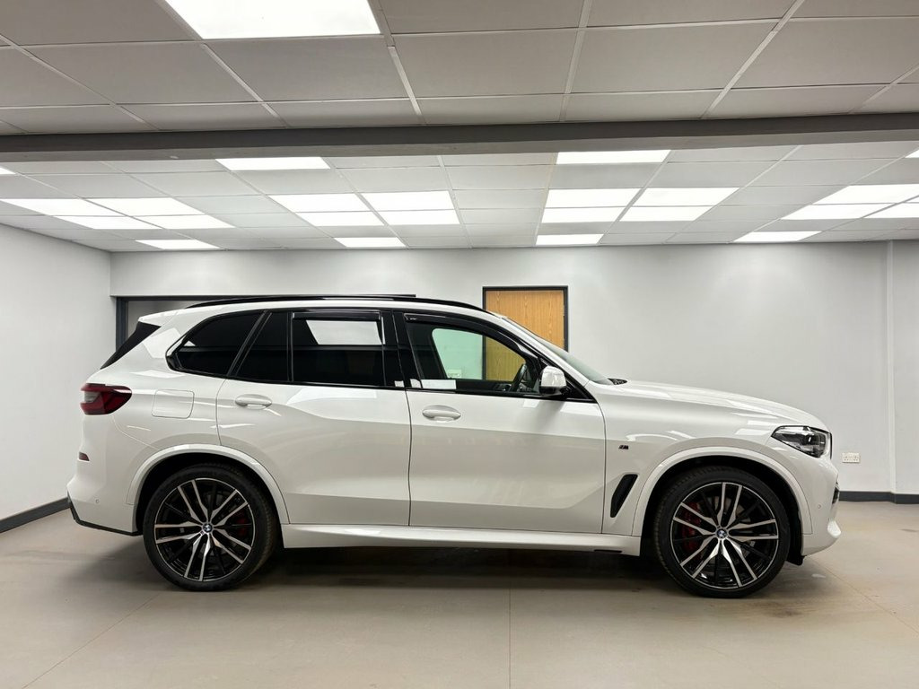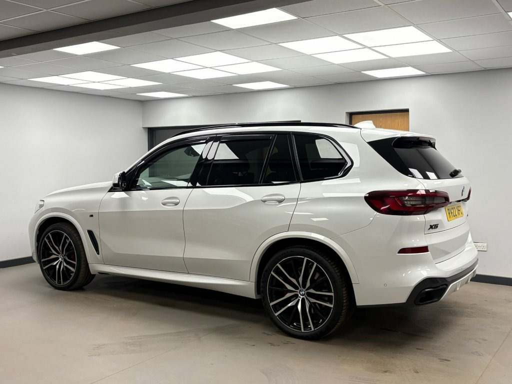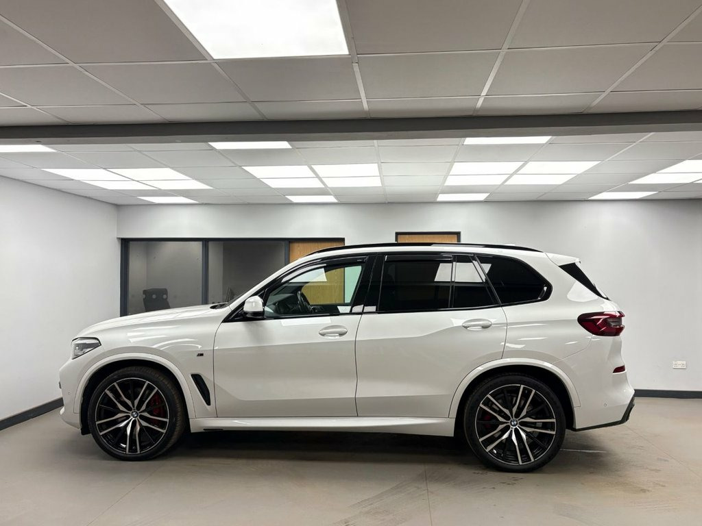 This 2022 BMW X5 40d M Sport boasts a clear vehicle history, offering you peace of mind. This impressive four wheel drive model features a powerful 3.0L Diesel Hybrid engine, meeting Euro 6 emission standards. It comes equipped with the M Sport Pro Package and striking 22 inch M Light Double Spoke Style 742 M Bicolour alloy wheels with mixed tyres. The M Sport trim also includes M Sport Brakes with high gloss red painted calipers and the M designation, alongside automatic 2.5 zone air conditioning for your comfort. Furthermore, the BMW Connected Package Professional, including Apple CarPlay, ensures you stay connected on every journey. Experience exhilarating performance with the X5 40d M Sport, capable of accelerating from 0 to 60mph in just 5.5 seconds, demonstrating its superior responsiveness compared to other vehicles in its class. This model also offers a substantial boot space, making it ideal for both daily errands and longer trips. With a towing weight of 2500 kg, it provides excellent versatility for carrying extra loads or towing a caravan or trailer with its detachable towbar. 20GB Hard Disc Drive HDD Memory, 20in Alloy Wheels - M light Star-Spoke S, 22in Alloy Wheels - M Light Double-Spoke, ABS - Anti Lock Braking System, Active Air Stream Kidney Grille - High-G, Active Guard Plus, Adaptive Air Flap Control Bar - High-Glo, Adaptive M Sport Suspension, Air Conditioning - Automatic with 2.5 Zo, Airbags - Driver - Front Passenger- Rear, Alarm System - Thatcham 1 with Remote Co, Ambient Interior Lighting, Armrest - Front and Rear Integrated into, Attentiveness Assistant, Automatically Dimming Rear View Mirror, BMW Connected Package Professional, BMW ConnectedDrive Online Services, BMW Individual High-Gloss Shadowline, BMW Individual Roof Rails High-Gloss Sha, BMW Leg