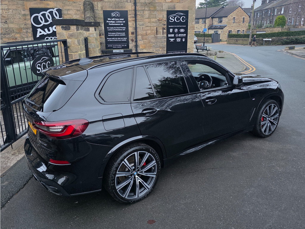 Stunning 2021 BMW X5, offered at £44,995. Finished in Sapphire Black metallic and paired beautifully with Individual Ivory Merino full leather upholstery. Equipped with the highly desirable M Sport Pro Package, this X5 delivers a more dynamic driving experience with enhanced styling, upgraded technology, and unmistakable road presence. The look is completed by the 22-inch BMW Individual Light V-Spoke Style alloy wheels, giving the car an aggressive yet refined stance while improving grip and handling. Enhancing both safety and driving confidence, this example is also fitted with the Visibility Package, which includes advanced lighting technology to ensure exceptional clarity and visibility in all conditions. Step inside and you’re greeted by the breathtaking Sky Lounge Panoramic Glass Sunroof, flooding the cabin with natural light by day and creating a truly premium ambience at night. The Comfort Plus Package ensures outstanding comfort for all occupants, making long journeys effortless and refined. Technology and capability are front and centre with Parking Assistant Plus, simplifying manoeuvring in tight spaces, while the Adaptive 2-Axle Air Suspension delivers a supremely smooth and controlled ride, effortlessly adapting to road conditions and driving style. This BMW X5 strikes the perfect balance between sporting performance, executive comfort, and everyday practicality. Finance, Part Exchange & Nationwide Delivery We offer tailored finance solutions to suit all budgets, working with the nation’s leading finance brokers and directly with most major banks. Part exchange is welcome, and we can arrange nationwide home or office delivery, ensuring a seamless and hassle-free buying experience from start to finish. Contact us today to arrange a test drive or discuss finance options on 01943 884551. 20GB Hard Disc Drive HDD Memory,ABS - Anti Lock Braking System,Active Air Stream Kidney Grille - High-Gloss Chrome,Active Guard Plus,Adaptive Air Flap Control Bar - High-Gloss Black,Adaptive M Sport Suspension,Air Conditioning - Automatic with 2.5 Zone Control,Airbags - Driver - Front Passenger- Rear and Side,Alarm System - Thatcham 1 with Remote Control and Engine Immobiliser,Ambient Interior Lighting,Armrest - Front and Rear Integrated into Door Trim,Attentiveness Assistant,Automatically Dimming Rear View Mirror,BMW Connected Package Professional,BMW ConnectedDrive Online Services,BMW Individual High-Gloss Shadowline,BMW Individual Roof Rails High-Gloss Shadow Line,BMW Legal Emergency Call,BMW Live Cockpit Professional,BMW TeleServices,Brake Energy Regeneration,Brake Force Display,Brake System,Brake-Pad Wear Indicator,Centre Armrest - Rear - Foldable with 2 Cupholders and Storage Compartment,Centre Console includes Storage Compartment,Centre Lock Switch - Driver and Front Passenger Door,Child Seat ISOFIX Attachment - Outer Rear Seats - includes Top Tether,Closing System with Central Locking,Compartment in Front of Cupholder,Crash Sensor - Activating Central Locking Release - Hazard Warning Lights - Fuel Cut Off - Interior Lighting and Activation of the Safety Battery Clamp,Cruise Control with Brake Function,Cup Holders - Front x2 and Rear x2,DAB Tuner,DSC - Dynamic Stability Control - Stabilises the Vehicle in Extreme Situations - Controls Traction,Daytime Running Lights - LED,Deformation Zones - Front and Rear,Door Pockets - Front and Rear,Door Sill Inlays - BMW M Designation Illuminated,Double-Wishbone Front Axle,Drive Performance Control with ECO PRO - Comfort and Sport,Dynamic Brake Lights with LED Technology,EPS - Electric Power Steering with Servotronic,Electric Windows - Front and Rear with Open-Close Fingertip Control - Anti-Trap Facility and Comfort Closing Function,Electrical Steering Column with Adjustable Height and Length,Electro-Mechanical Parking Brake with Automatic Drive-Away Release and Auto-Hold Function,Exhaust Tailpipes - Single - Left and Right - Chrome,Expanded Exterior Mirror Package,Exterior Mirror Housing - Body Colour,Favourite Buttons,First Aid Kit and Warning Triangle,Follow Me Home Headlight Function,Footwell Lights - Front,Front Grille Bars - Pearlescent Chrome,Head Airbags - For First and Second Row Seats,Head Restraints - Front Anti-Whiplash,Headlights - Adaptive LED,Headlining - Anthracite,Heated Windscreen Washer Jets,HiFi Loudspeaker System,High-Beam Assistant,Instrument Panel in Sensatec,Interior Light - Rear Centre,Interior Trim - Aluminium Tetragon,Knee Airbag,LED Fog Lights,LED Rear Lights,Light Inside Glove Compartment,Lockable Glove Compartment,Locking Wheel Bolts - Thatcham Approved,Luggage Compartment - Light,Luggage Compartment Floor Panel with Integral Storage Tray,M Aerodynamic Bodystyling,M Designation on Front Side Panels - Left and Right,M Leather Steering Wheel,M Specific Floor Mats Velour,M Specific Key,M Specific Pedals,M Specific Steering Wheel,M Sport Brake - Blue High Gloss,M Sport Braking System,M Sport Package,Make-Up Mirror Lights,Mechanical Childproof Lock - Rear Doors,Multi-Function Controls for Leather Steering Wheel,Multifunctional Hooks,Non Smokers Package,OBC - On Board Computer,Oil Sensor For Level and Grade,Outer and Central Air Intakes on Front Bumper - High-Gloss Black with Pearlescent Chrome Finish,PDC - Park Distance Control - Front and Rear,Parking Assistant,Passenger Seat Airbag Deactivation - Front,Passive Protection for Pedestrians,Power Sockets 12v - 2x Centre Console - 1x Luggage Compartment,Rain Sensor with Automatic Headlight Activation and Windscreen Wiper Control,Reading Lights - Front,Safety Battery - Terminal Clamp,Seat Adjustment - Front Electric with Driver Memory,Seat Back with Flap Pocket,Seat Belts Front and Rear - Seat Belt Tensioner - Front and Outer Rear Seats - Belt Force Limit,Seat Heating for Driver and Front Passenger,Seat Occupancy Detection for Driver and Passenger Side,Side Elements - High Gloss Black,Side Impact Protection,Side Window Graphics - Satin Aluminium,Speed Limit Display,Speed Limi